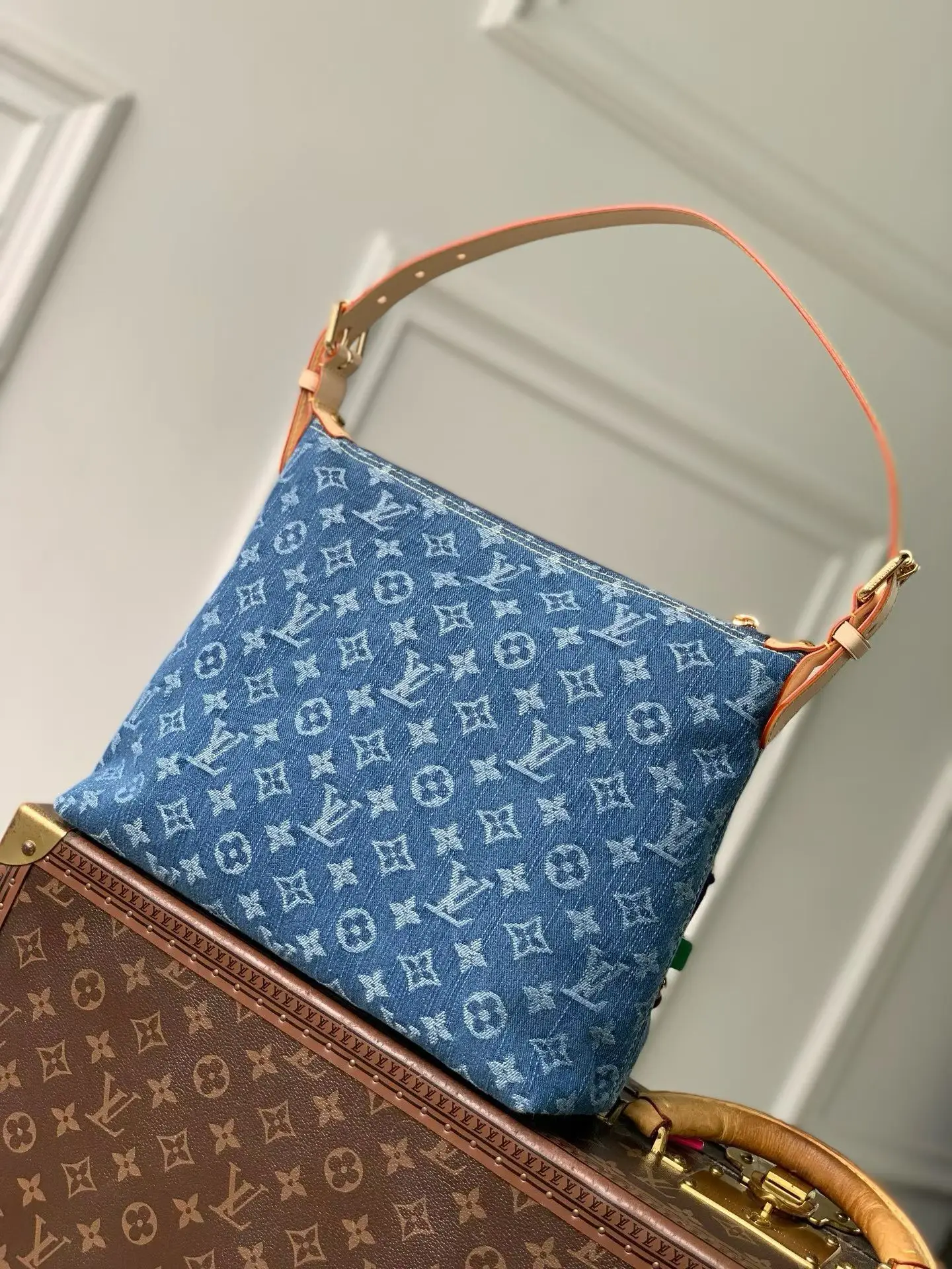 The M27329 in blue and 28266 in red, the Denim Rendez-Vous collection presents a new limited edition Baggy handbag, cleverly highlighted by a playful zipper pull charm. The classic denim fabric body is paired with contrasting leather trims and metal accents, with each front pocket adorned with a stylish snap closure. The suitable size can accommodate essentials for a weekend city outing, as well as your favorite lipstick. 30 x 22 x 13 cm (length x height x width)