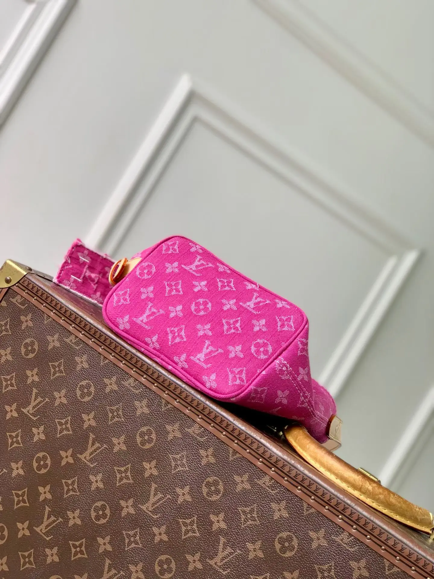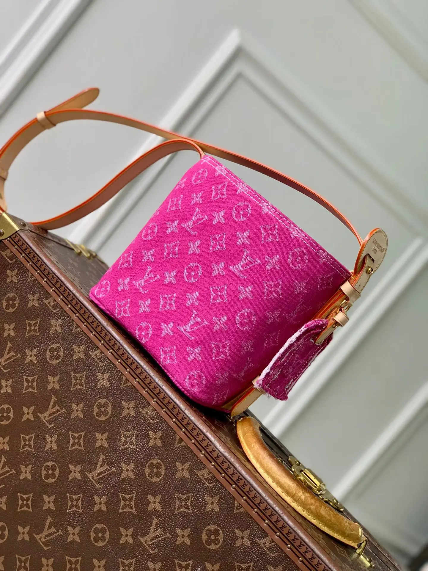This Denim Rendez-Vous series All In BB handbag makes a fresh debut with vibrant colors, injecting seasonal novelty into a classic design. The denim bucket bag features a clever combination of contrasting leather trim and the iconic LV nameplate, paying homage to Louis Vuitton s classic hard cases. The versatile design allows for multiple carrying options, and the detachable zippered inner pocket adds practical ingenuity.