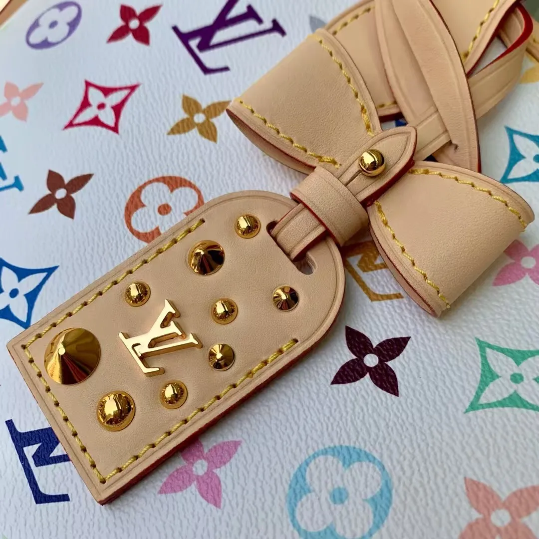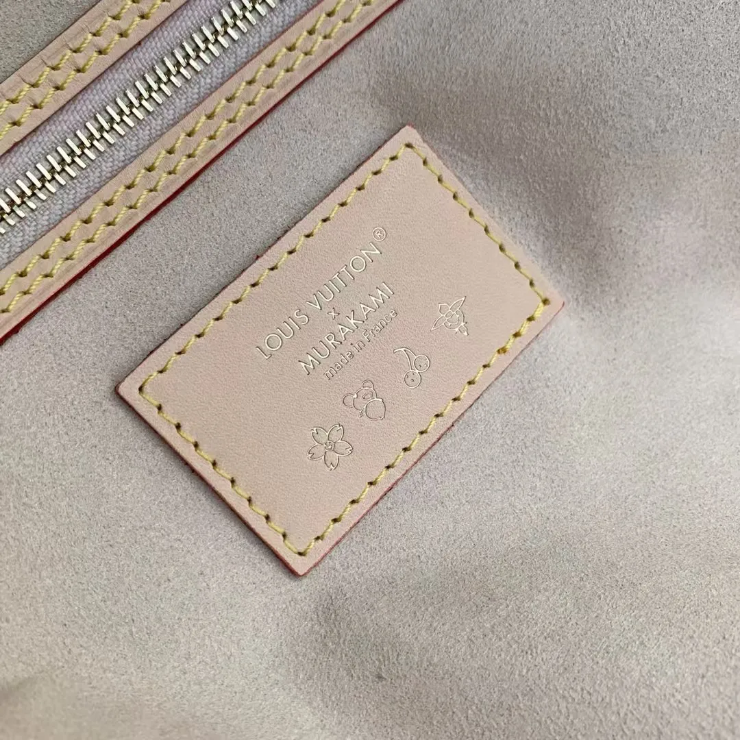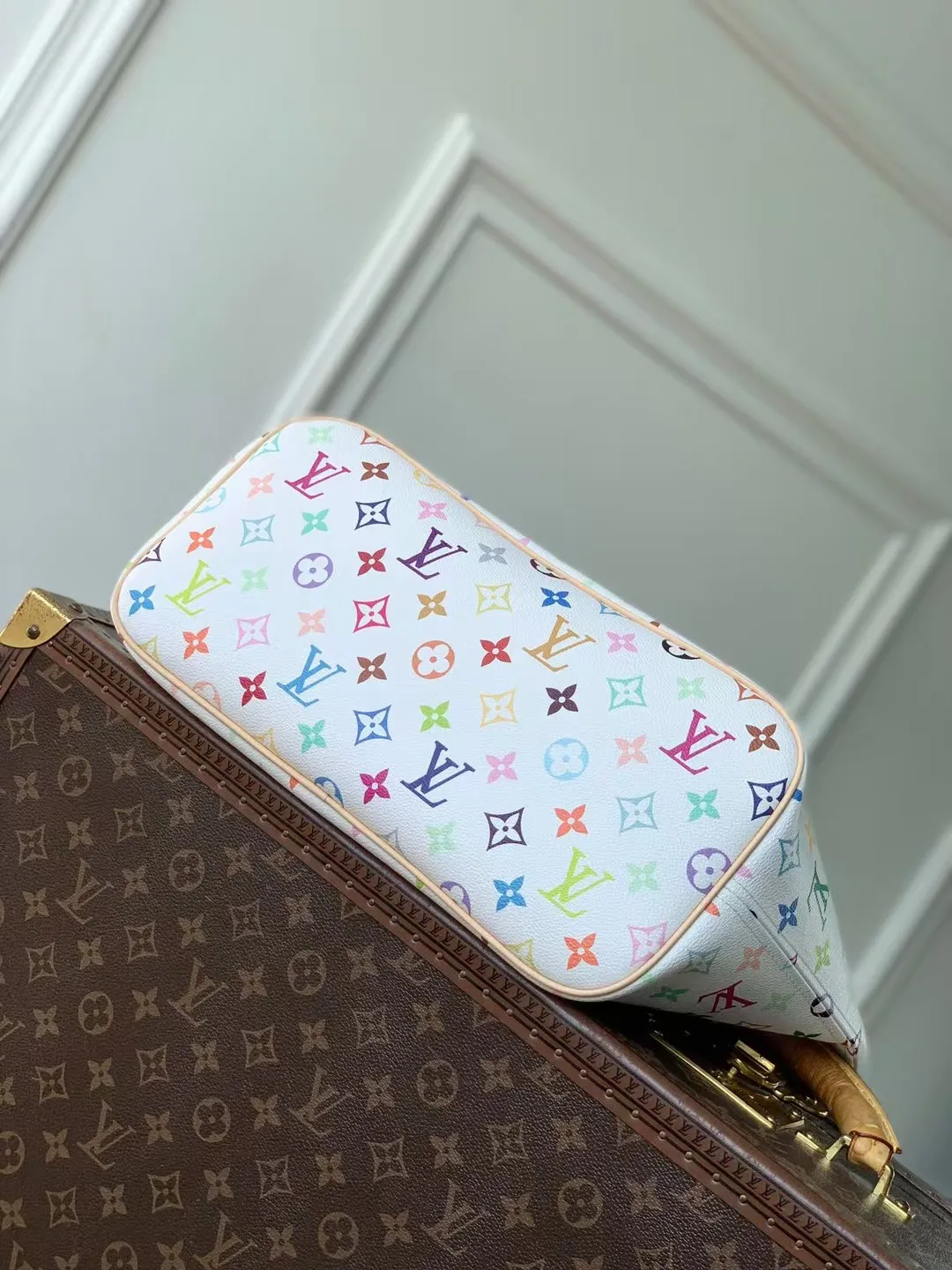 M27787 White Colorful Murakami Medium Shopping Bag This Neverfull MM handbag is part of the Louis Vuitton x Takashi Murakami reissue collection, cleverly incorporating the vibrant colors of the Japanese artist into the Monogram coated canvas. Particularly noteworthy is the detachable zippered pouch, which can be used as an exquisite clutch on its own or as an additional pocket. The cowhide leather trim outlines a close-fitting silhouette, with the brand s signature adorned with elegant bow details. Dimensions: 32 x 29 x 17 cm (L x H x W)