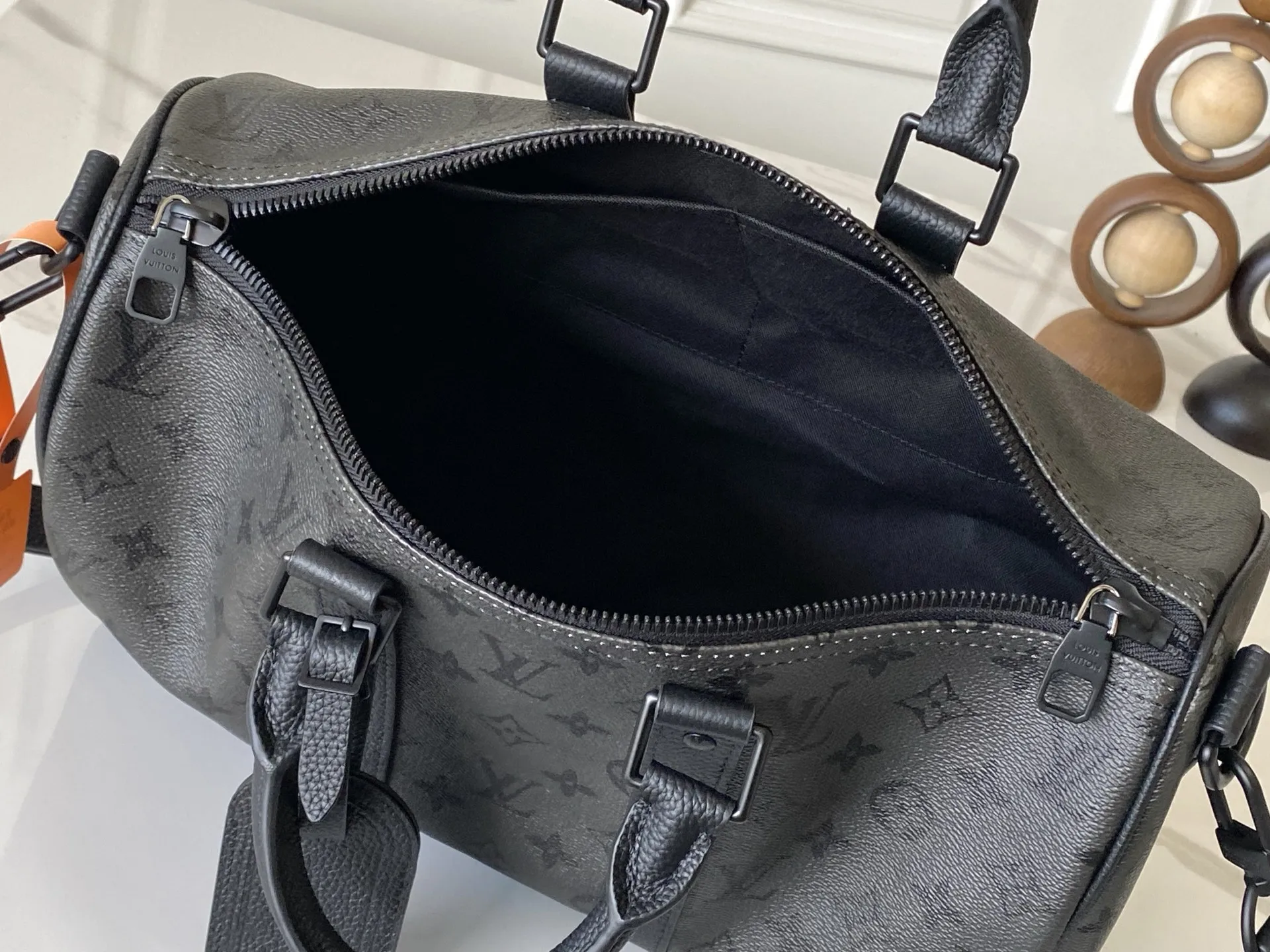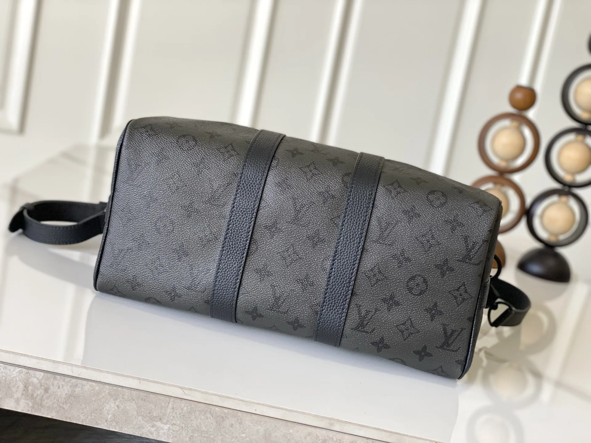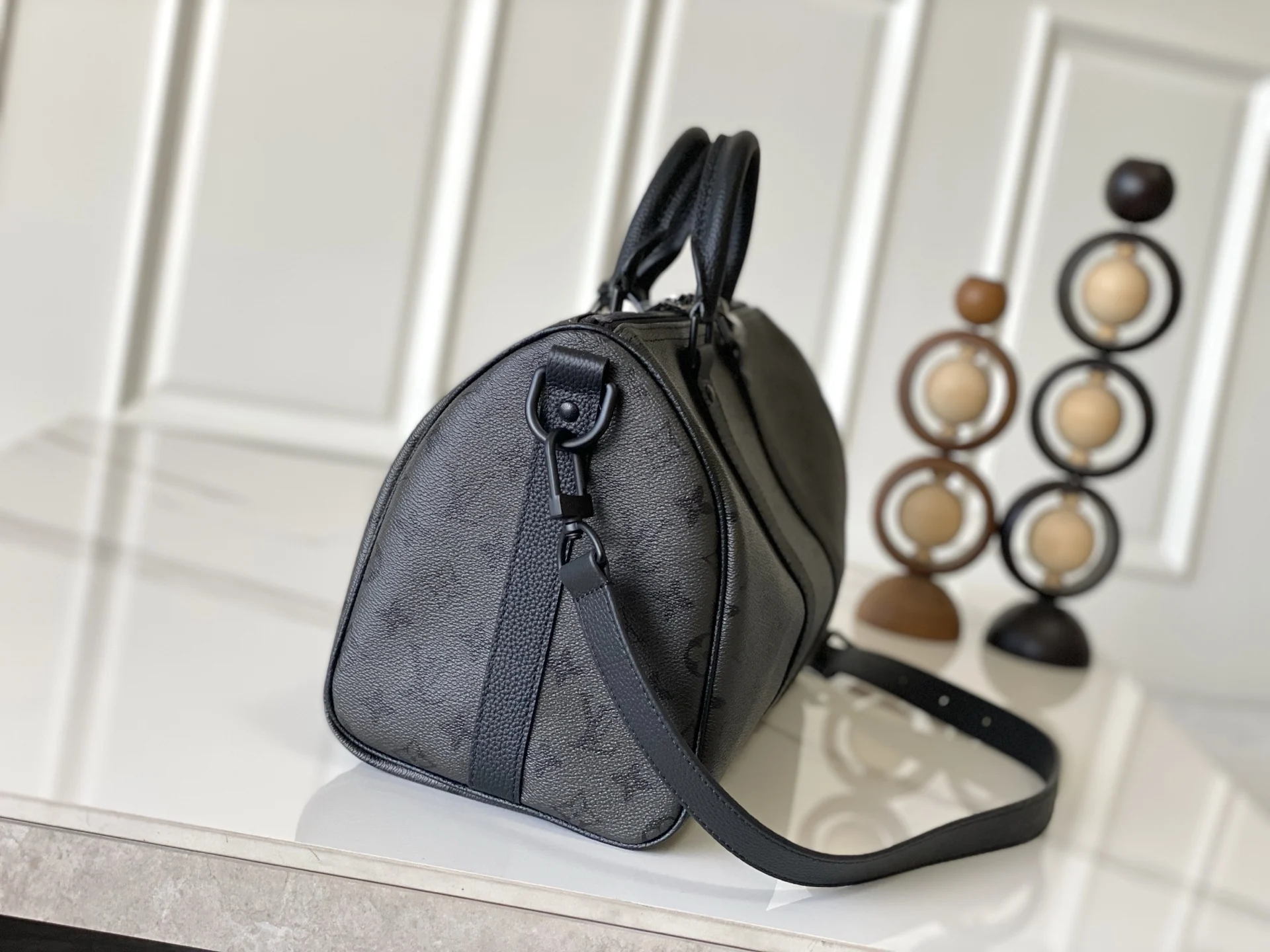 M28370 Gray Flower, no discount for bulk orders. Men s Speefy Pillow Bag, KEEPALL BANDOULIERE 35 Handbag. This Keepall Bandouliere 35 handbag features Monogram Midnight xl coated canvas with sophisticated leather trim. Matte hardware and zippers enhance the sleek look. A detachable and adjustable leather shoulder strap provides comfortable shoulder or cross-body carry, while rolled leather top handles add a hand-carry option. Dimensions: 21 x 16 x 34 cm (Height x Width x Length).