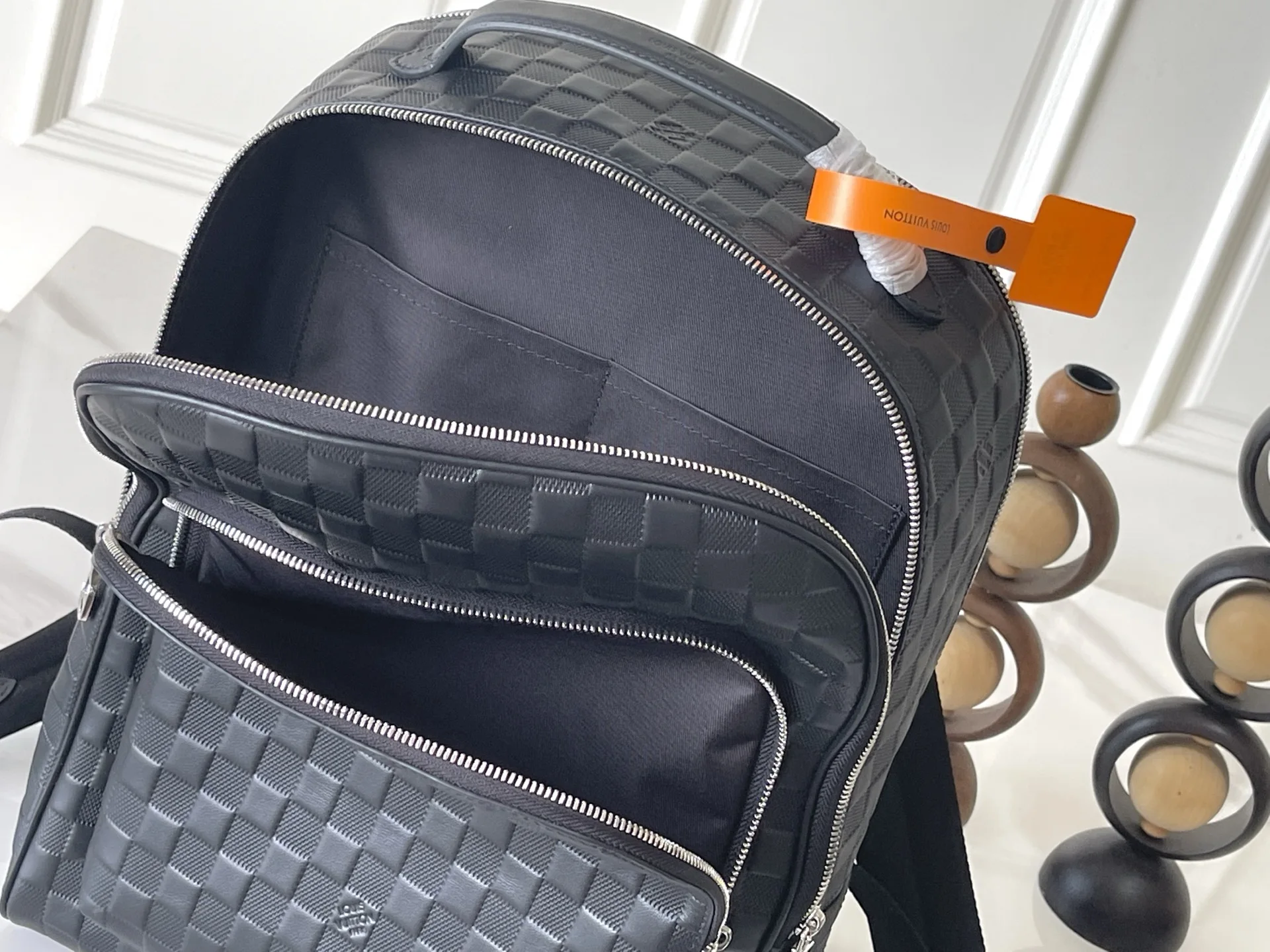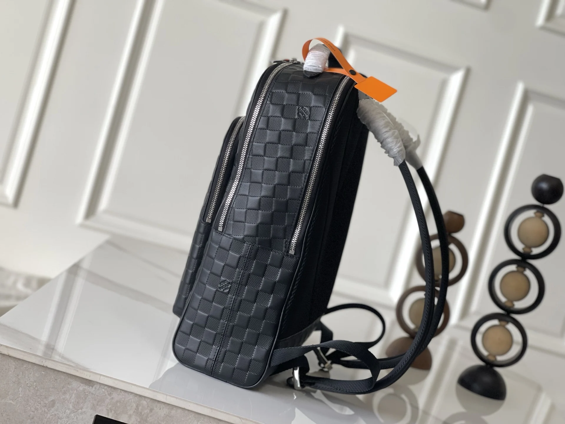 M40501 full-leather embossed, 40499 black embossed, 30977 black embossed Avenue Backpack crafted from Damier Graphite coated canvas, exuding refined elegance with its clean lines. ..