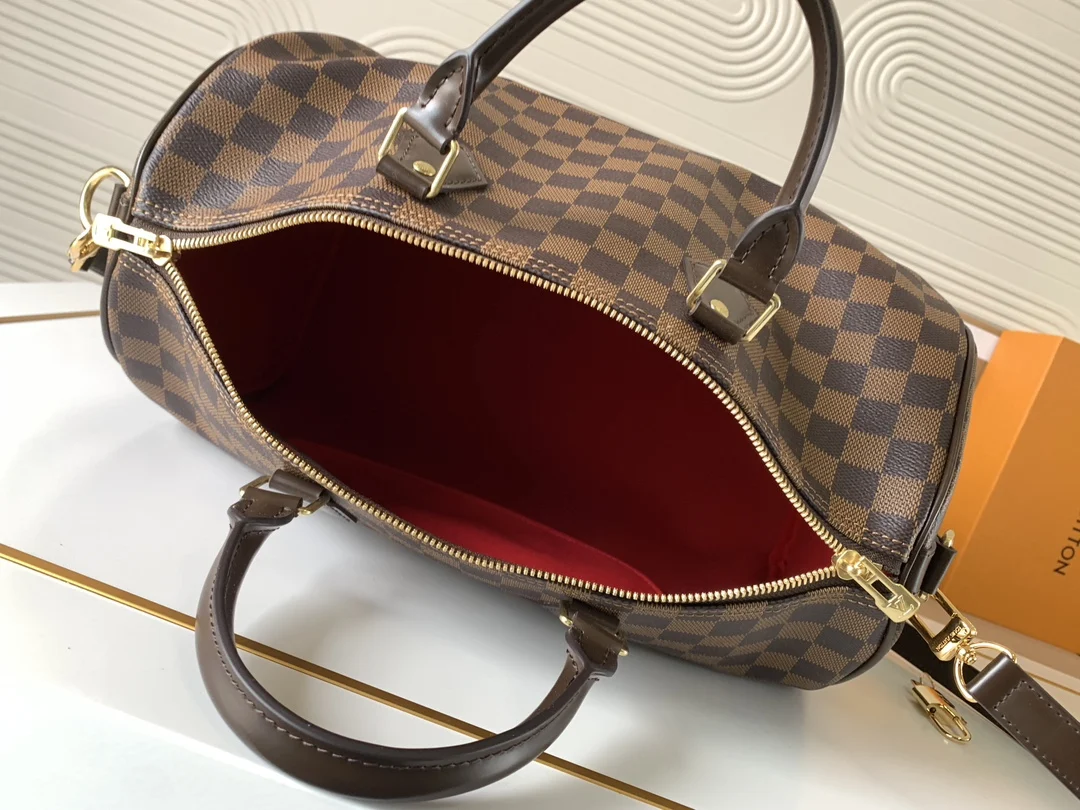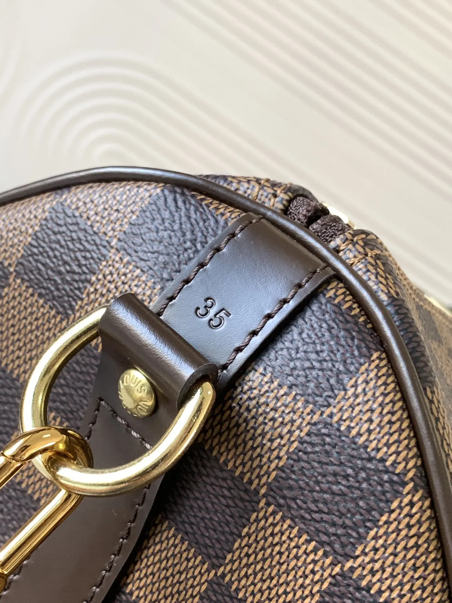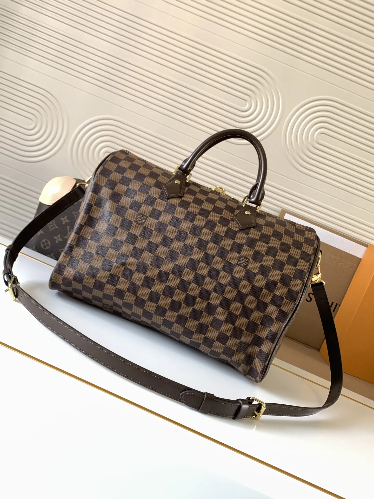 M41111 Coffee Check Top Quality Original Single [Exclusive Background Shooting] The M40591 Speedy series handbag was originally designed for travelers in the 1930s, paying tribute to that rapidly changing era. This Speedy Bandouliere 35 handbag features the iconic shape in Damier Ebene canvas, continuing classic details with rolled leather handles, a signature padlock, and a detachable shoulder strap, making it easy to store essentials for urban life. Dimensions: 35.0 x 23.0 x 18.0 cm (L x H x W)