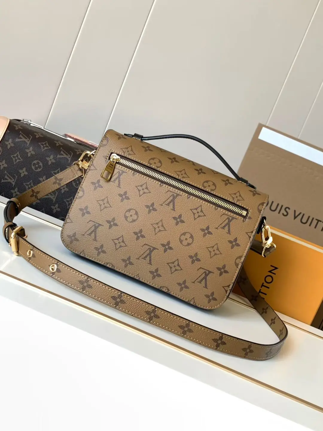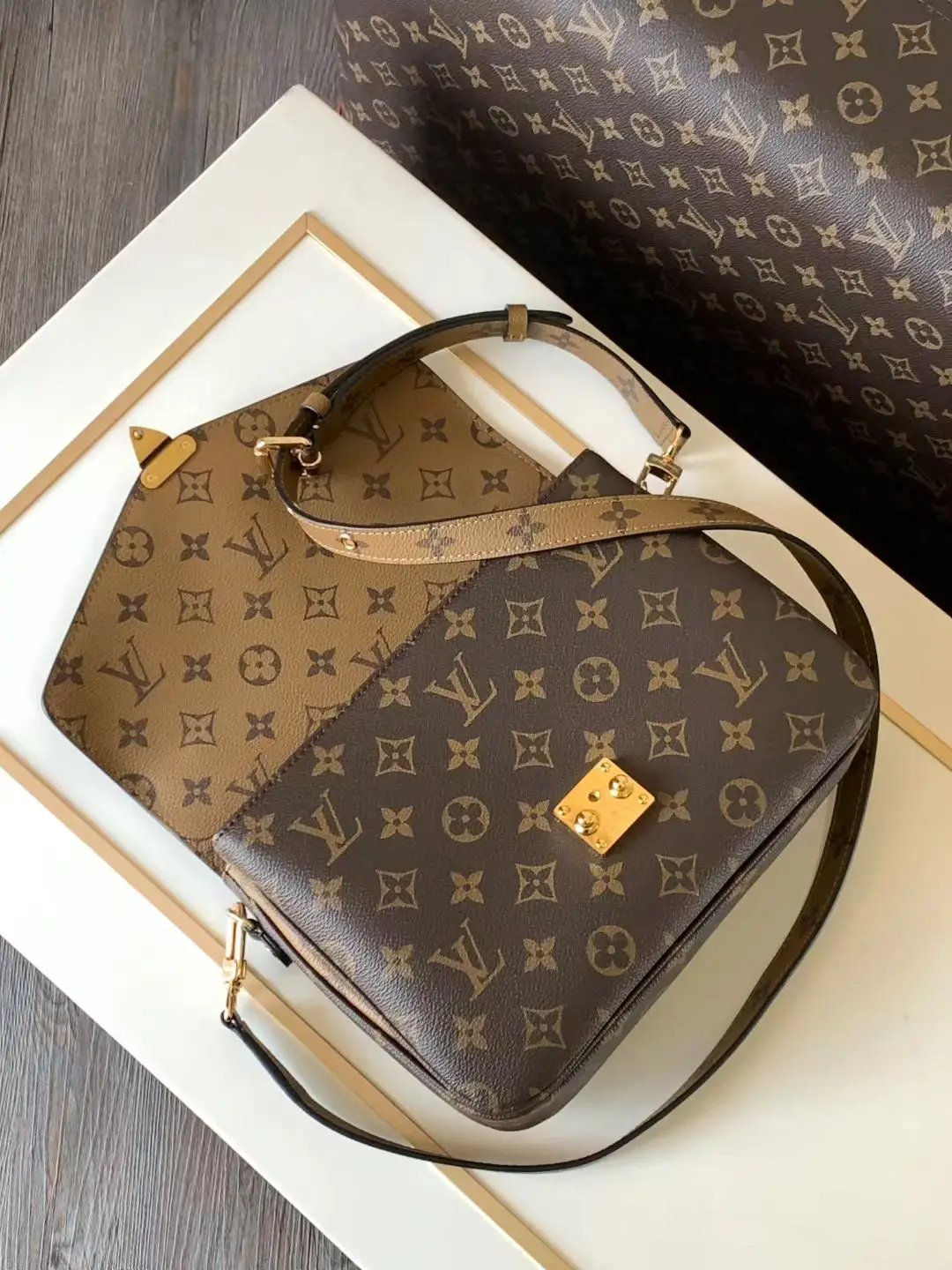 Top original, exclusive real shot of M44876! This Pochette Metis handbag features a stylish shoulder backpack design, rich in trendiness. The compact bag is made of fashionable Monogram Reverse canvas and is equipped with the iconic S-lock closure, with a polished surface that shines brilliantly. It is multifunctional and spacious. The fashionable top handle and detachable long shoulder strap make it convenient for shoulder or crossbody wear. It is a great companion for daily outings. Size: 25×19×7cm