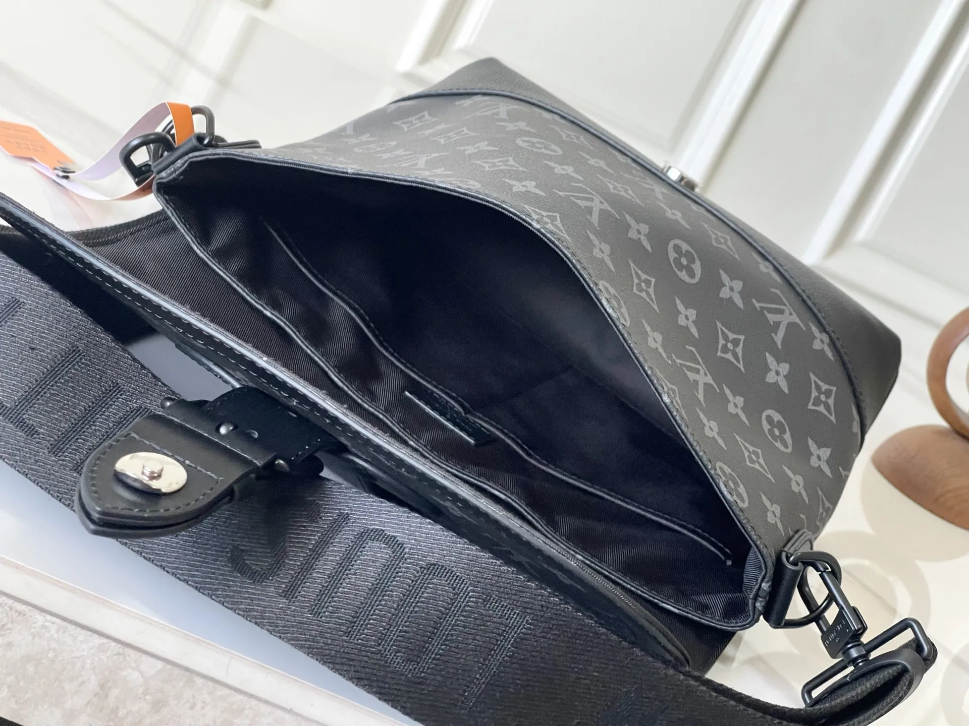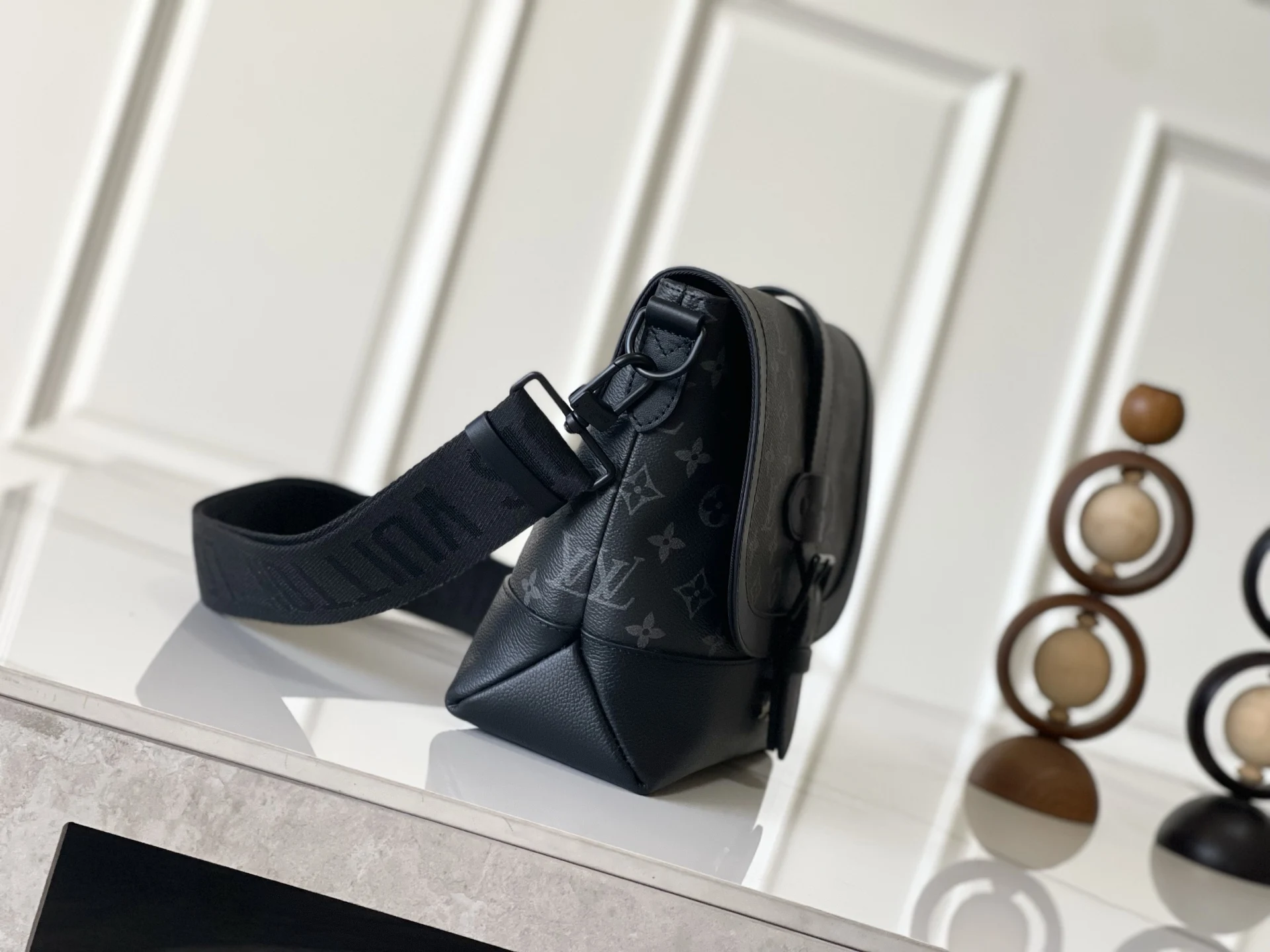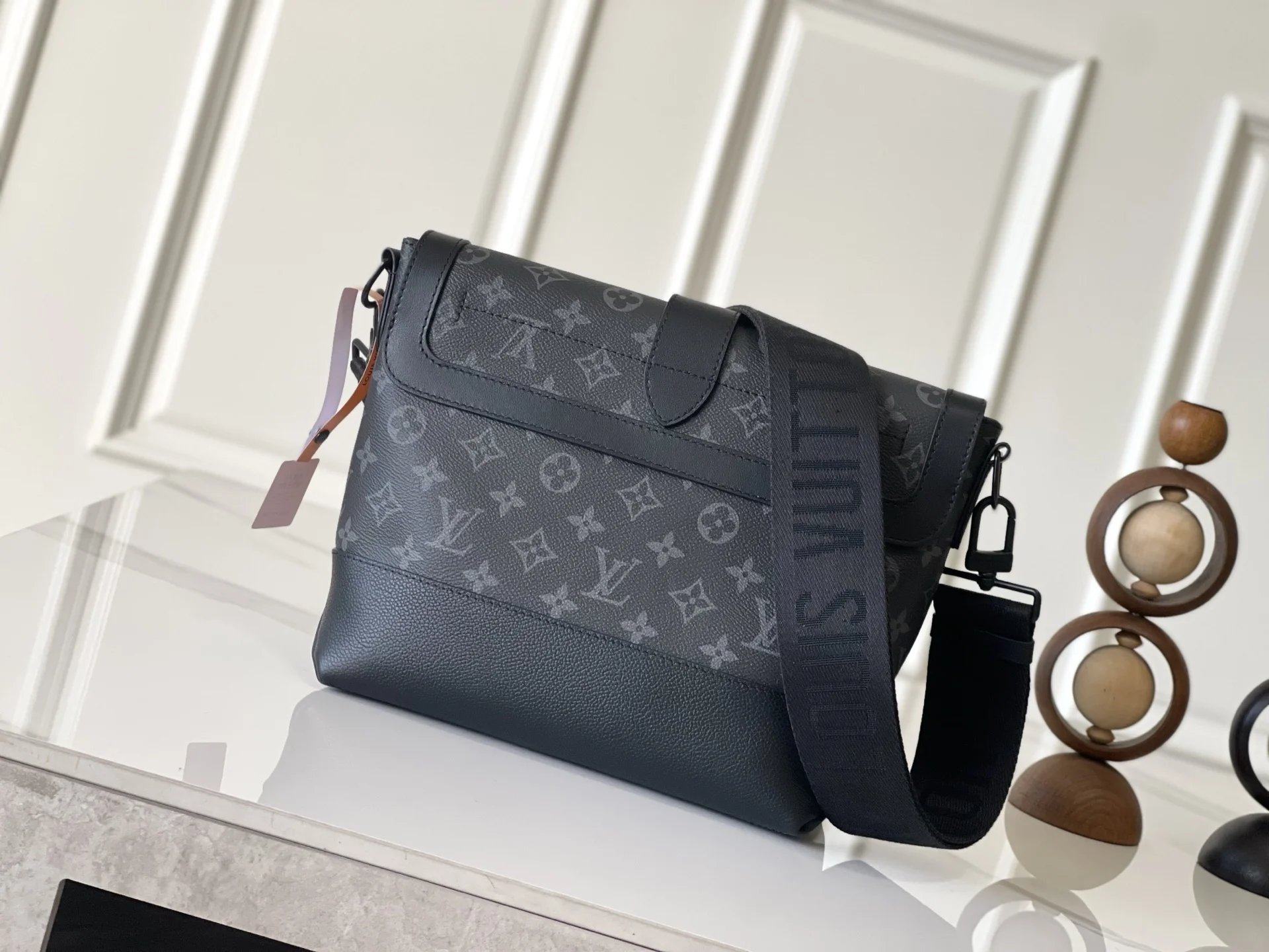 The M45911 Black Flower men s messenger bag series pays homage to the iconic equestrian-inspired Saumur bag introduced by Louis Vuitton in 1986. This classic piece is given a modern twist with a combination of Monogram Eclipse canvas and grained leather. The buckled shoulder strap features a magnetic closure. Casual and stylish, it is perfect for everyday carry. Dimensions: 36 x 23 x 11 cm