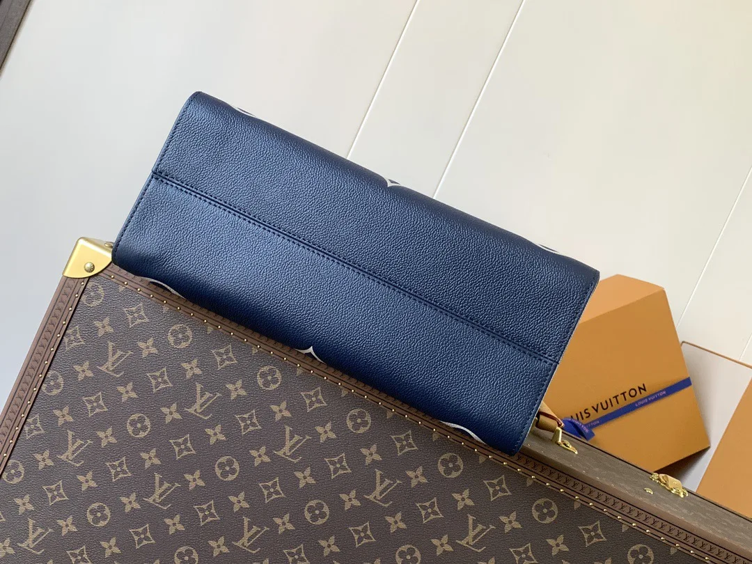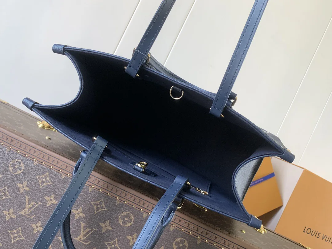This top-quality original OnTheGo medium handbag is made of Monogram Empreinte leather, featuring a grainy texture that enhances the Monogram embossing, adding an elegant touch to its sharp silhouette. The spacious interior made of microfiber can accommodate a laptop, while the rolled leather handles and long shoulder strap allow for multiple carrying options.