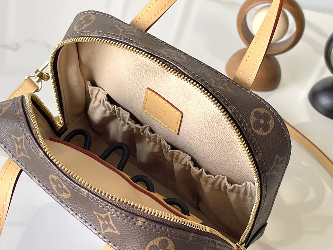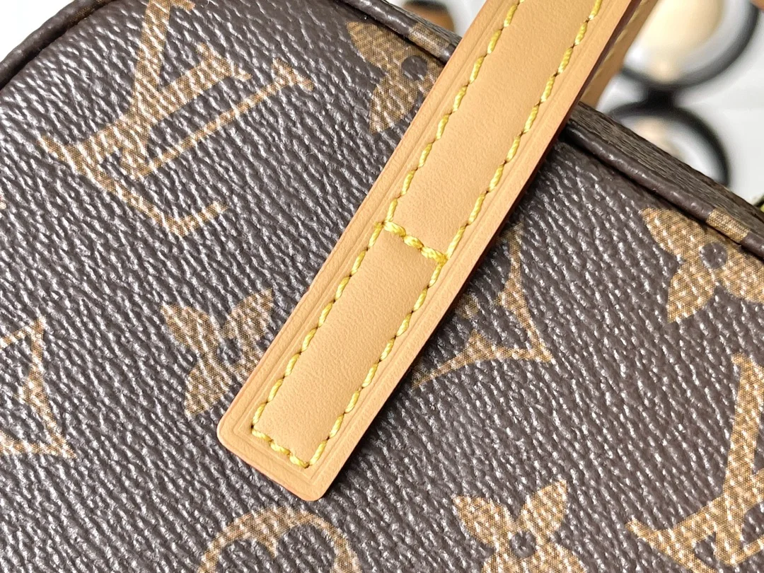 Authentic chip version, pre-owned series, exclusive real shot background images, style number M47500 Nano Noe cosmetic handbag, lunch bag now available, original Monogram canvas paired with gradient vegetable-tanned leather. LV s most classic combination, now launched in a mini bag size, will once again capture the hearts of countless young women, with perfect stitching details. Monogram coated canvas - cowhide trim - gold-tone metal hardware, size: 20x20x8CM