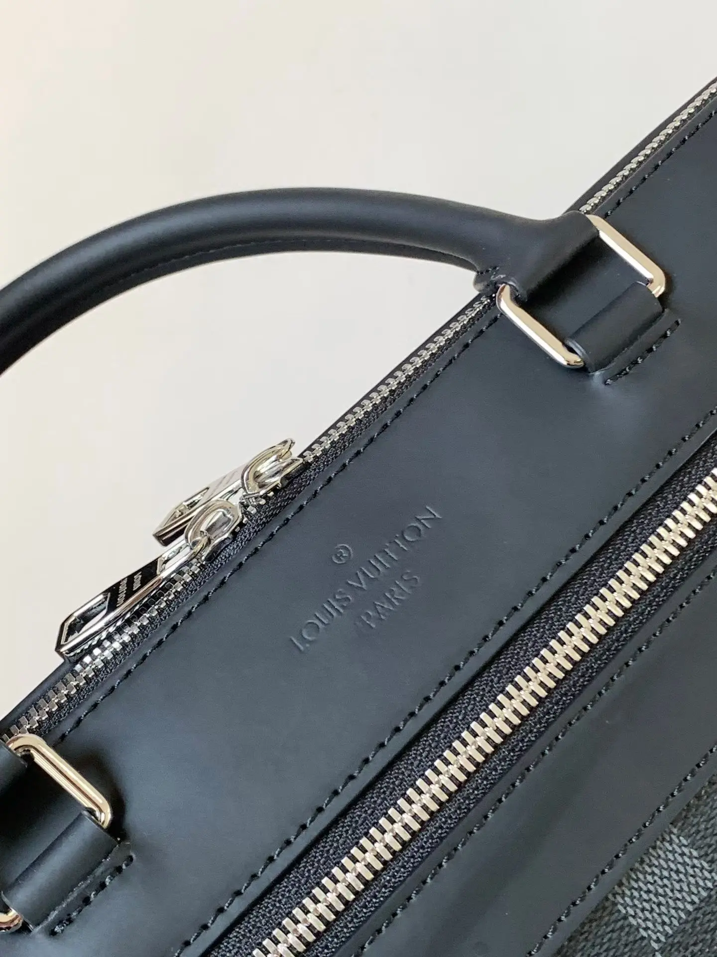 Top original, N48260 black check M54019 old flower Porte-Documents Jour briefcase is made of highly sought-after Damier Cobalt canvas. Compared to the Porte-Documents Voyage travel bag, this briefcase is more casual and compact. It is said to be highly practical for the male market, with multiple carrying options. The bag features a zip closure at the opening, capable of accommodating a 15-inch laptop. Dimensions: 37.0x28.0x6.0cm