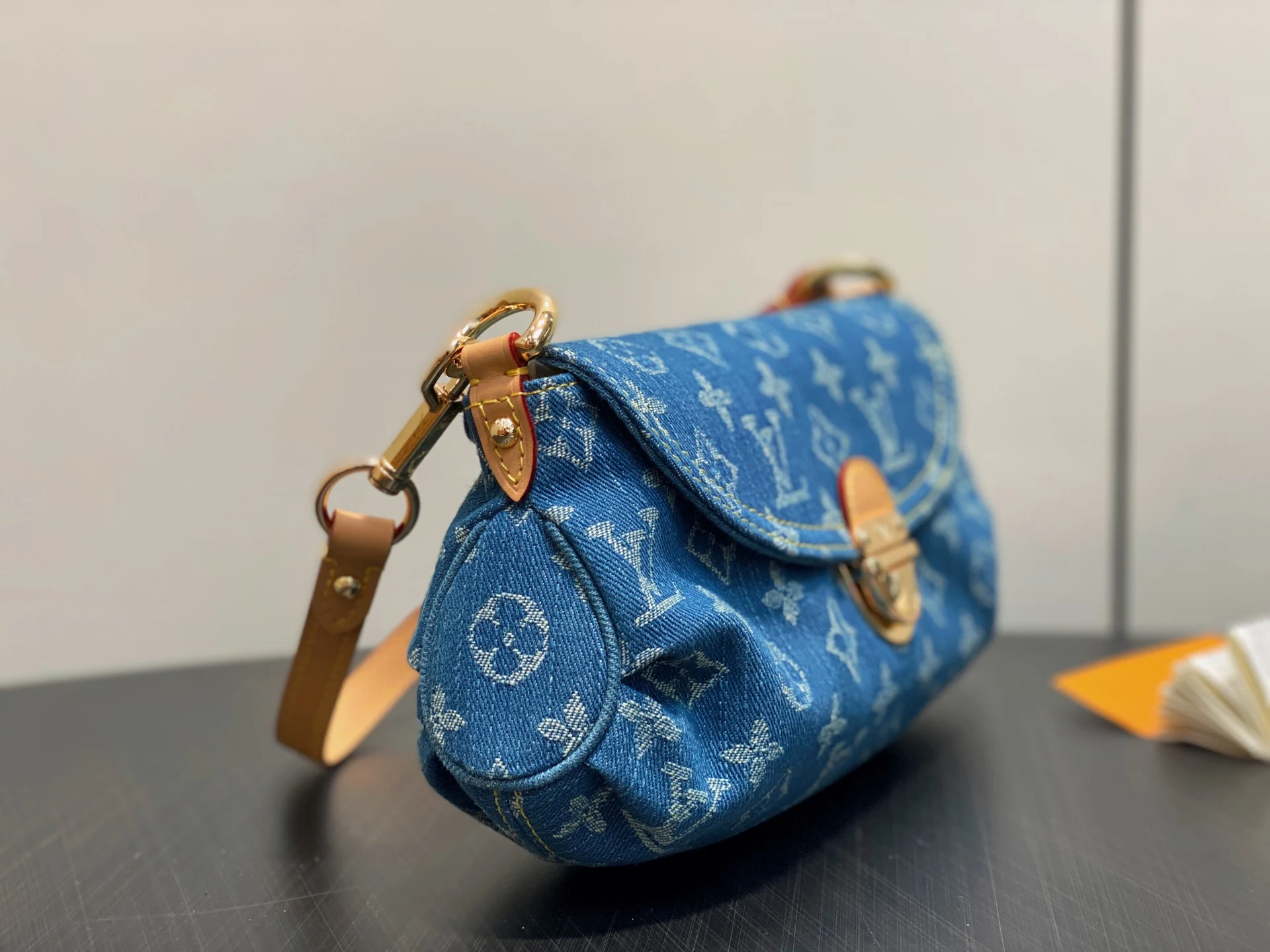 [Exclusive] M95050 Blue Denim Underarm Bag, Vintage Denim Shoulder Bag, Rare Vintage Denim Clutch. A summer fashion essential, denim is a timeless classic that s incredibly versatile and effortlessly stylish! A must-have. Dimensions: 26 x 15 x 9 cm.