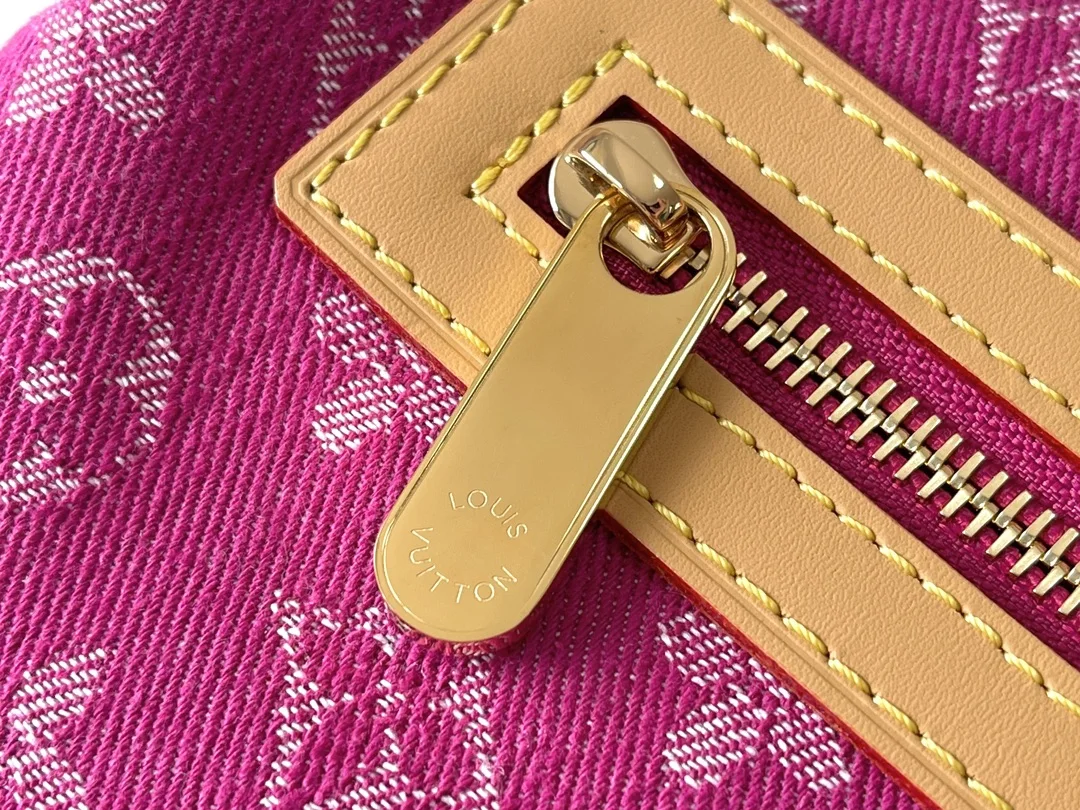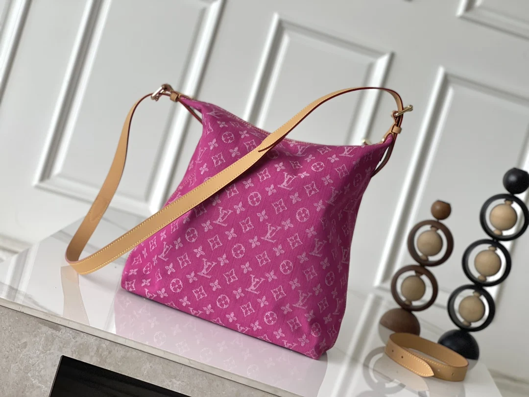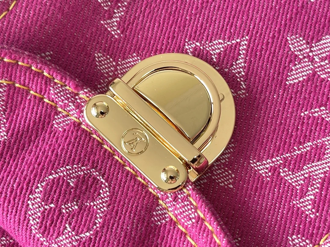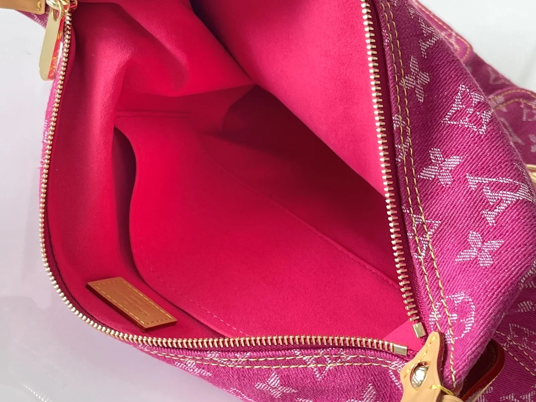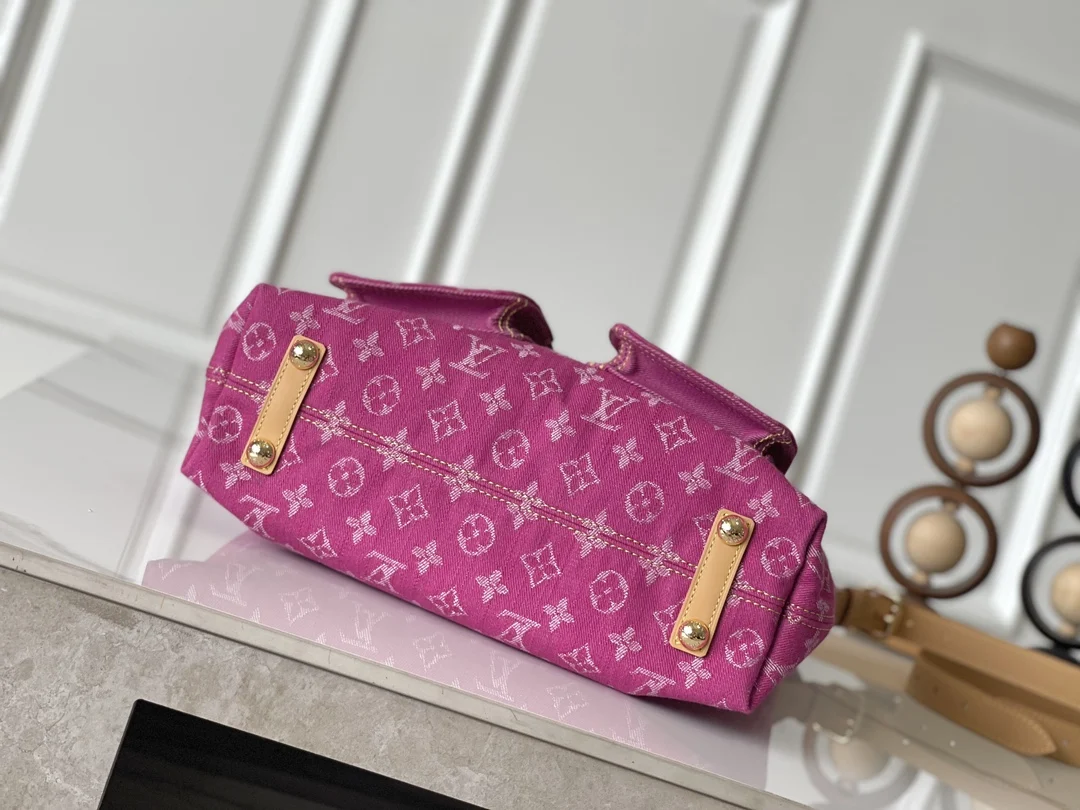 Exclusive Real Shots, Large Vintage Bag in Purple, Model M95210, Large Denim Pink, 163 Chipset Shipment, Two Straps (One Long and One Short) for Dual Use, Dimensions: 30 34 13.