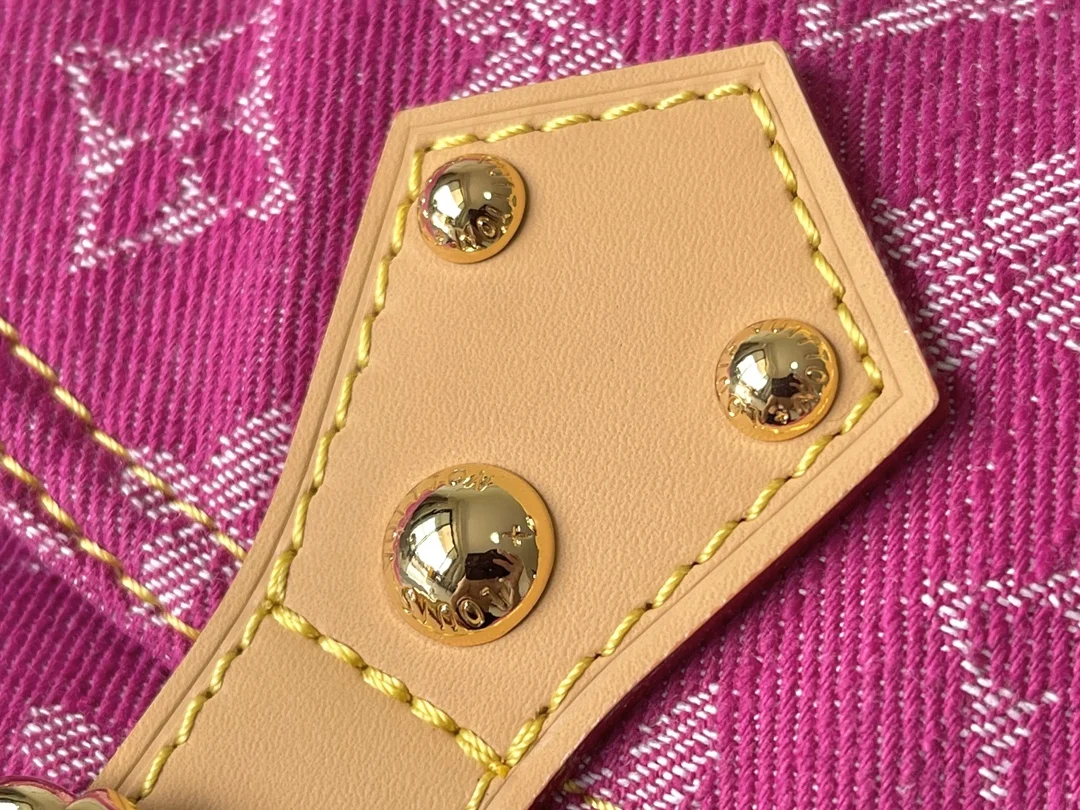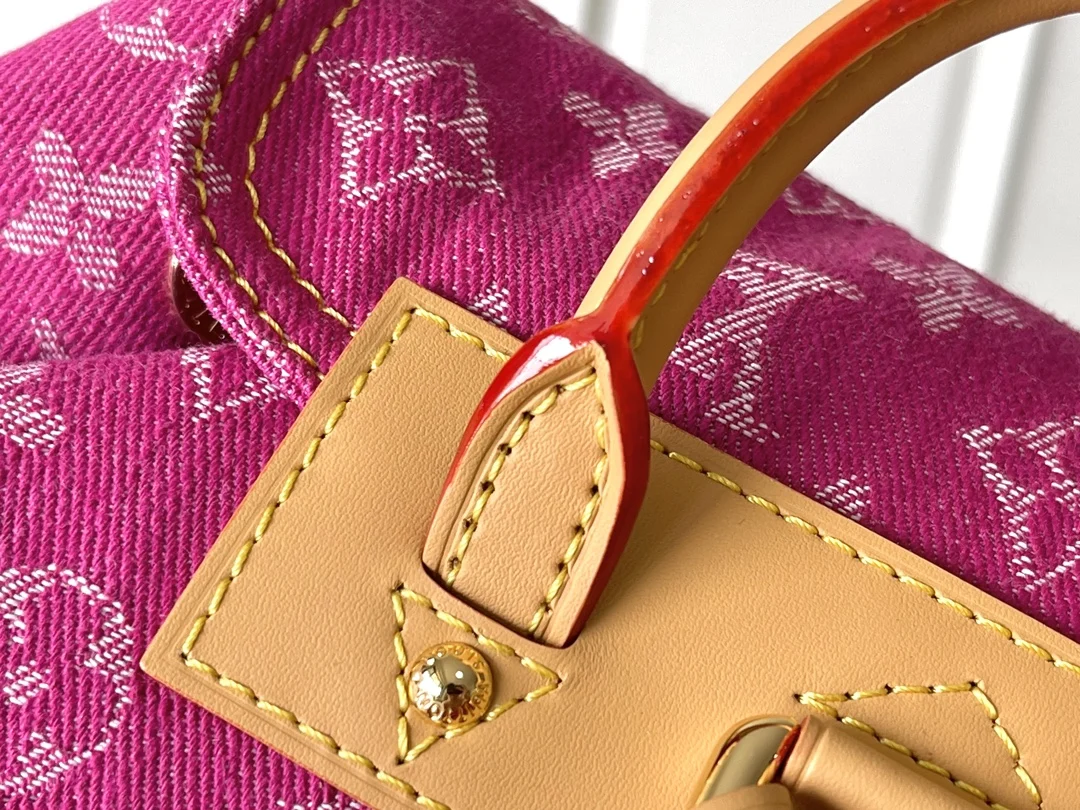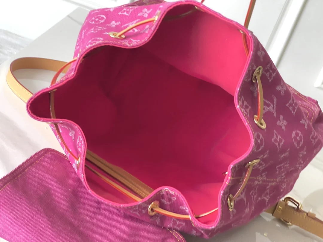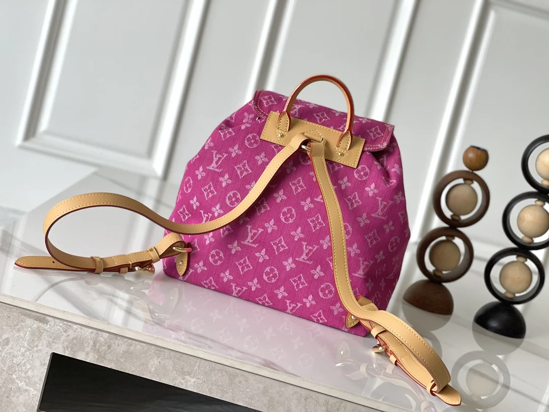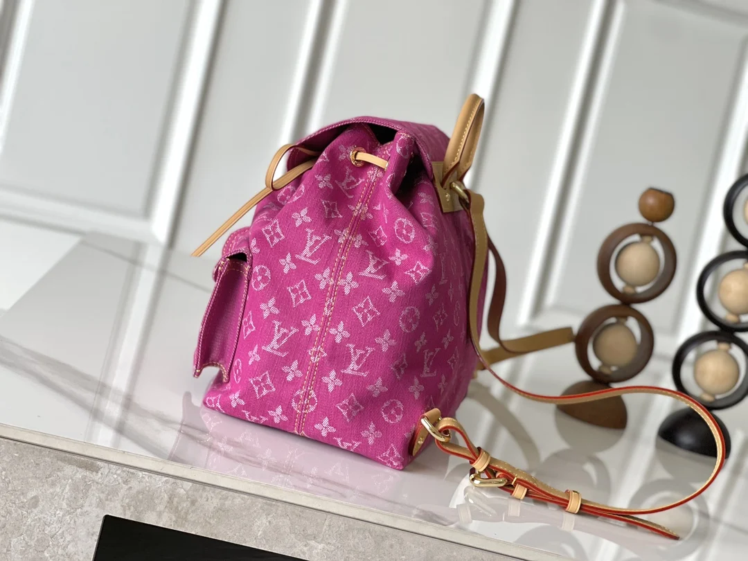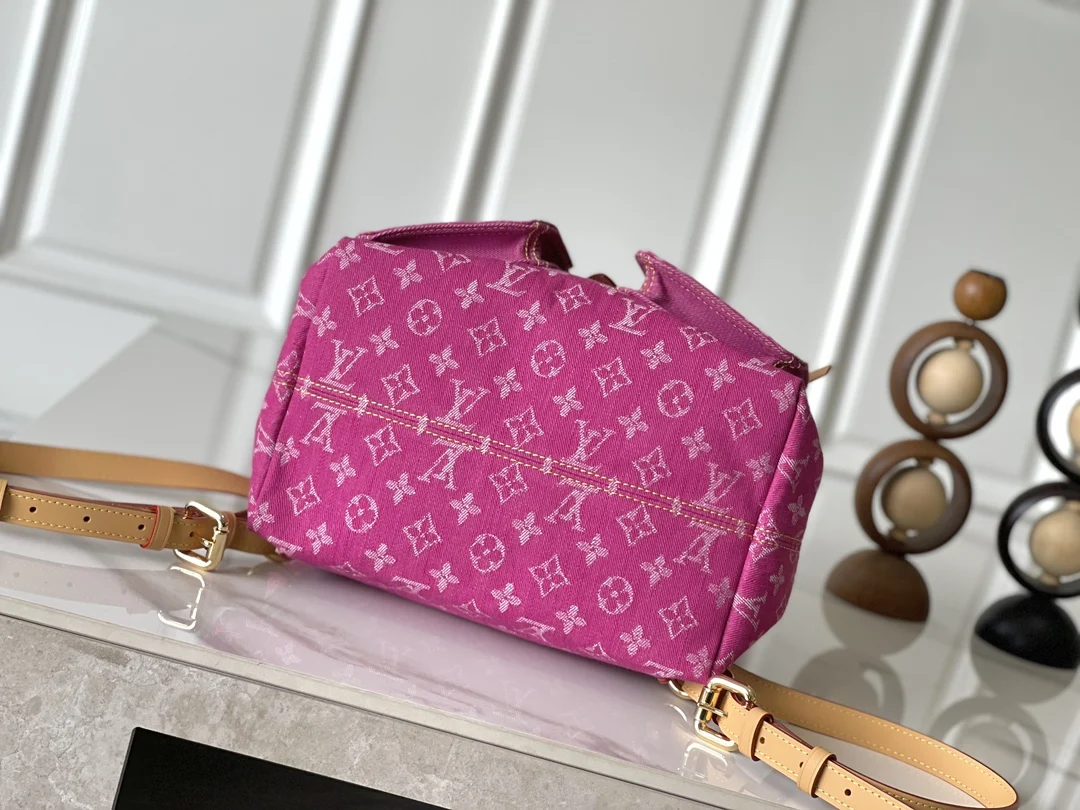 Exclusive real shots of 163c01 coded chip M95240 Denim Backpack, vintage limited edition. Made of denim canvas with soft suede lining, featuring a press-lock flap pocket on the front and interior compartments. Can be carried by hand or on the shoulder, convenient and practical, perfect for carrying essentials. Suitable for any style, dimensions 28.5*20*27.5cm.