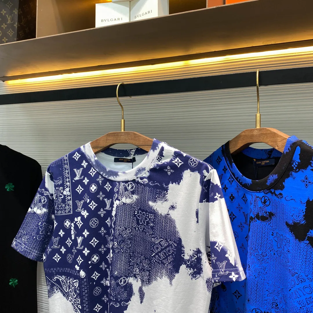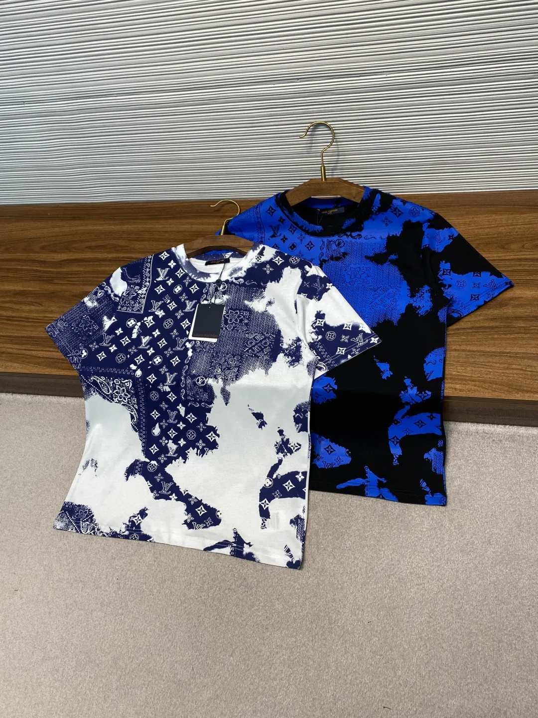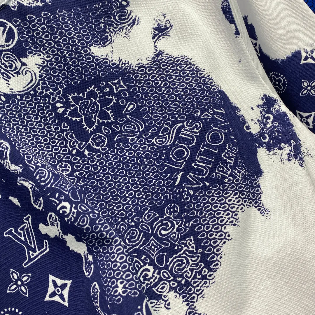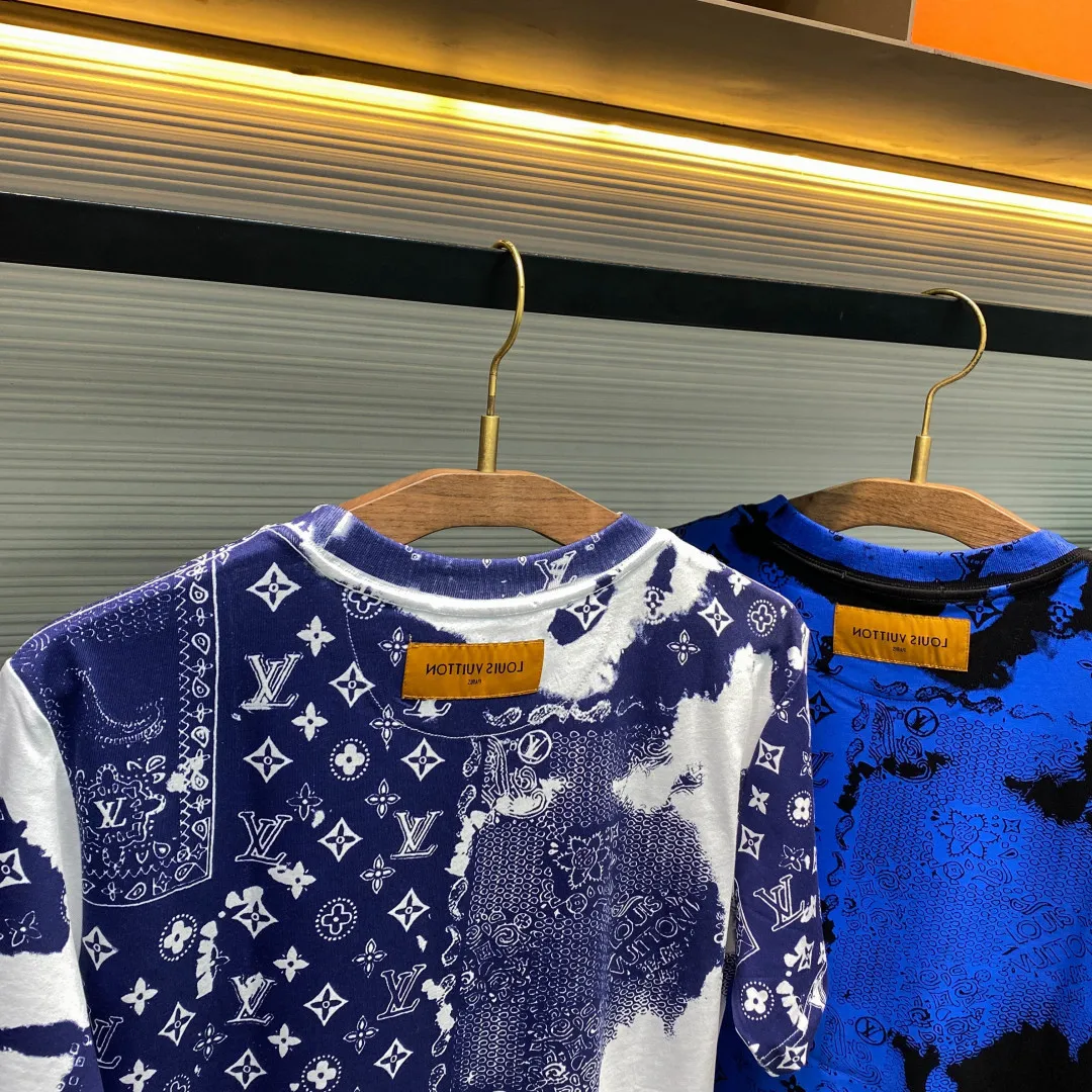 Louis Vuitton Men s and women s blue gradient ink wash floral pattern casual short-sleeve T-shirt.