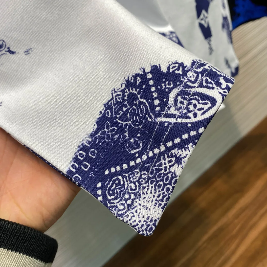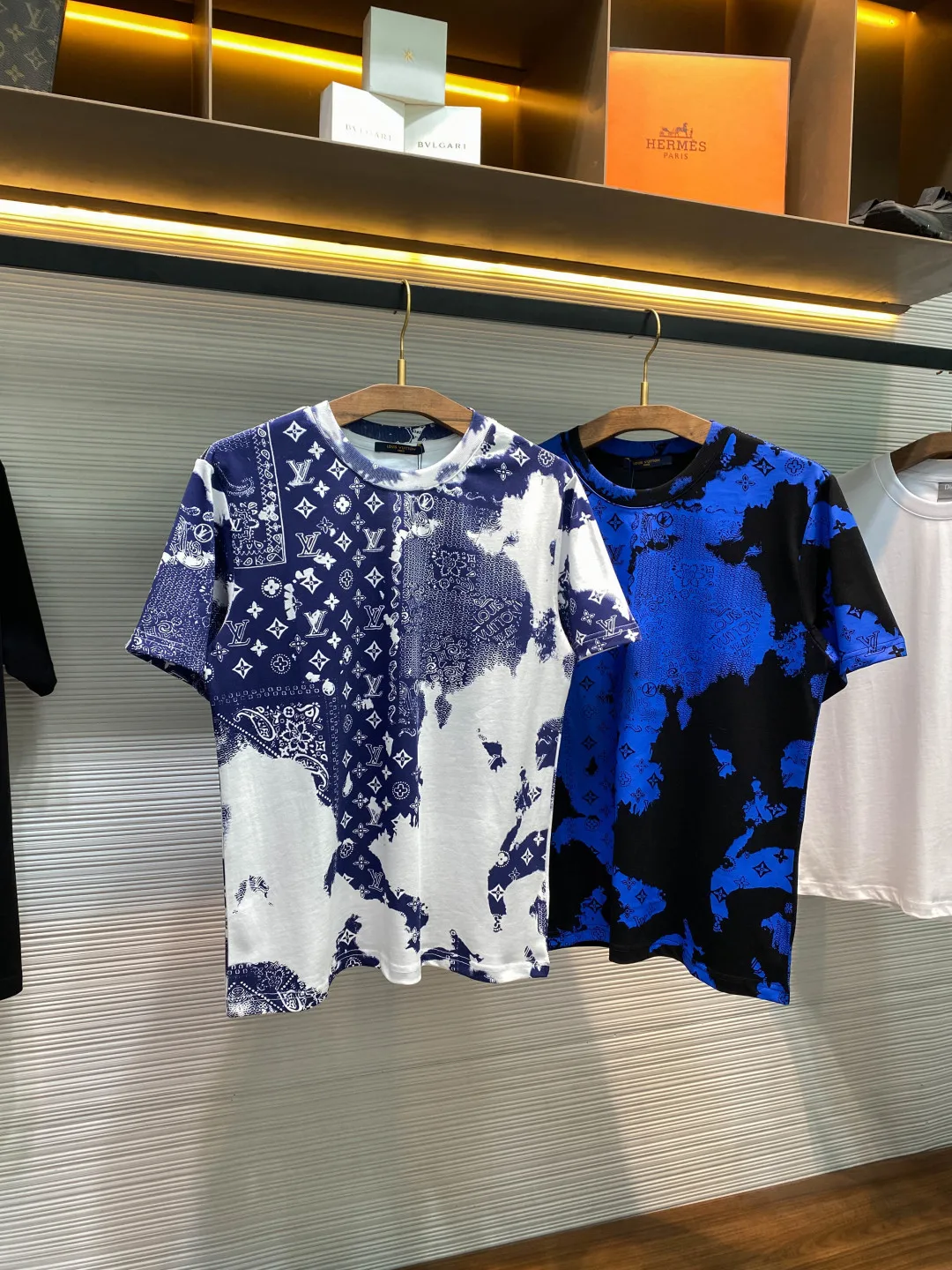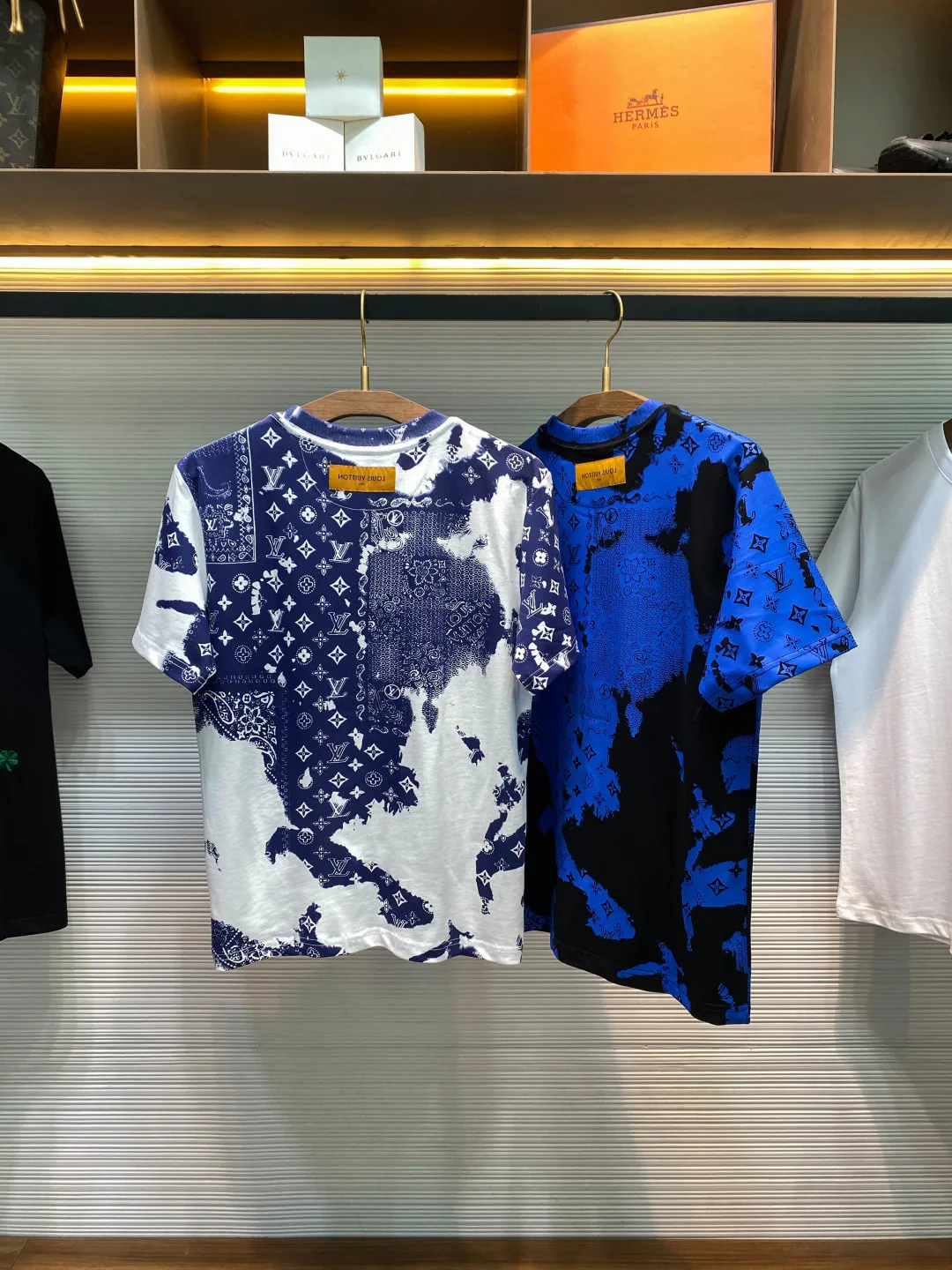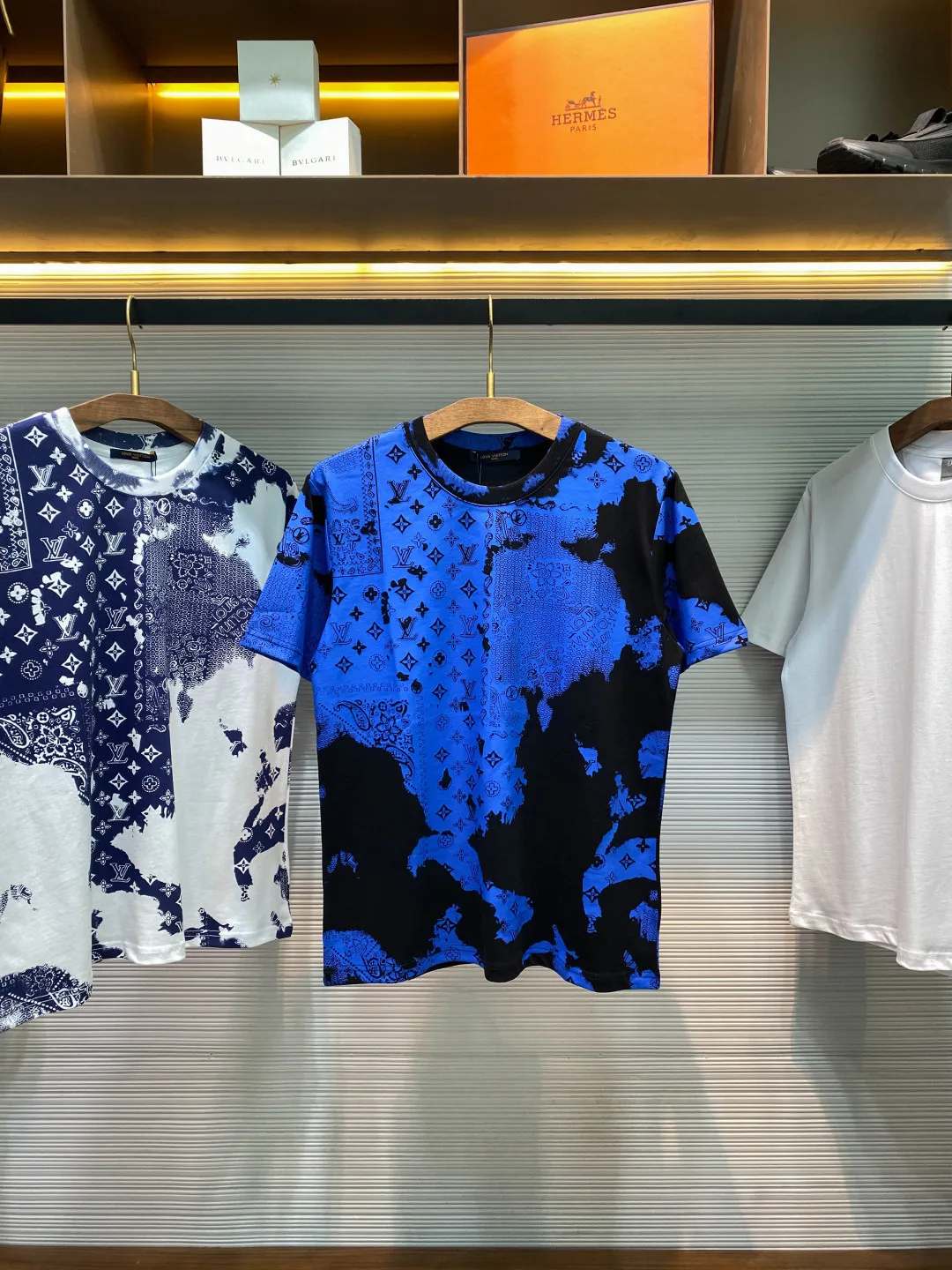 Louis Vuitton Men s and women s blue gradient ink wash floral pattern casual short-sleeve T-shirt.