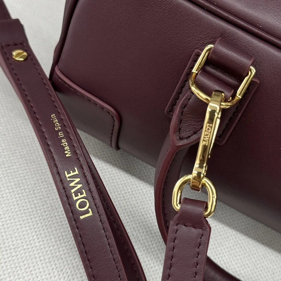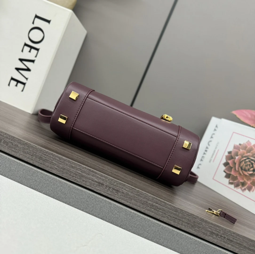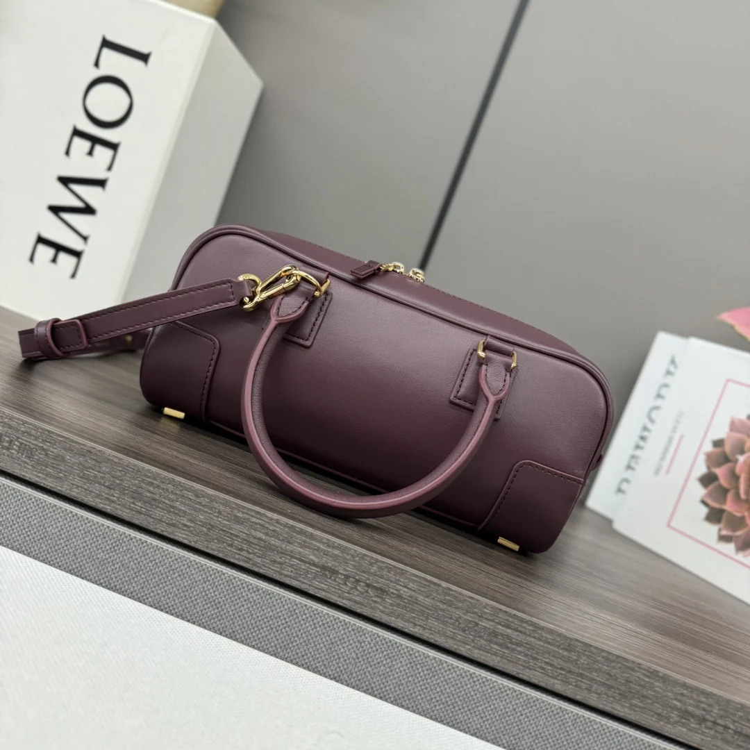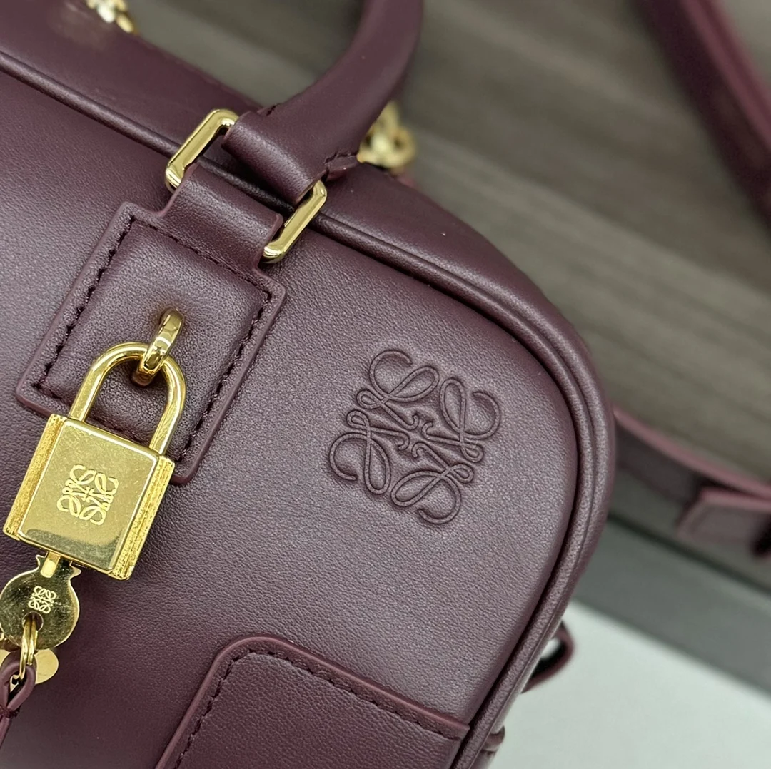 LOEWE New Mini Amazona 23 Cropped Bag *The latest size of the bowling bag Born in the 1970s, the Amazona bag is reimagined with a slender baguette proportion, continuing the iconic Amazona logo. This version is crafted from nappa calfskin.* It features a small padlock as a new icon to accommodate the modern lifestyle where electronic devices are often stored in the bag.* The design is updated with a double zipper for easy opening and closing.* It has tubular leather handles and vintage bag corner details.* It can be worn crossbody, on the shoulder, or carried by hand.* The compact bag exudes a playful, collegiate style. Model: 062417 Size: 23*10*11CM