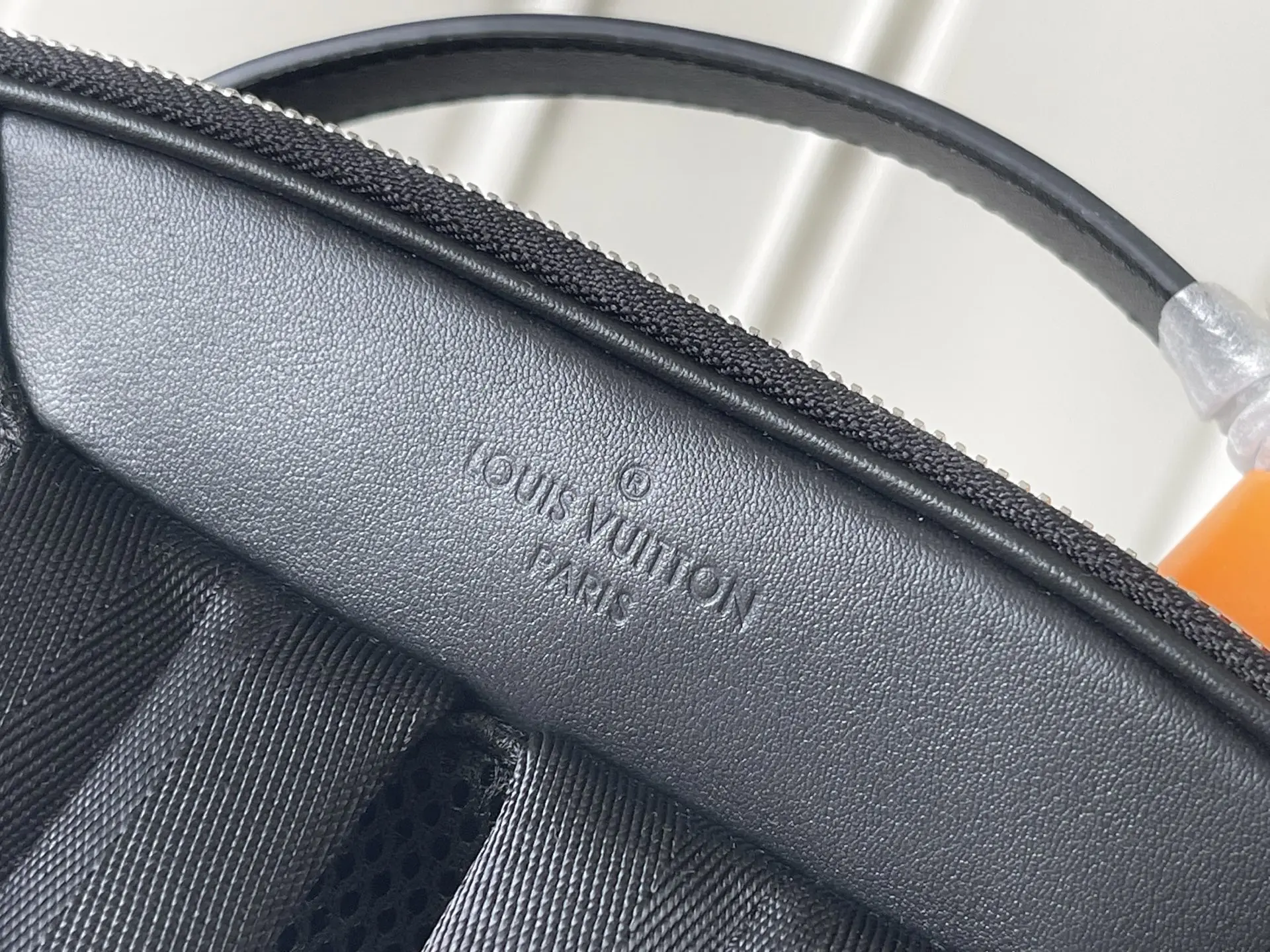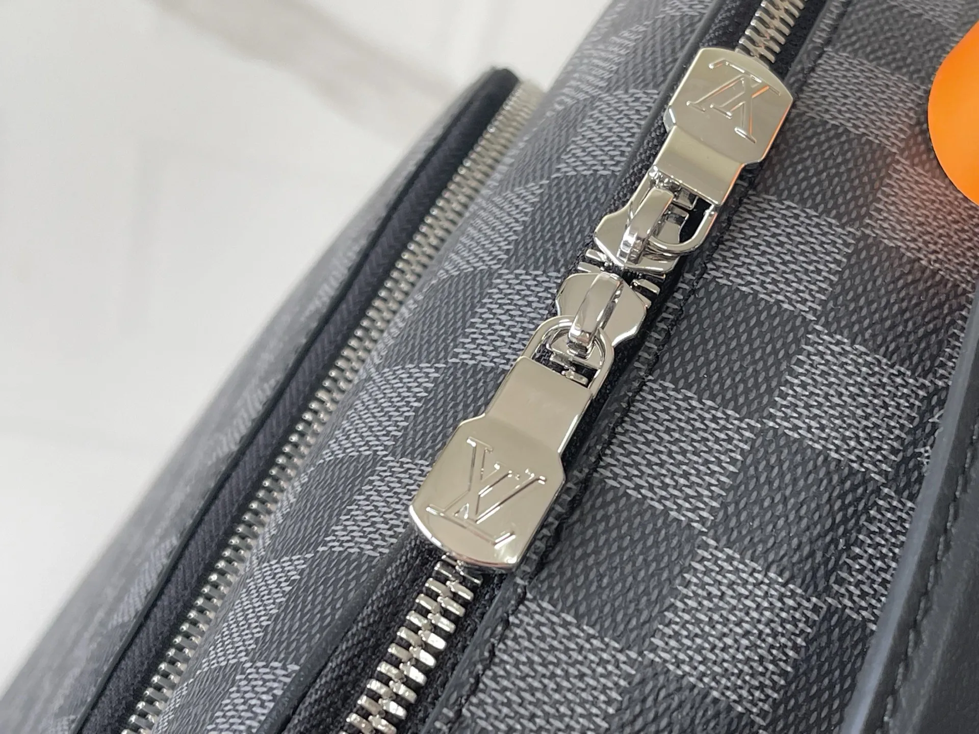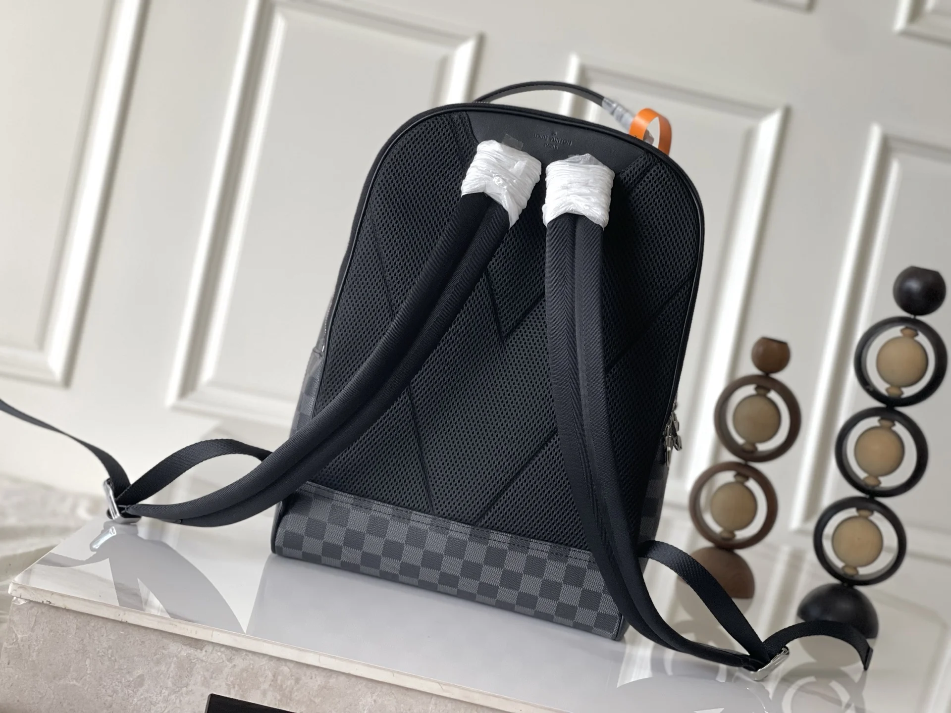 The N40499 Hacking and N40501 Embossing on the M30977 Taiga Leather Avenue Backpack in Damier Graphite coated canvas embodies refined elegance with its clean lines. A zipped front ..