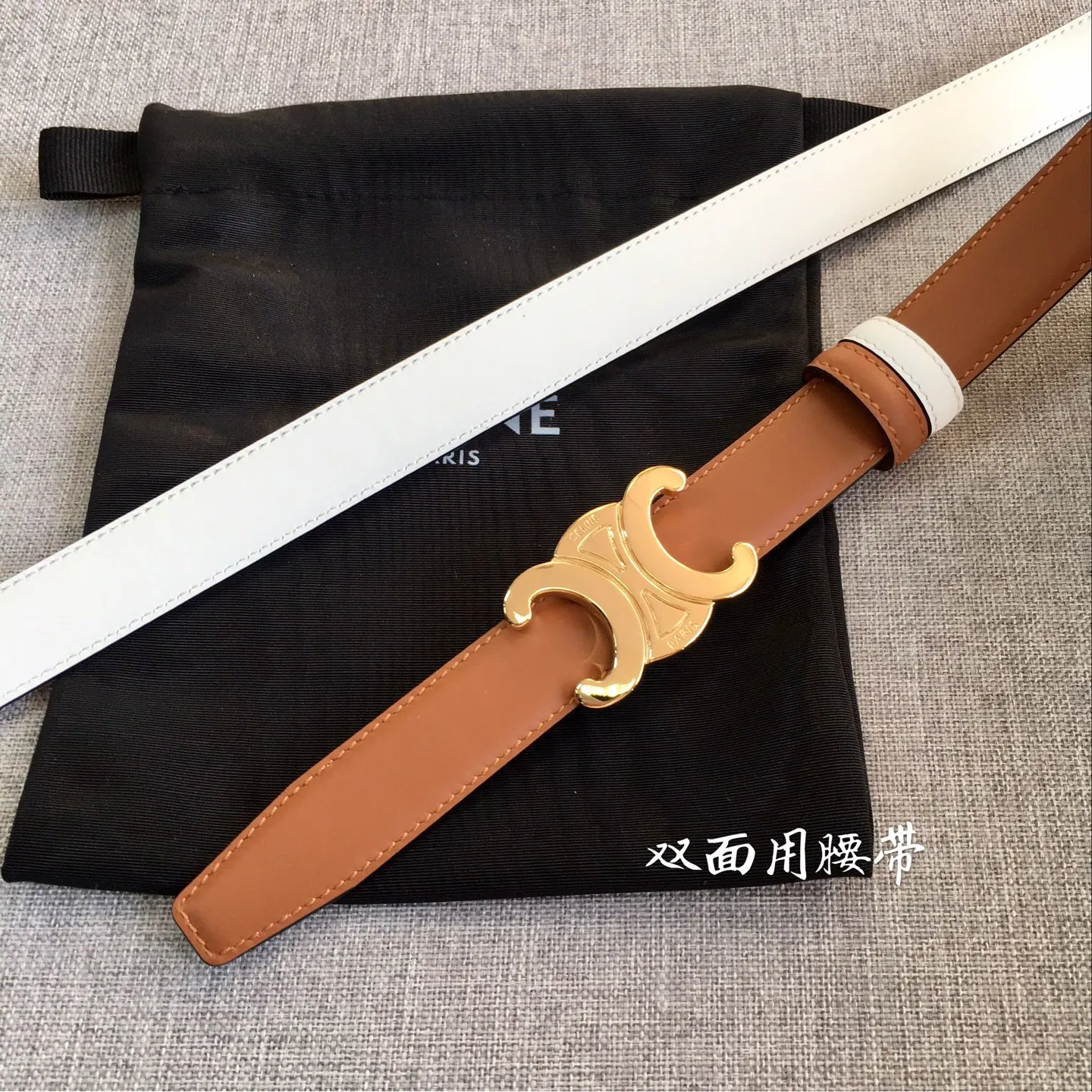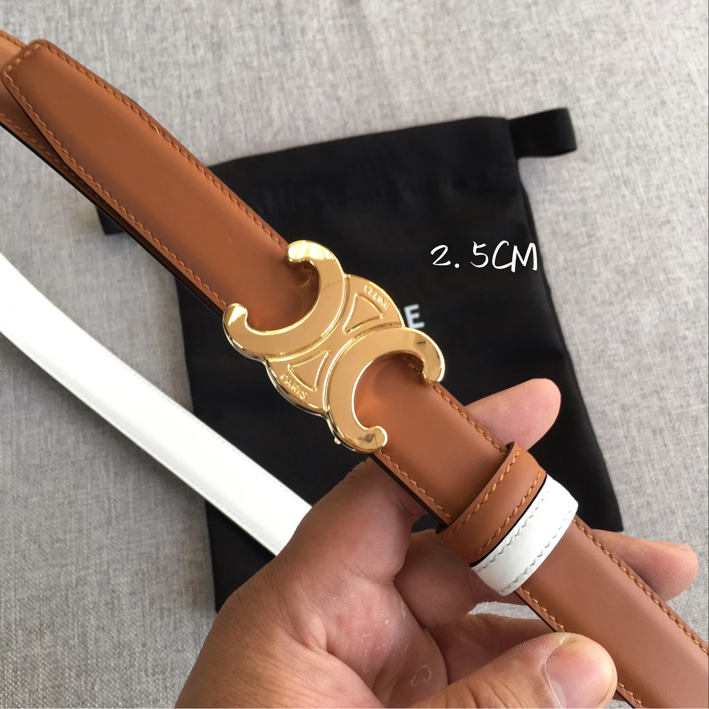 Full set packaging, new three-dimensional float buckle ladies belt, imported Italian calfskin with copper buckle, 2.5 width, double-sided wear