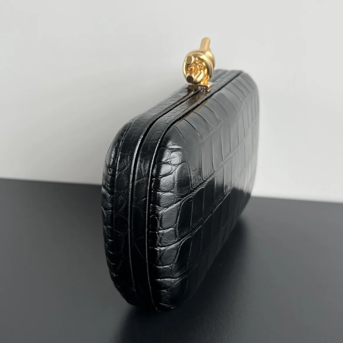New BV24 737025: There s a beauty called the Crocodile Knot Clutch [fireworks], crafted from fine, smooth crocodile leather! Showcasing a distinctive Knot design , it exudes a l..
