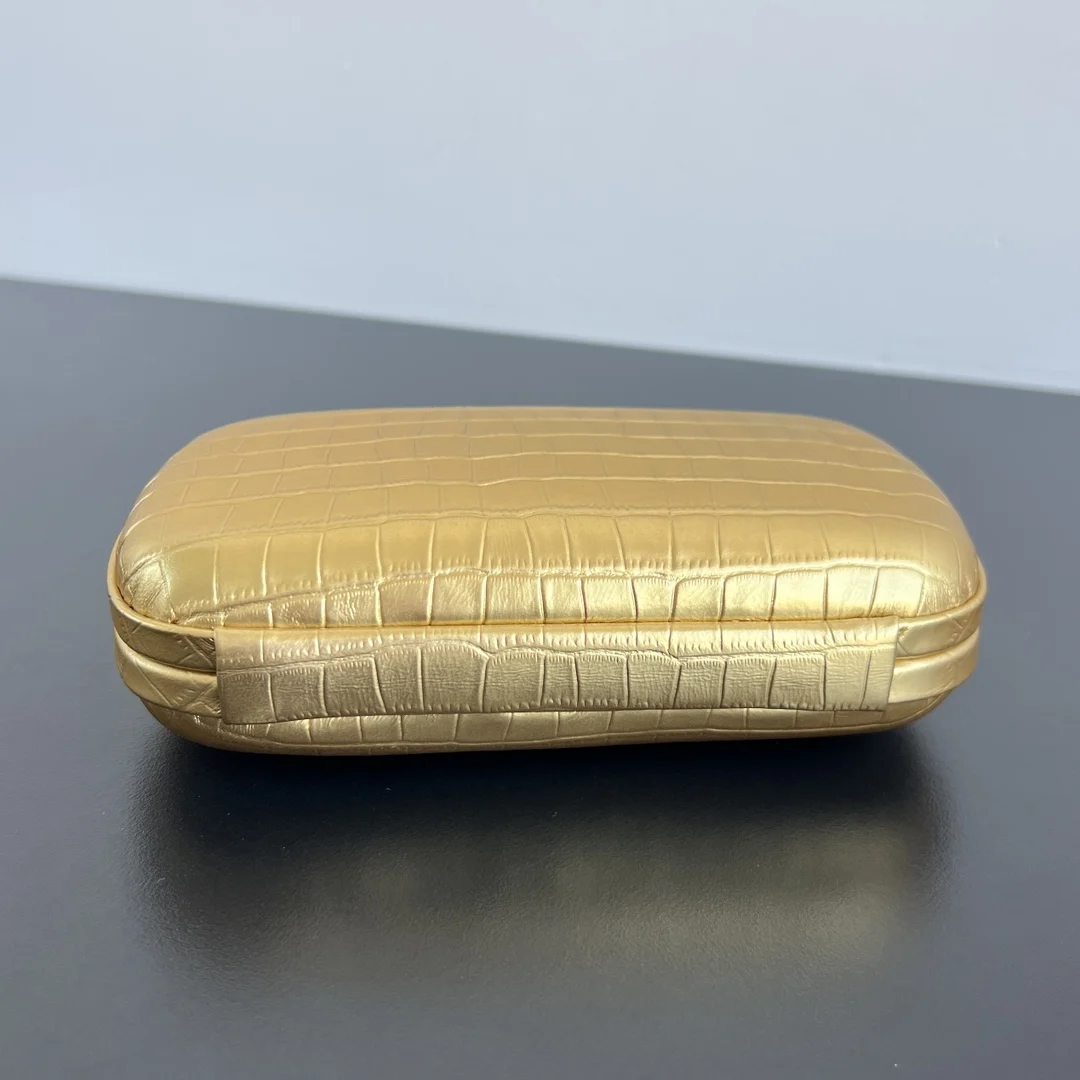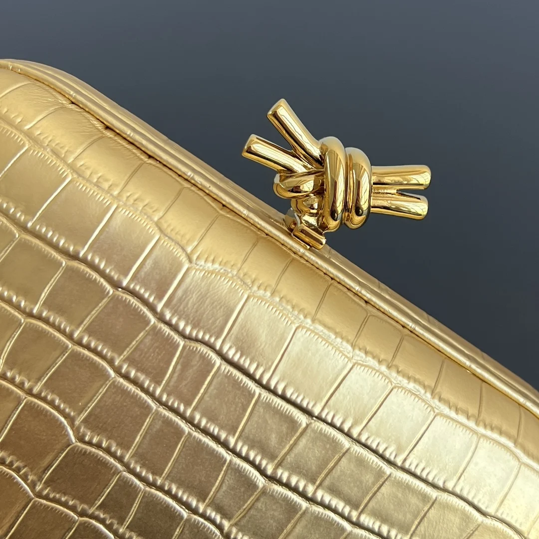 New BV24 737025. There s a beauty called Crocodile Knot Clutch [fireworks], crafted from fine, smooth crocodile leather! Presenting a distinctive Knot design . Exudes luxury and sophistication. The crocodile-embossed texture is both vintage and fashionable, elevating the entire outfit and radiating confidence. Size: 19x11.5x5