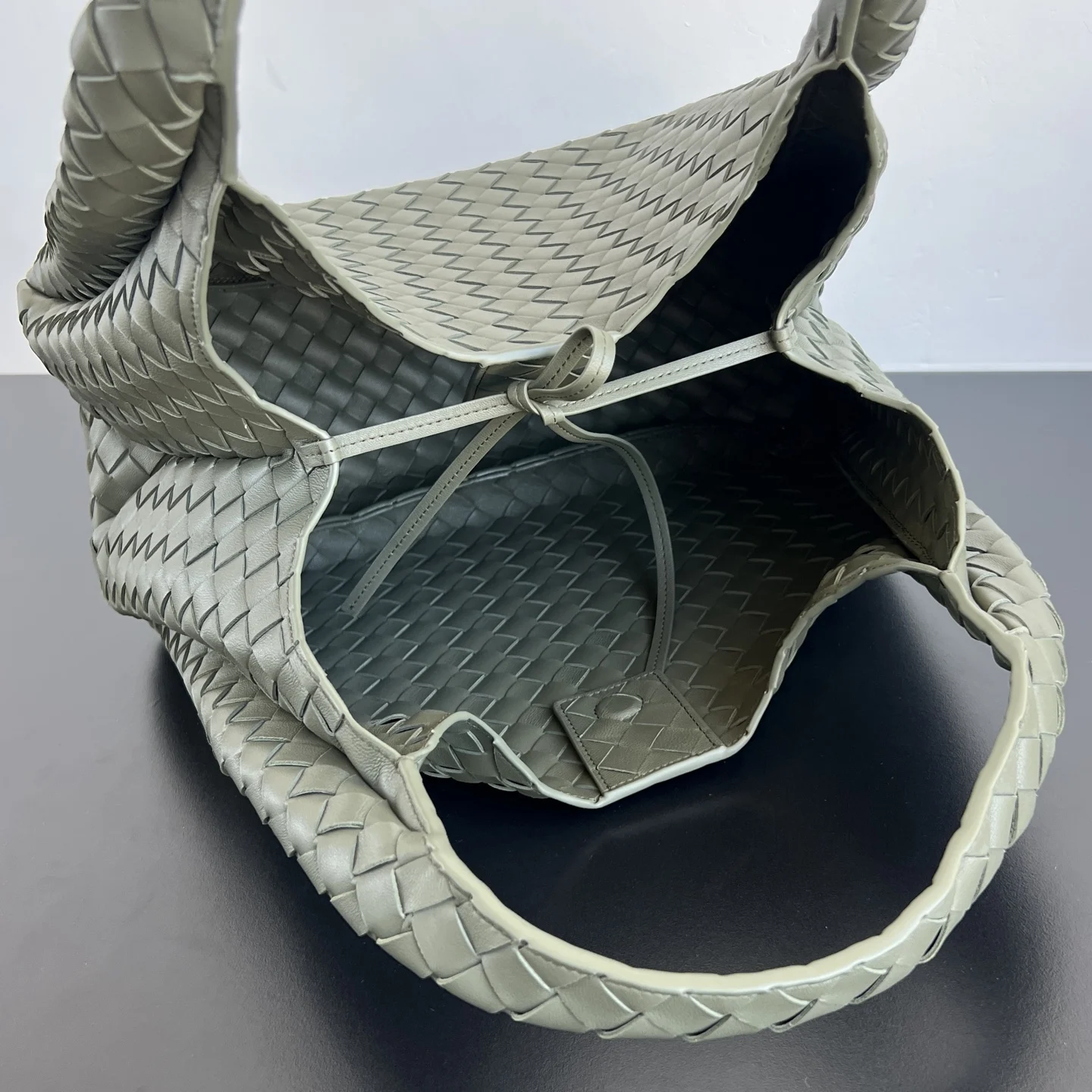 BV New Campana Bag 844250. The classic Campana bag makes a charming retro comeback Inspired by the classic archives of 2004 Each leather strip is made of two layers of Nappa lambskin , showcasing the ultimate craftsmanship of full weaving inside and out. The bag is super lightweight, with a leather tie closure and a hidden magnetic buckle. It has two switchable shapes and an amazing capacity, making it easy to handle daily outings or travel with various small items . It s perfect for both commuting and dating, effortlessly exuding French laziness . Dimensions: 39x25x18.5