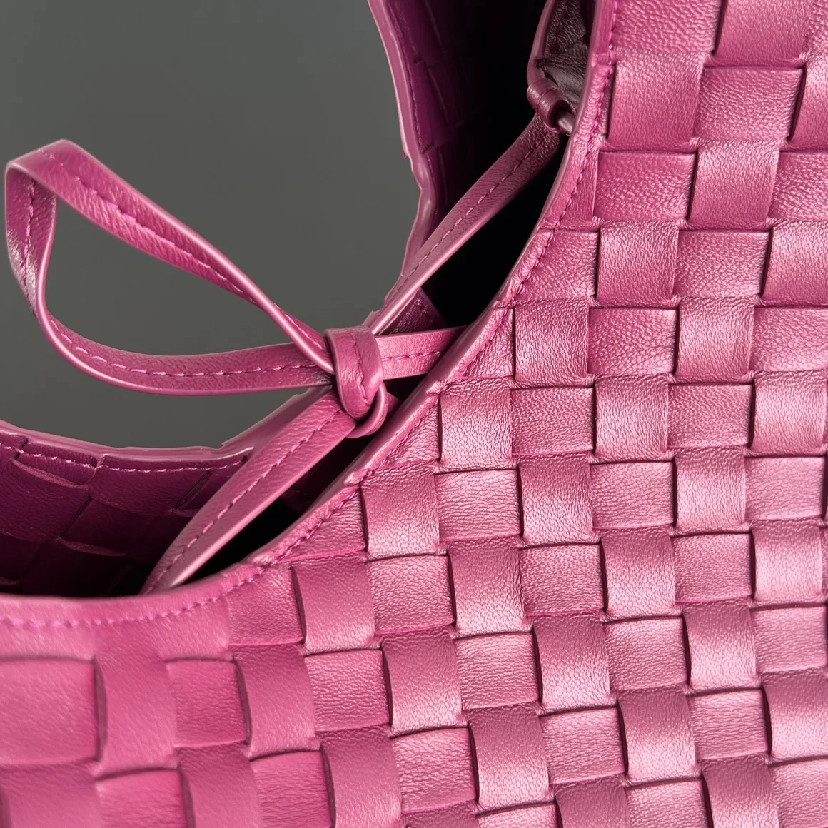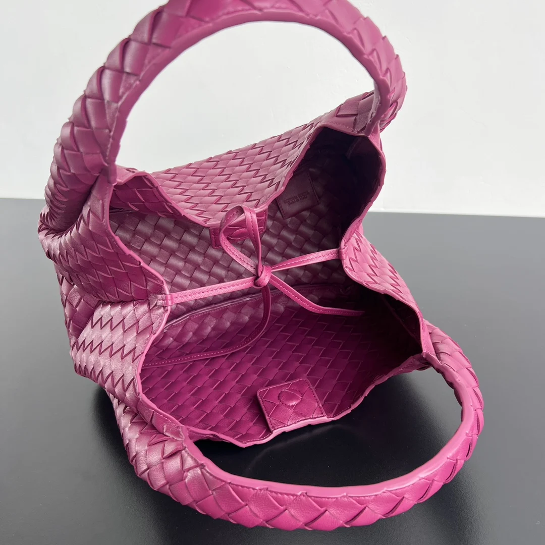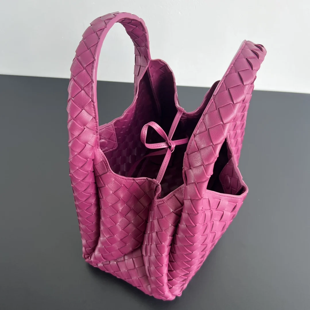 BV New Campana Bag 844249. The classic Campana bag makes a charming retro comeback Inspired by the classic archives of 2004 Each leather strip is made of two layers of Nappa lambskin , showcasing the ultimate craftsmanship of full weaving inside and out. The bag is super lightweight, with a leather tie closure and a hidden magnetic buckle. It has two switchable forms and an amazing capacity, making it easy to handle daily outings or travel with various small items . It s perfect for both commuting and dating, effortlessly exuding French laziness . Dimensions: 33x20x16.5