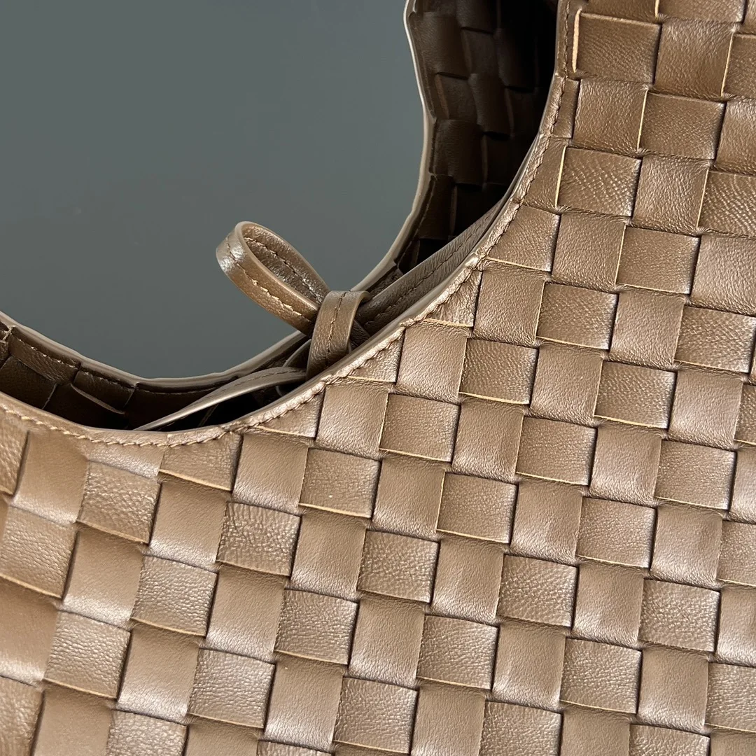 BV New Campana Bag 844249. The classic Campana bag makes a charming retro comeback Inspired by the classic archives of 2004 Each leather strip is made of two layers of Nappa lambskin , showcasing the ultimate craftsmanship of full weaving inside and out. The bag is super lightweight, with a leather tie closure and a hidden magnetic buckle. It has two switchable forms and an amazing capacity, making it easy to handle daily outings or travel with various small items . It s perfect for both commuting and dating, effortlessly exuding French laziness . Dimensions: 33x20x16.5
