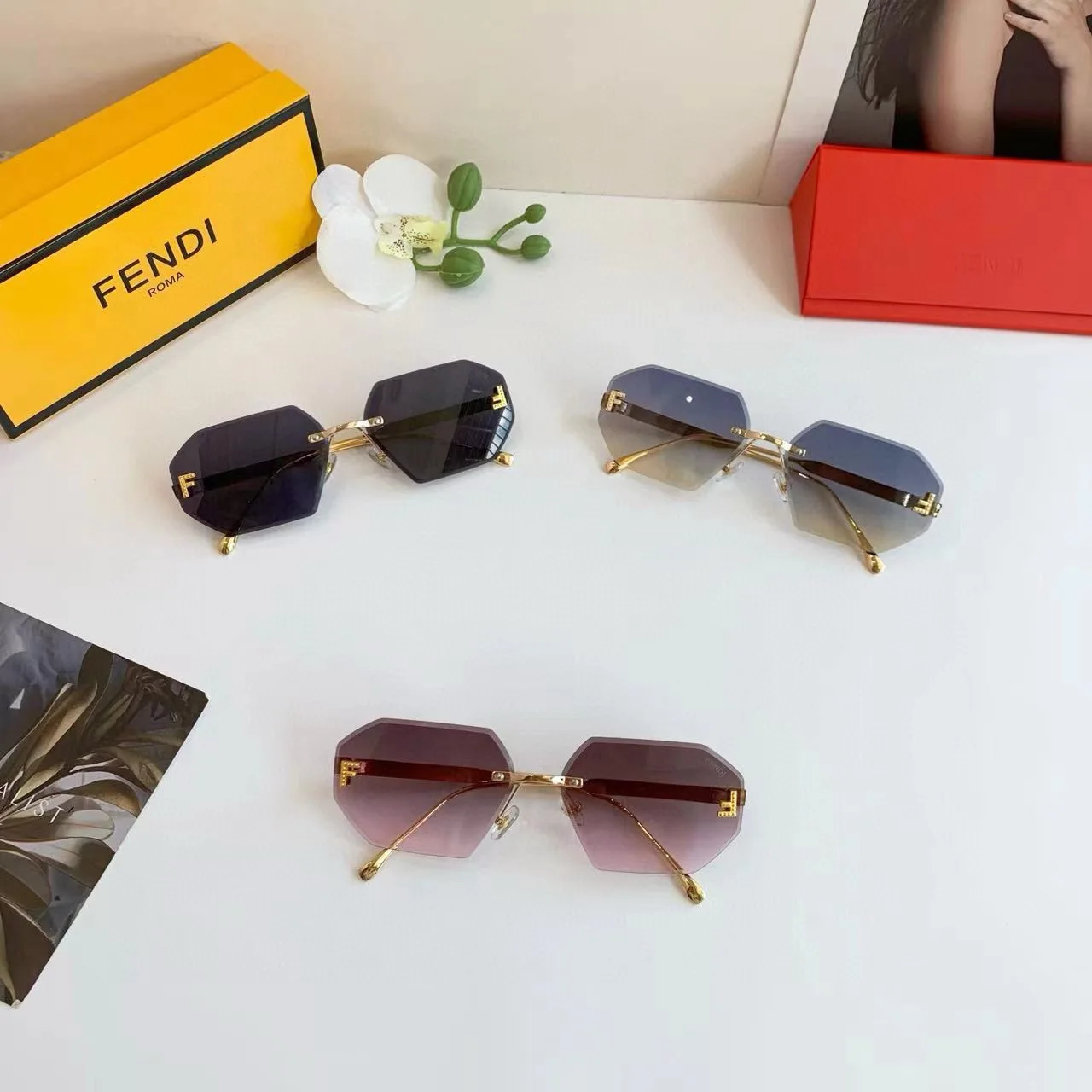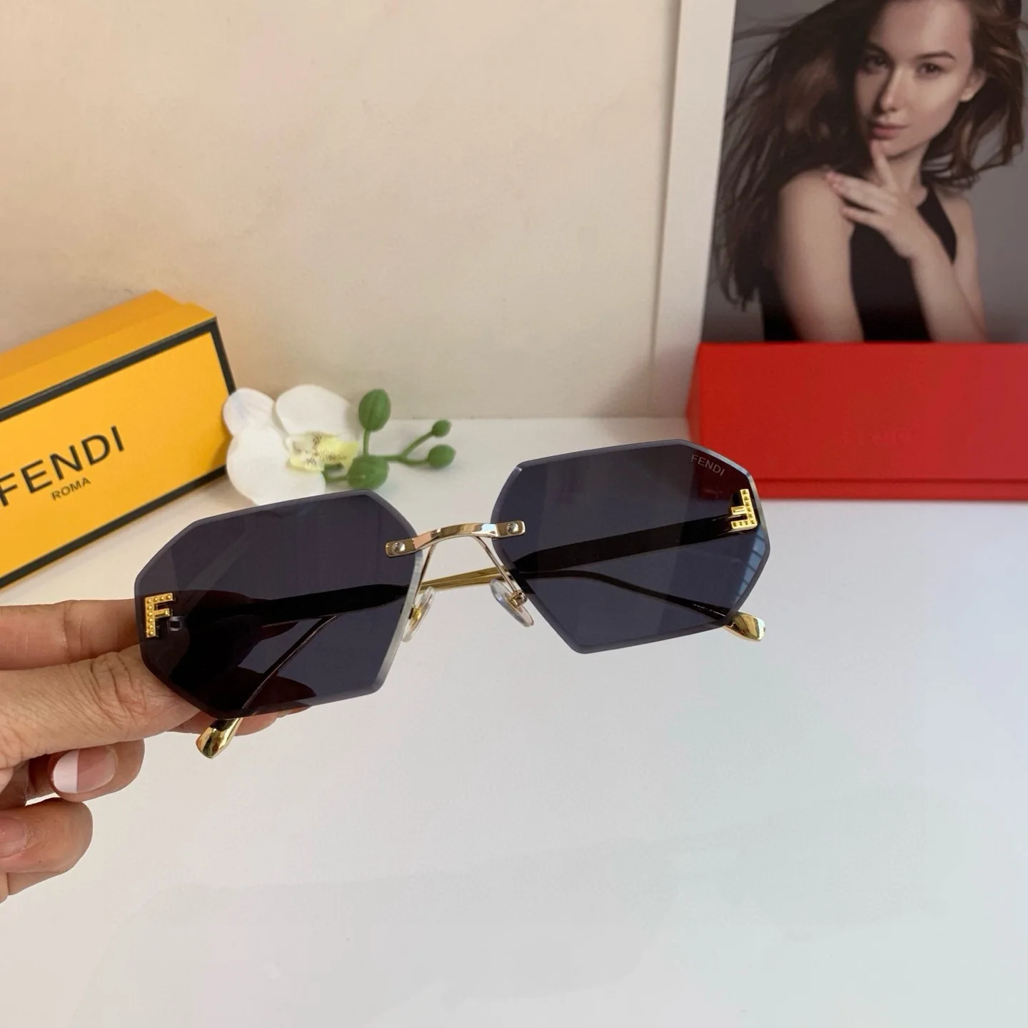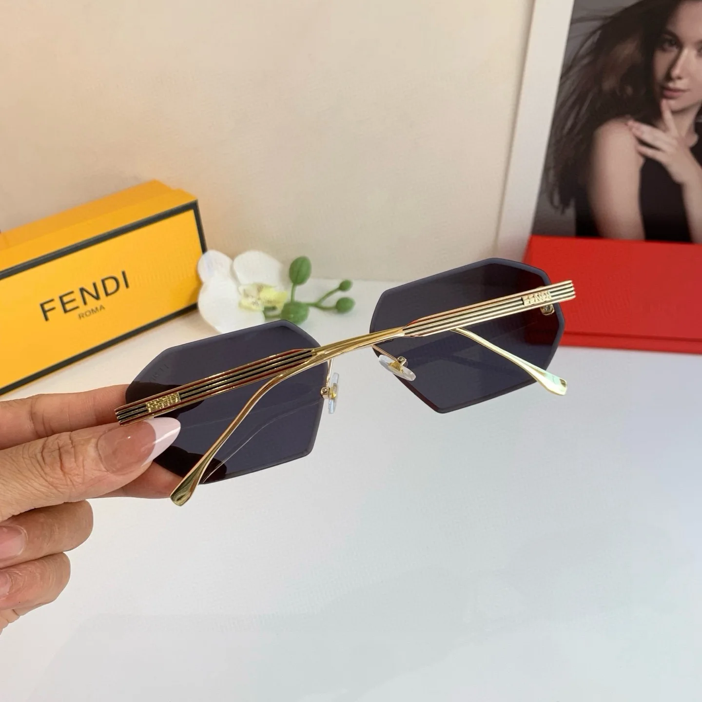 FENDI New Double F Sunglasses Frameless Sunglasses Trendy King Unisex The most versatile style!