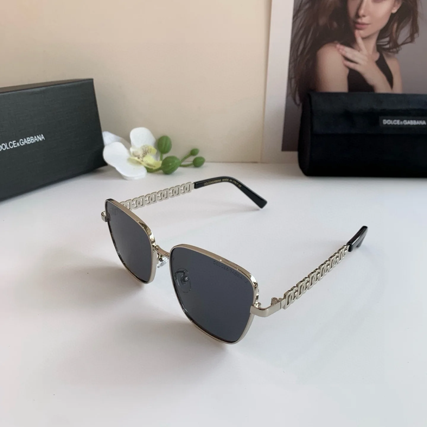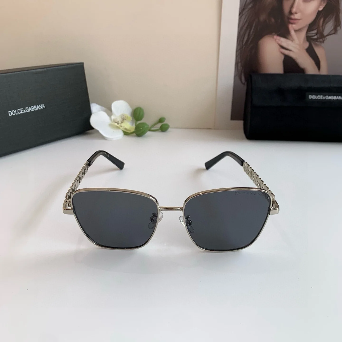 Dolce Gabbana New Fashion Trendy Metal Square Frame Sunglasses
