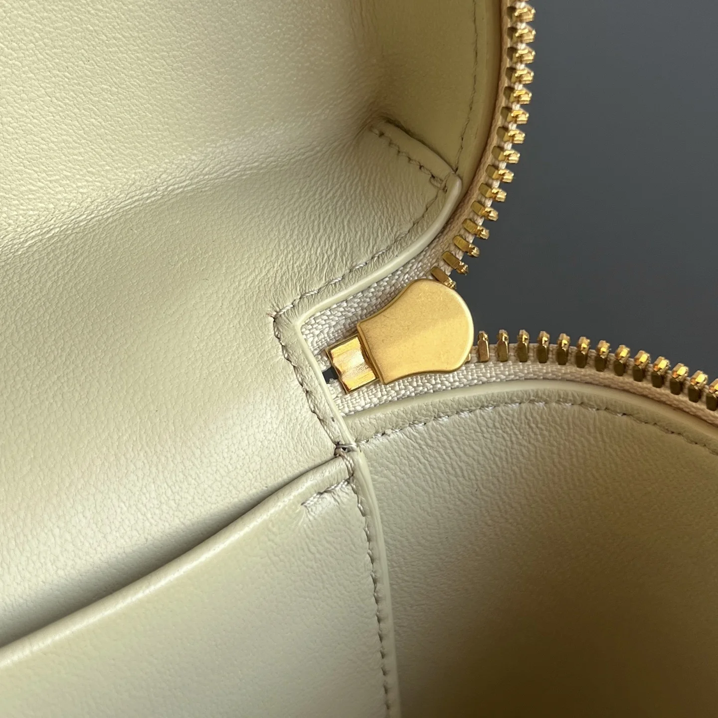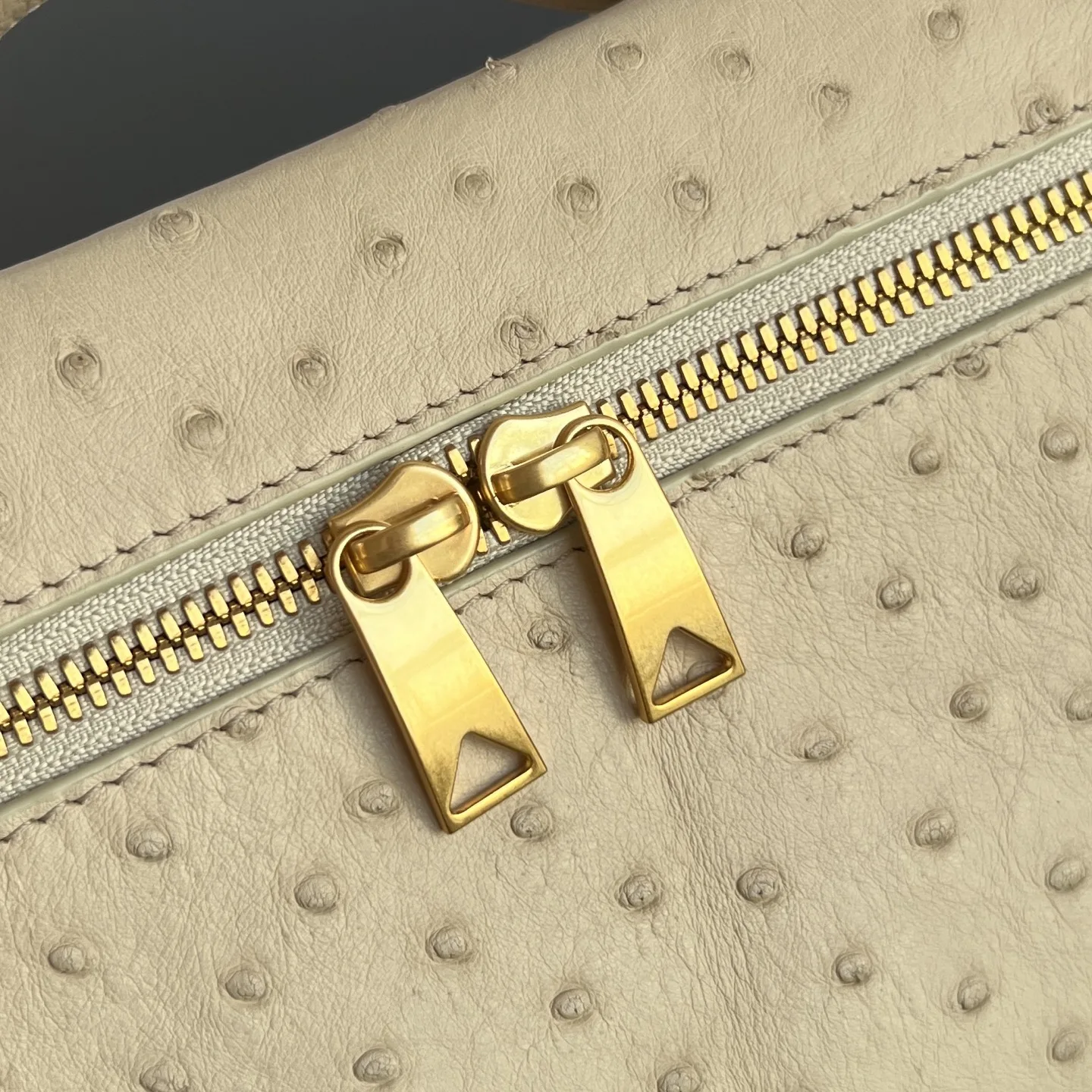 BV New Arrival Ostrich Leather Cosmetic Bag 817785. These ostrich leather cosmetic bags come in such gentle colors . They are the low-key, luxurious, compact, and lightweight bags loved by wealthy sisters . Crafted from South African Grade A rare ostrich leather, each natural pore boasts a unique texture. It feels delicate yet slightly grainy to the touch. The serrated design on both sides enhances the overall sophistication and fashion sense. Carry it by hand for a refined lady look, or wear it crossbody for a casual, trendy vibe. It looks beautiful just sitting there. I m in love already . Size: 22x12.5x5