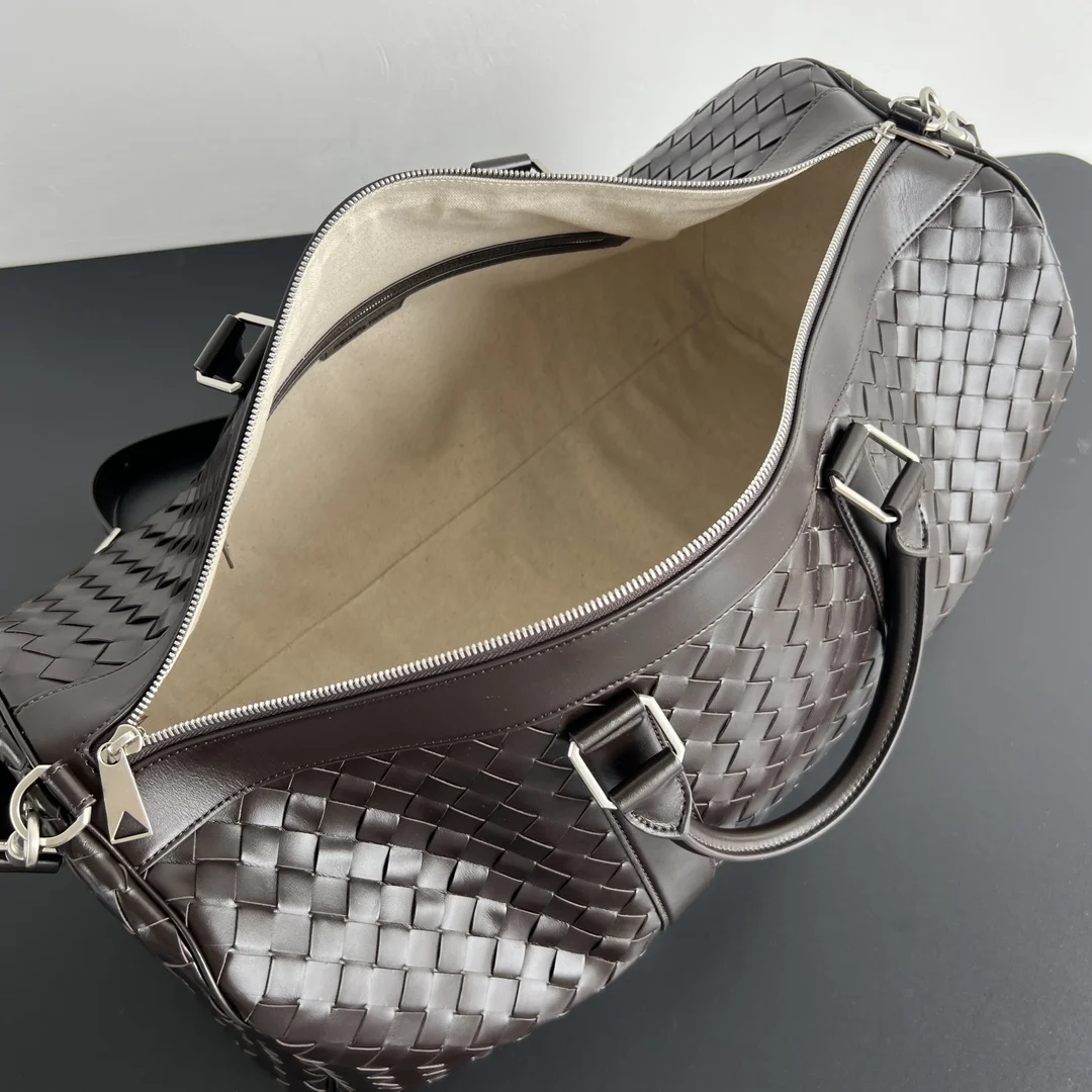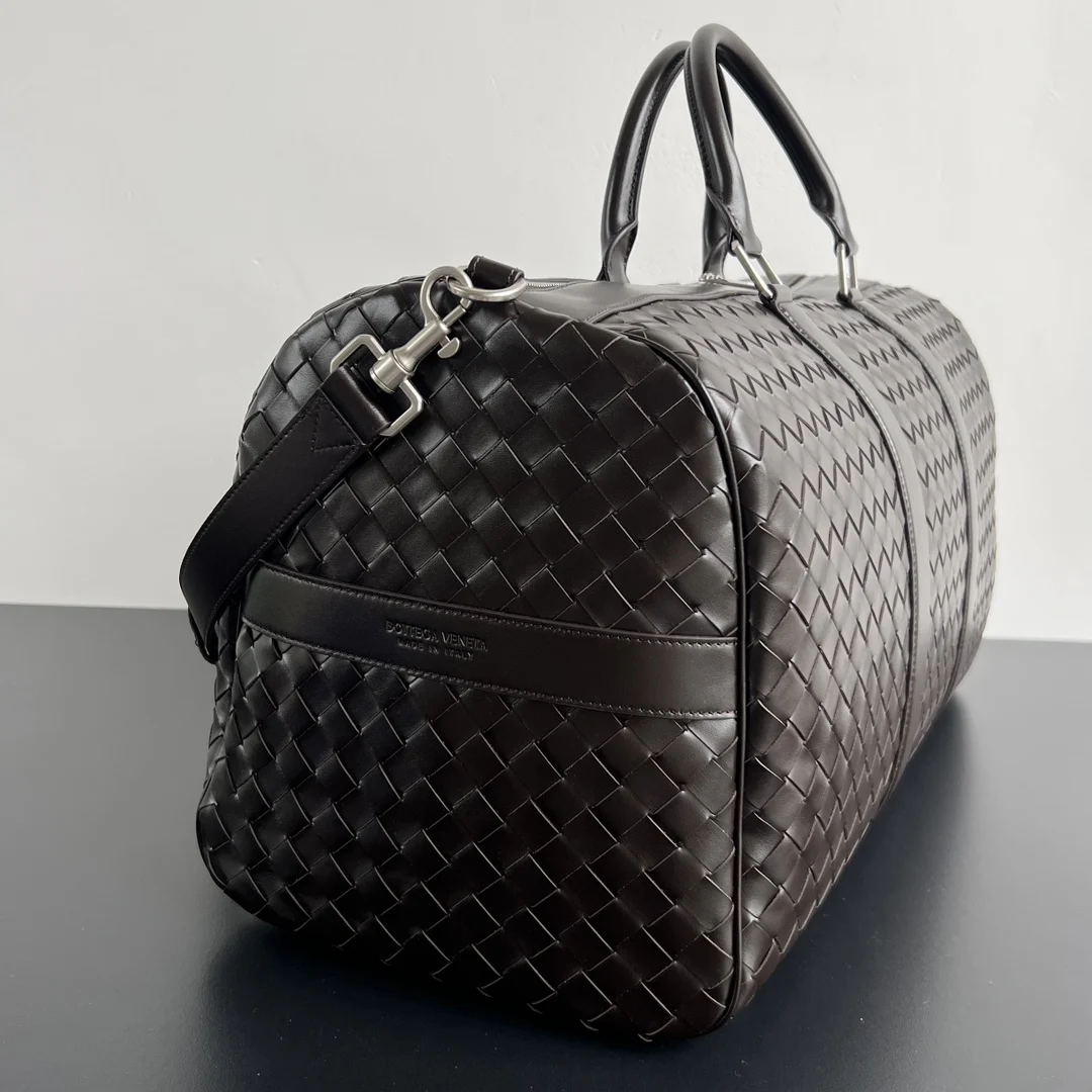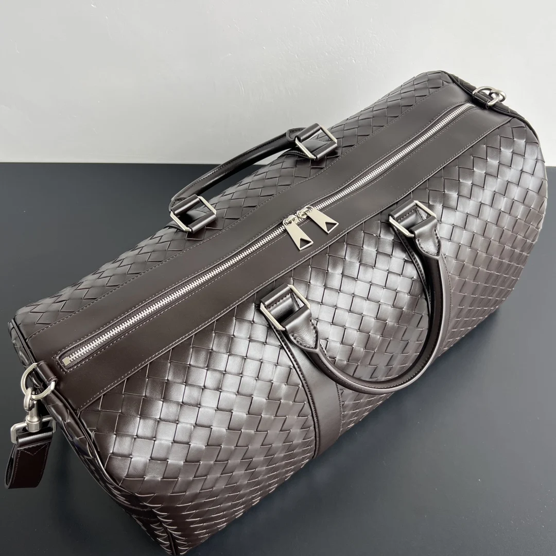 Bv intrecciato woven travel bag 795287. Oversized capacity, ultimate quality, fulfilling all your travel fantasies. Interior and exterior crafted from supple woven calfskin leather, showcasing high quality and sophistication. Each touch offers a unique texture. Ample interior and exterior pockets, with a detachable inner pouch. Durable, lightweight, and easy to store. The travel bag has become an indispensable companion for people s travels. Dimensions: Width 55cm * Height 29cm * Depth 24cm * Handle 15cm * Shoulder strap 53cm.