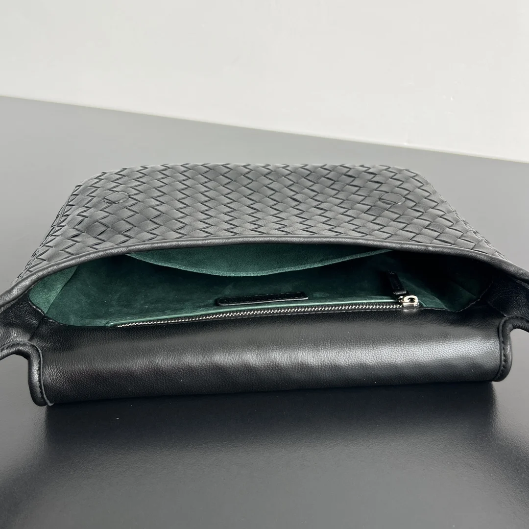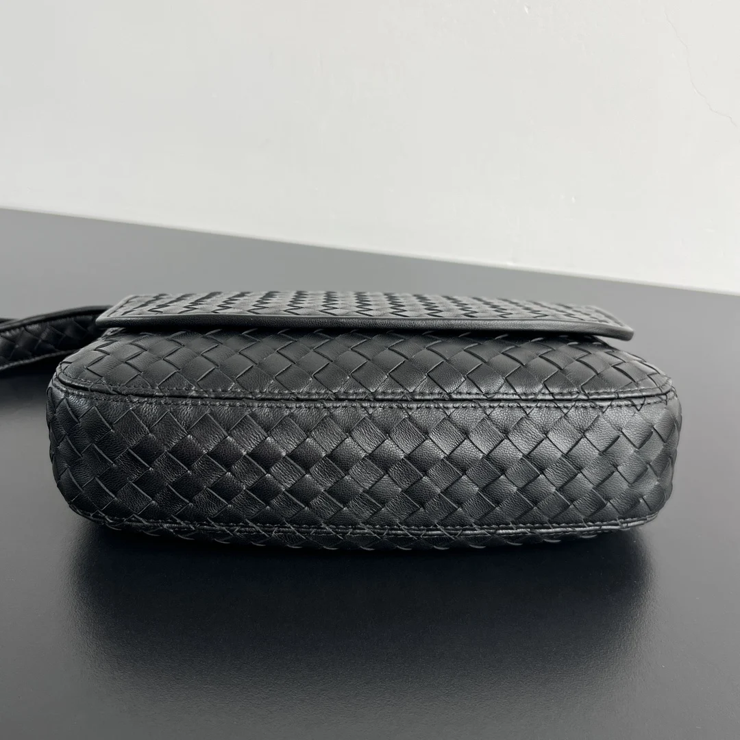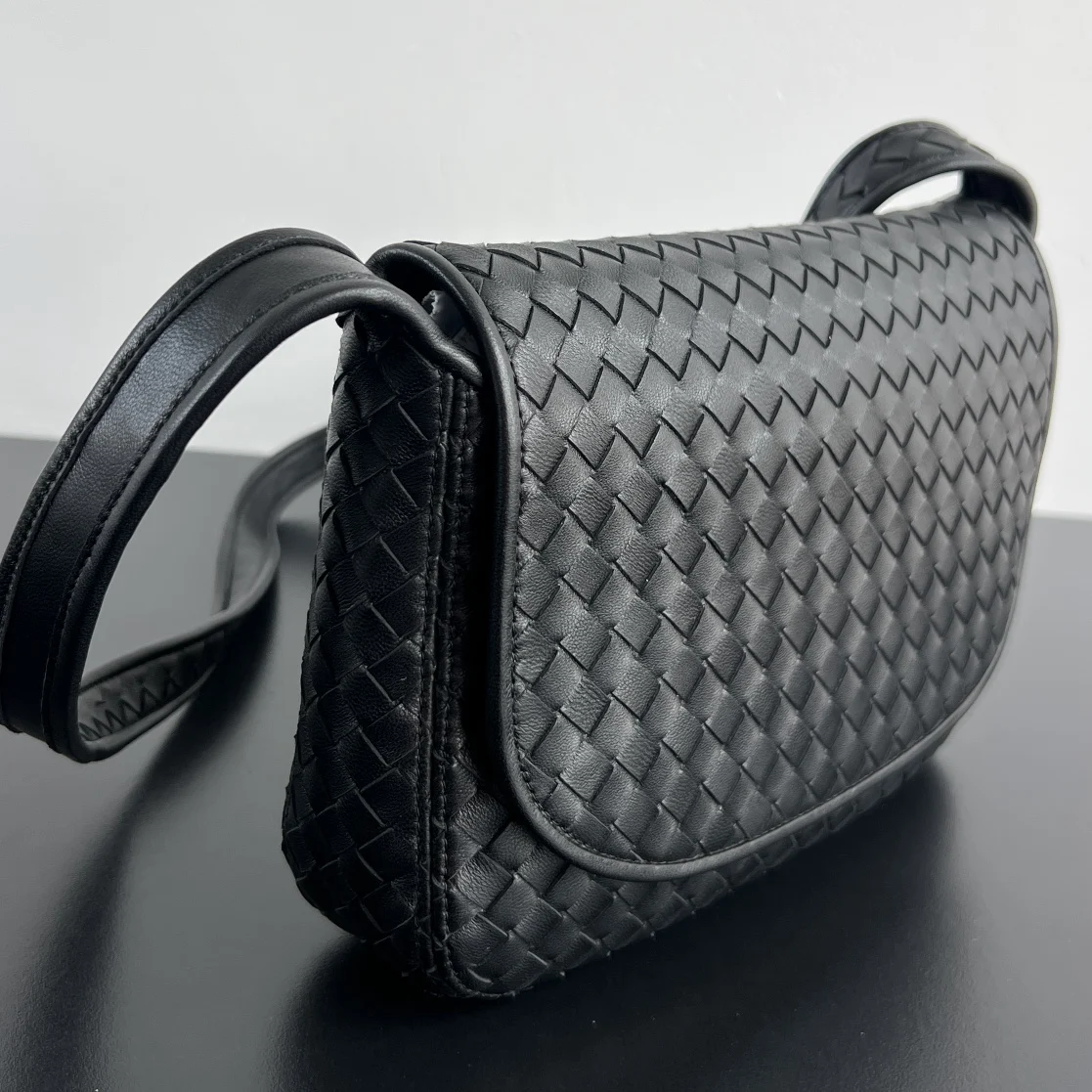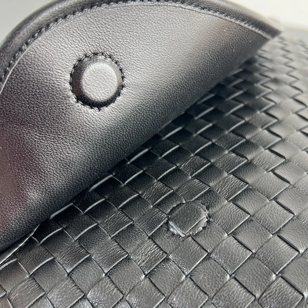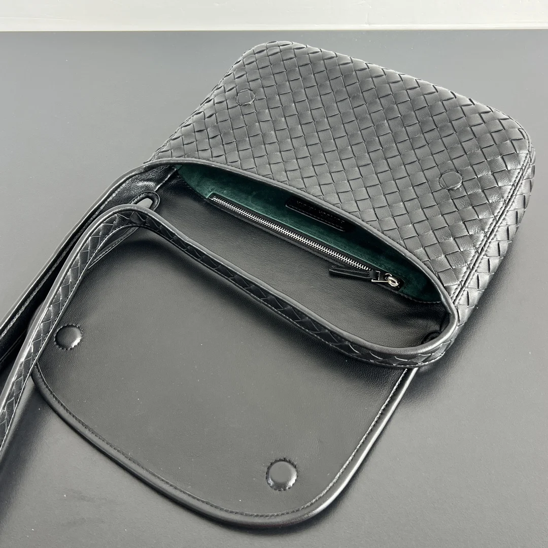 BV New Veneto Flap Crossbody Bag 843836 features a finely woven, one-piece strap and body that perfectly conforms to the body for maximum comfort. Made of silky, delicate lambskin leather, it is super lightweight. The interior has a zipper compartment and a divider. The flap bag design offers a large capacity and a generous appearance. It is suitable for all seasons and occasions, both casual and formal. The Veneto exudes a quiet, luxurious, classic style that is truly cool. Dimensions: 26x18.5x5