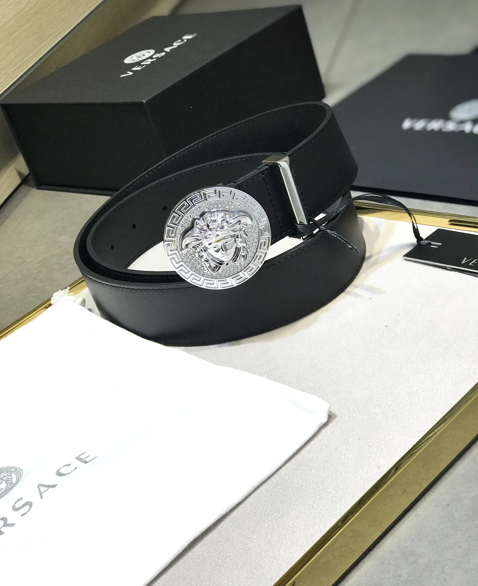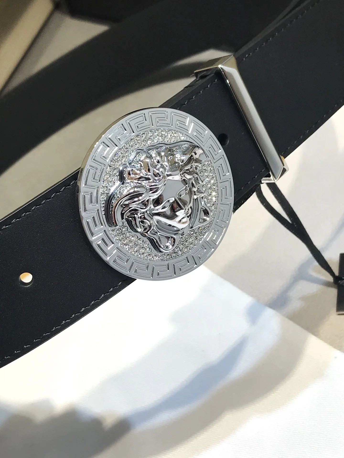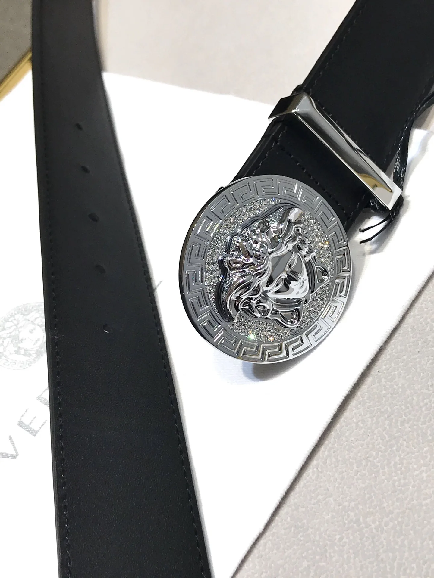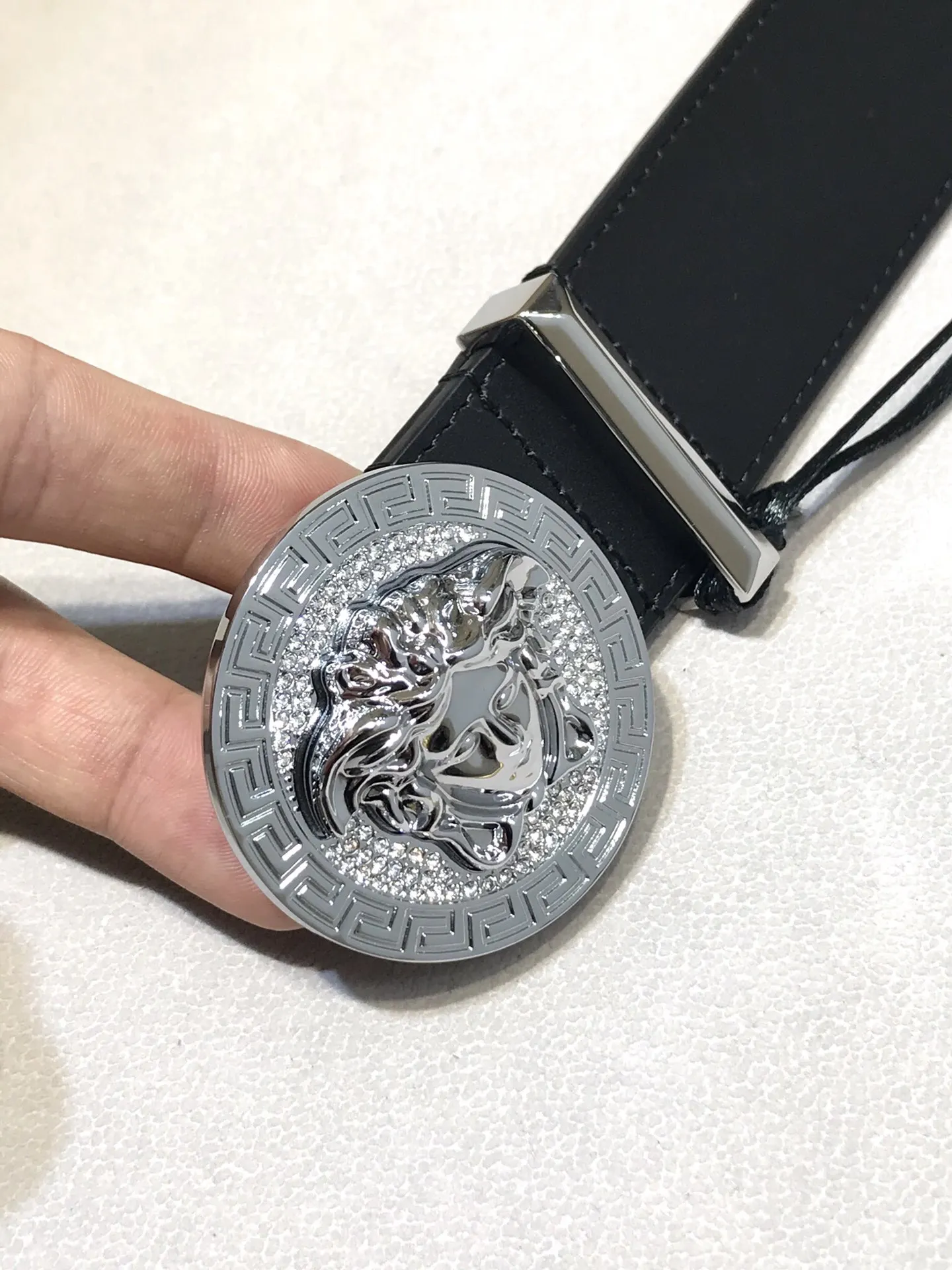 Versace Original 3D Stereoscopic Diamond-Studded Head Buckle Medusa Head Men s Belt