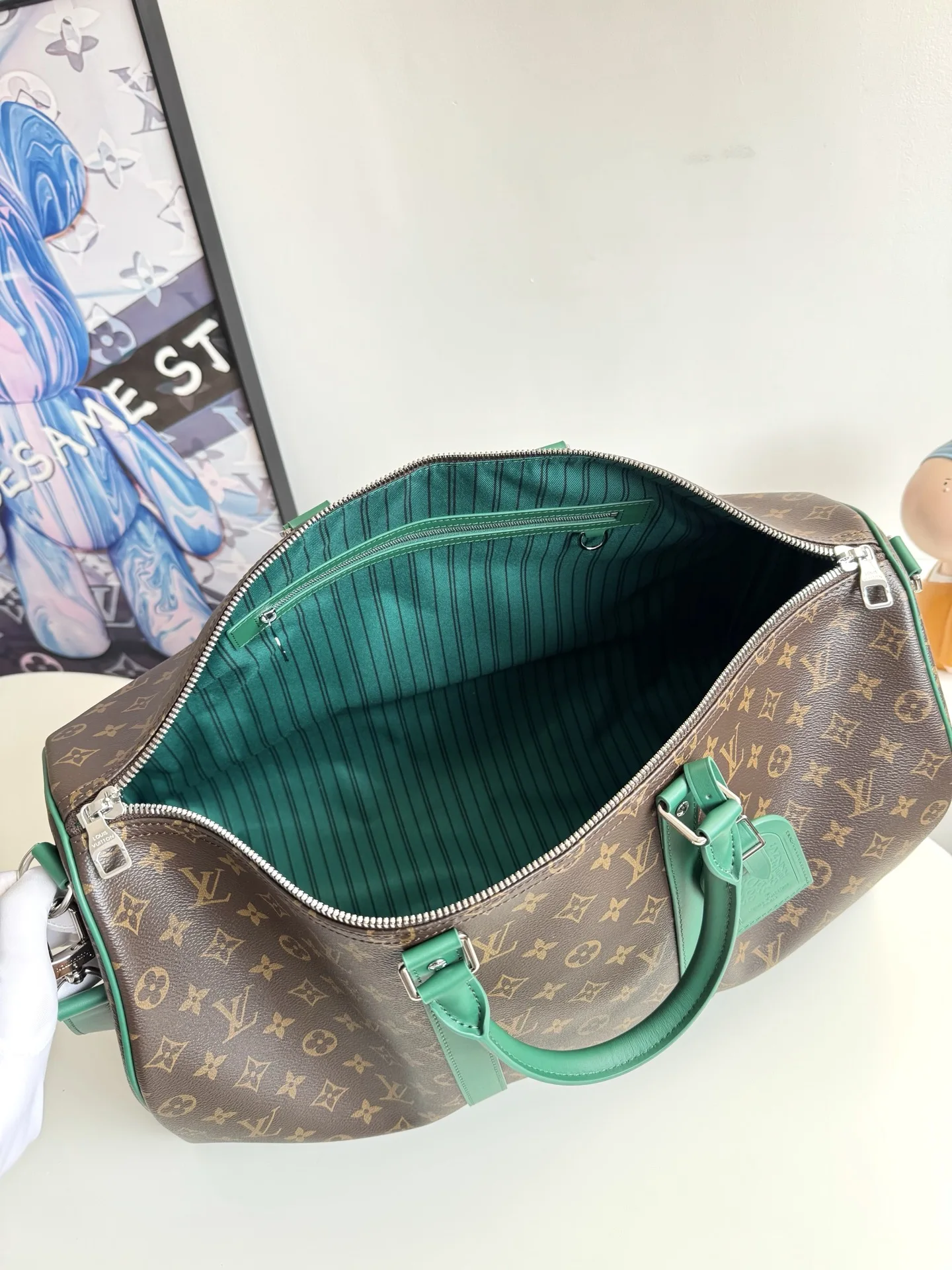 Exclusive real shots of overseas original M12630! This Keepall Bandouliere 50 travel bag features Monogram Macassar canvas with bright top handles, a detachable shoulder stra..