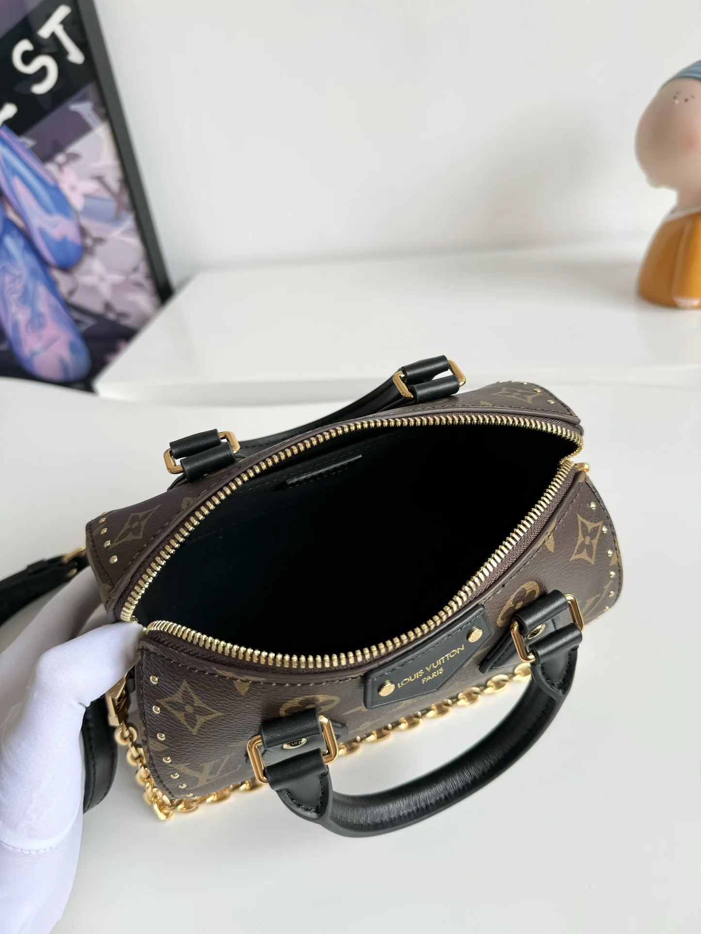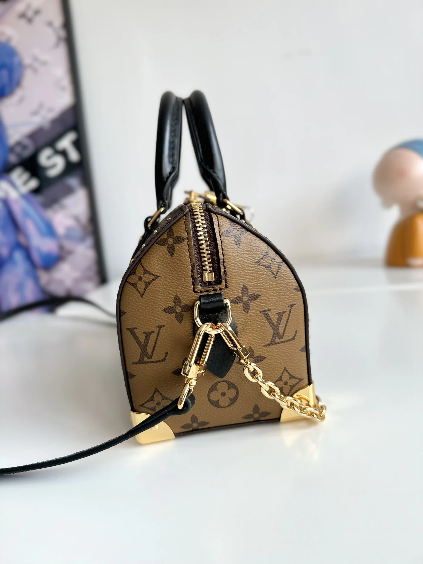 Exclusive original overseas order M13146, real shots! The Speedy Trunk handbag boldly reimagines a classic design, making a striking debut at the Louis Vuitton 2025 Cruise Collection. Monogram canvas is paired with Monogram Reverse trim, showcasing Nicolas Ghesquiere s signature touch, while dazzling metal hardware pays homage to the brand s long-standing trunk-making heritage. Both the shoulder strap and chain are detachable, allowing for crossbody, shoulder, or hand carry. Dimensions: 20.5 x 13.5 x 11cm