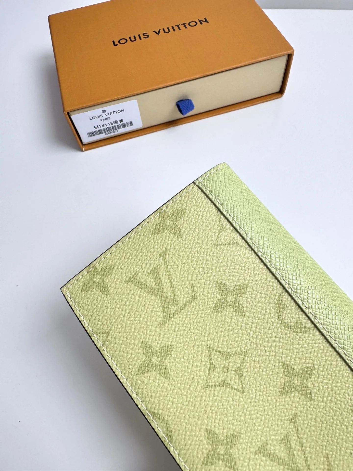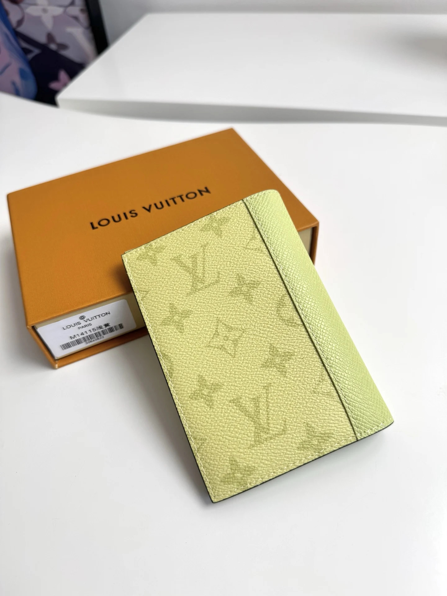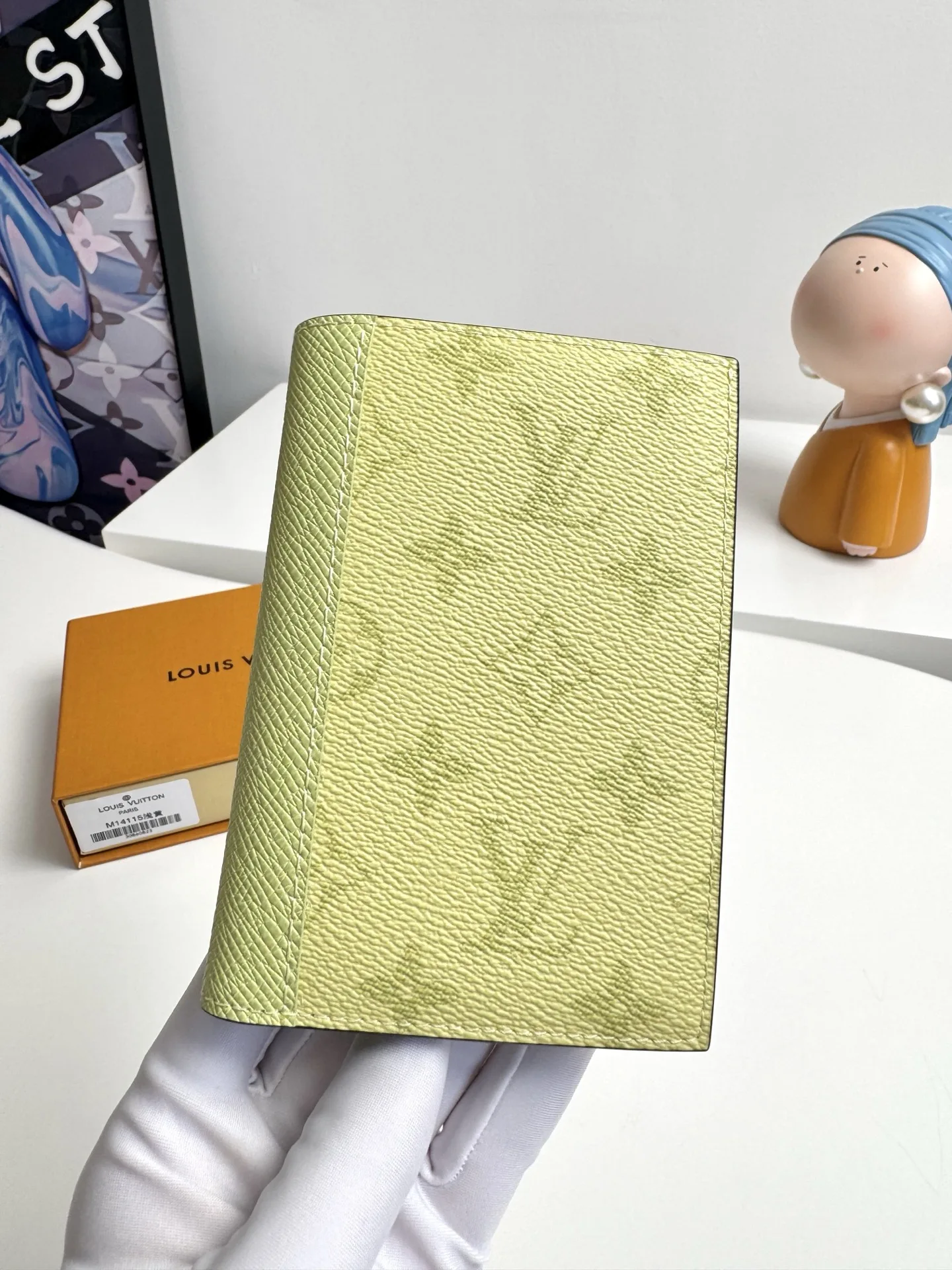 Overseas original M14115 light yellow exclusive real shot! This passport cover is made of bright Monogram coated canvas and Taiga cowhide, adding a fresh member to the Taigarama series. The bright cowhide lining perfects the exquisite design, and the card slots and open pockets properly store personal items, accompanying the journey with elegant style. Size: 14×10×2.5cm