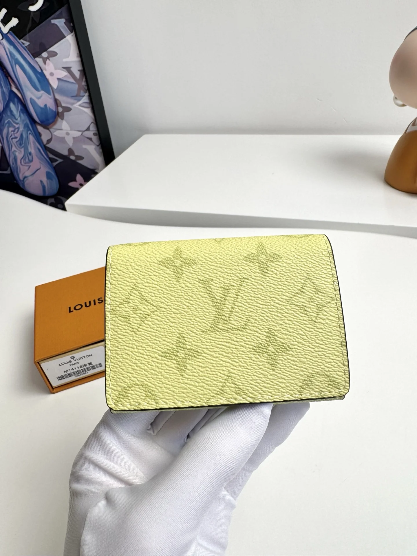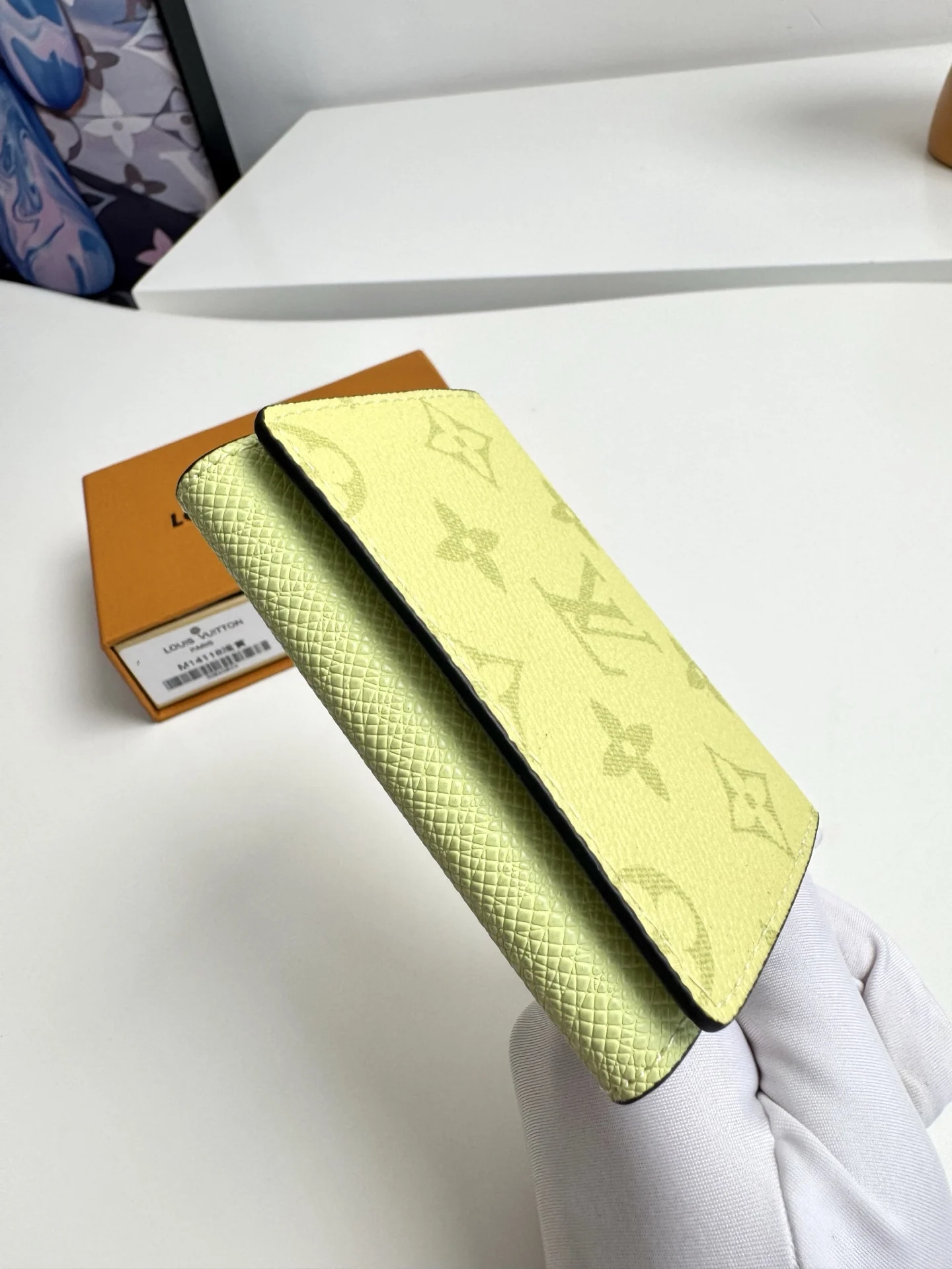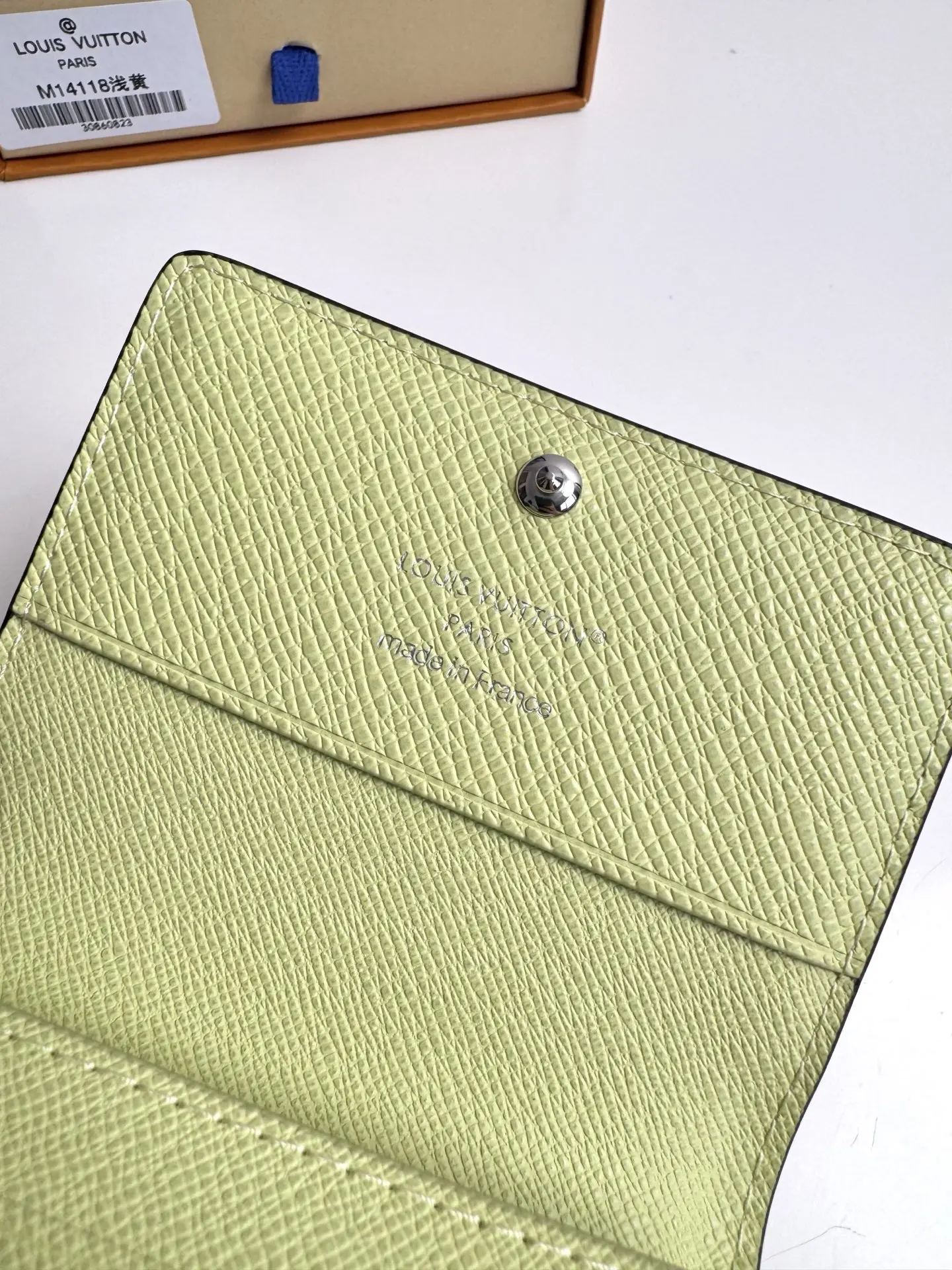 Original overseas order M14118 light yellow exclusive real shot! ENVELOPPE CARTE DE VISITE business card holder, crafted from Damier Graphite coated canvas, this slim and refined Enveloppe Carte de Visite business card holder fits easily into a pocket or bag. Snap closure design securely stores business cards and credit cards. Dimensions: 10.5 x 8 cm