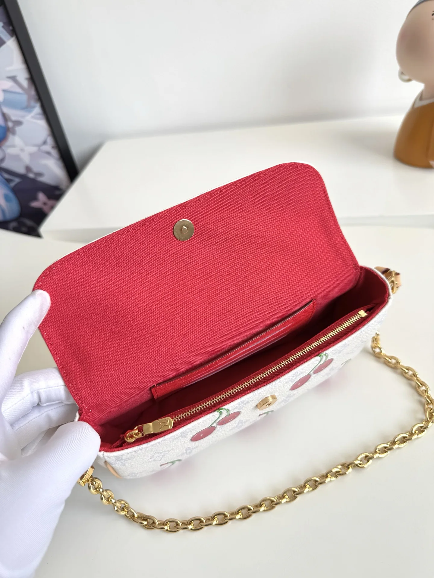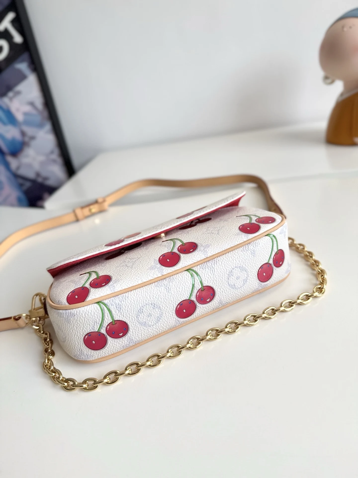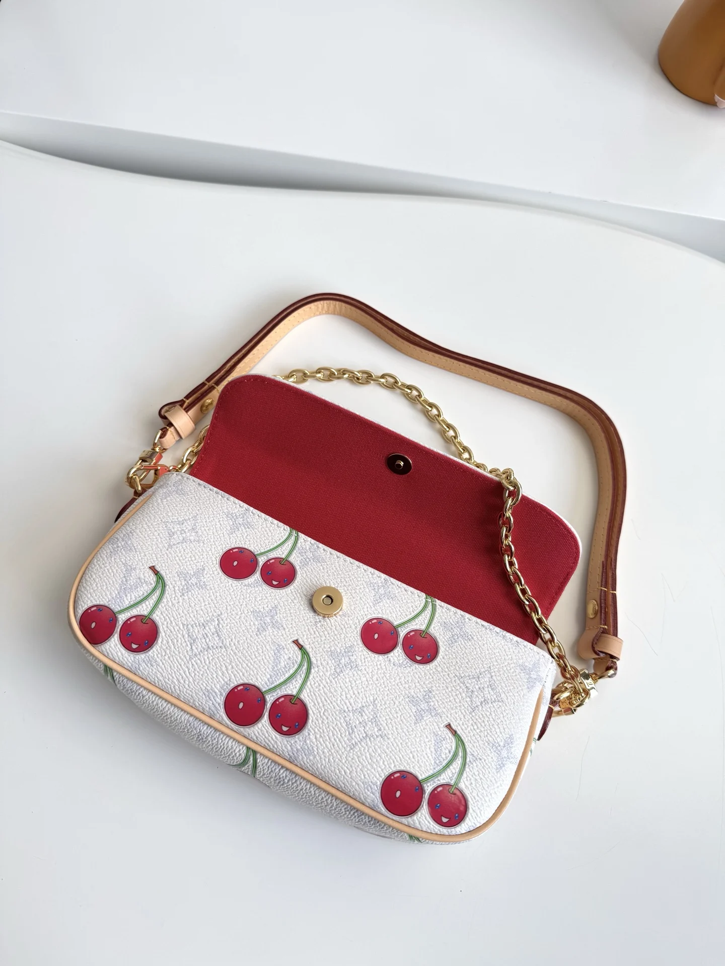 Original overseas order M14239 exclusive real shots! This Wallet On Chain Ivy handbag continues the narrative of the 2000s, joyfully joining the Louis Vuitton x Takashi Murakami revival collection. Monogram canvas subtly enhances the vivid colors of the cherry pattern, striving to unleash the kawaii power in the mind of the Japanese artist. The leather strap and chain facilitate shoulder carry. Dimensions: 23.5×12×4cm
