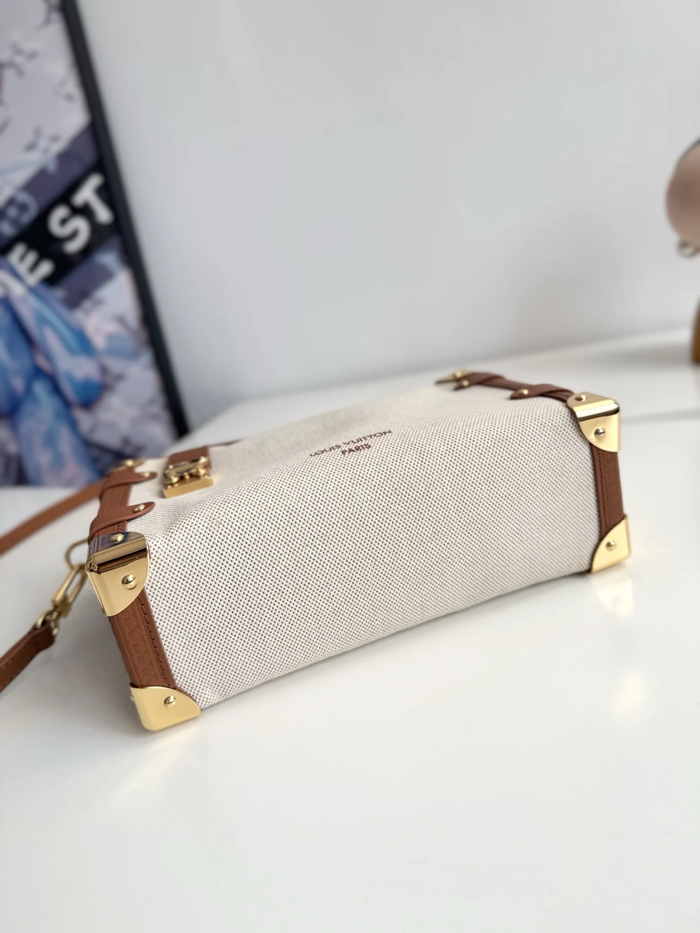 Exclusive original overseas order M14411, real shots! This medium Side Trunk handbag from the Natural Canvas collection features cotton canvas with contrasting leather trim, ..
