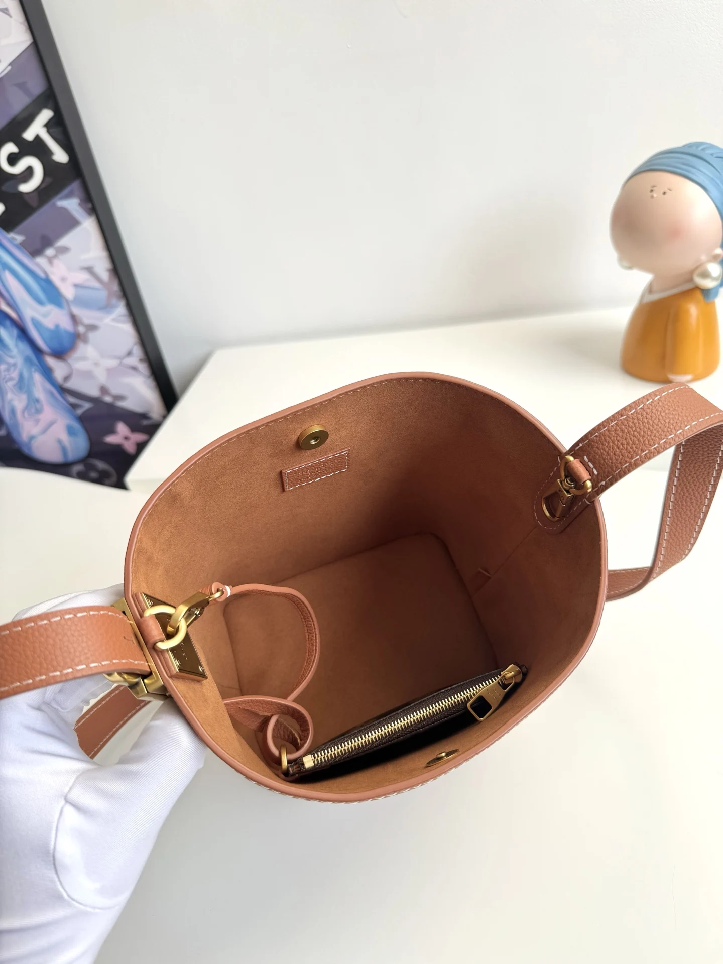 Original overseas order M14416, exclusive real shots! This All In BB handbag is from the Low Key collection, crafted from grained cowhide leather into a compact bucket bag sha..