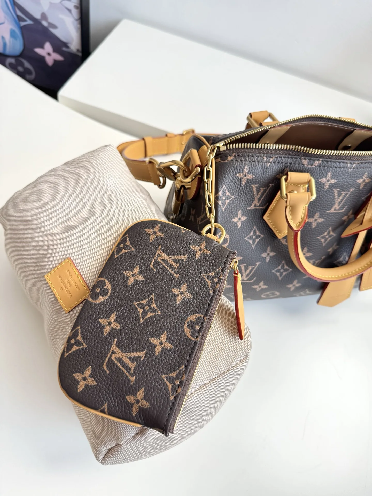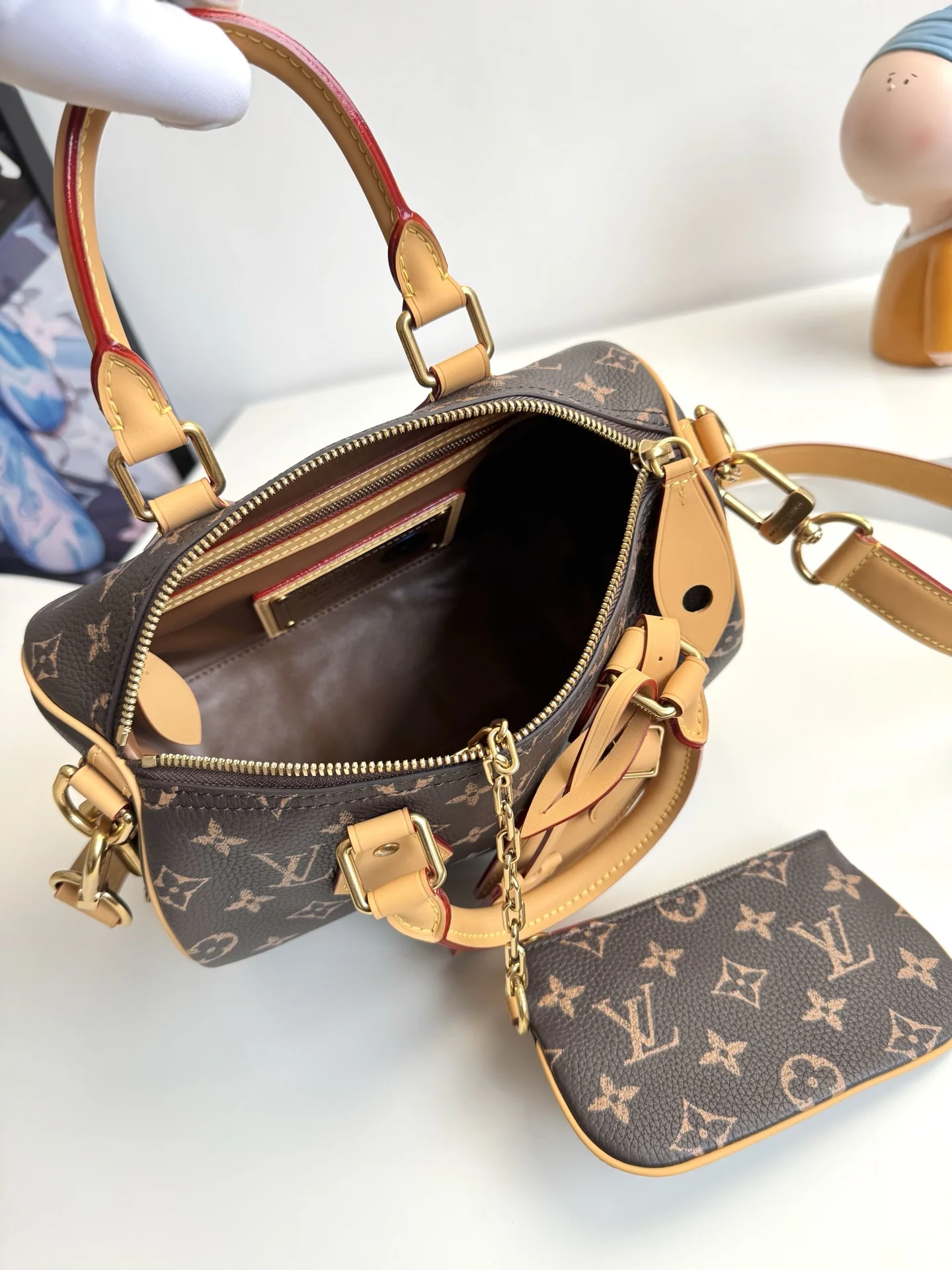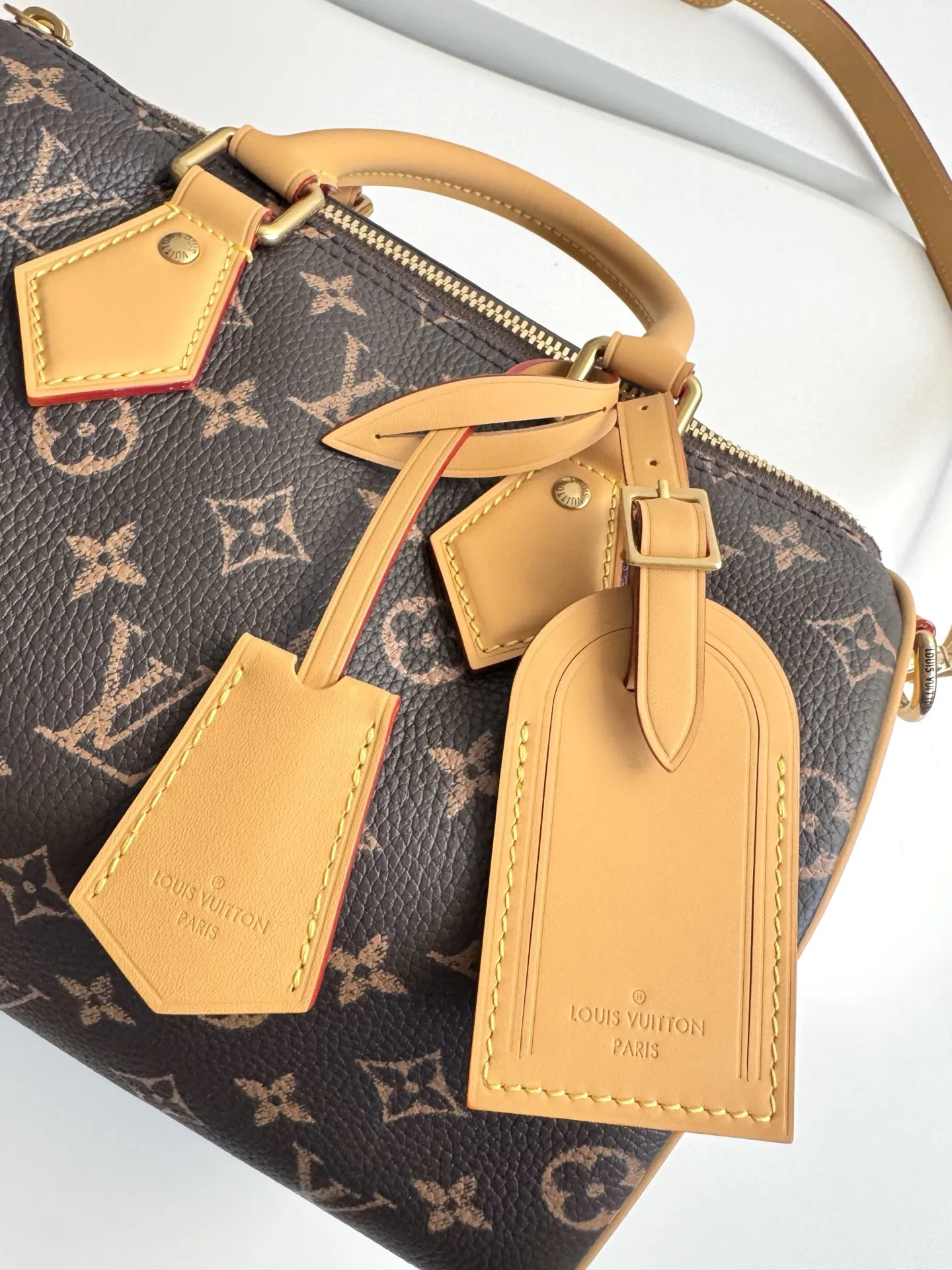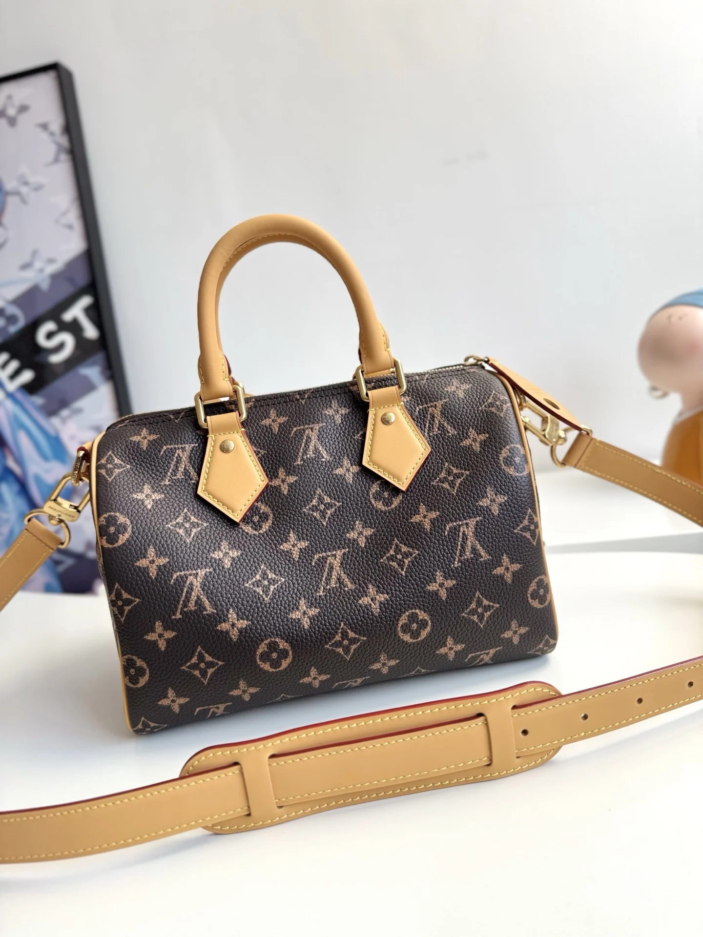 Exclusive original overseas order M24443, actual shooting! This Speedy P9 Bandouliere 25 Monogram Leather is crafted from ultra-supple calfskin, with a Monogram print that creates the effect of Monogram canvas, exuding ultimate luxury. The bag is adorned with polished gold-tone hardware, a lambskin lining, and an original plaque inside, showcasing Creative Director Pharrell Williams meticulous attention to detail. Dimensions: 25×15×15cm