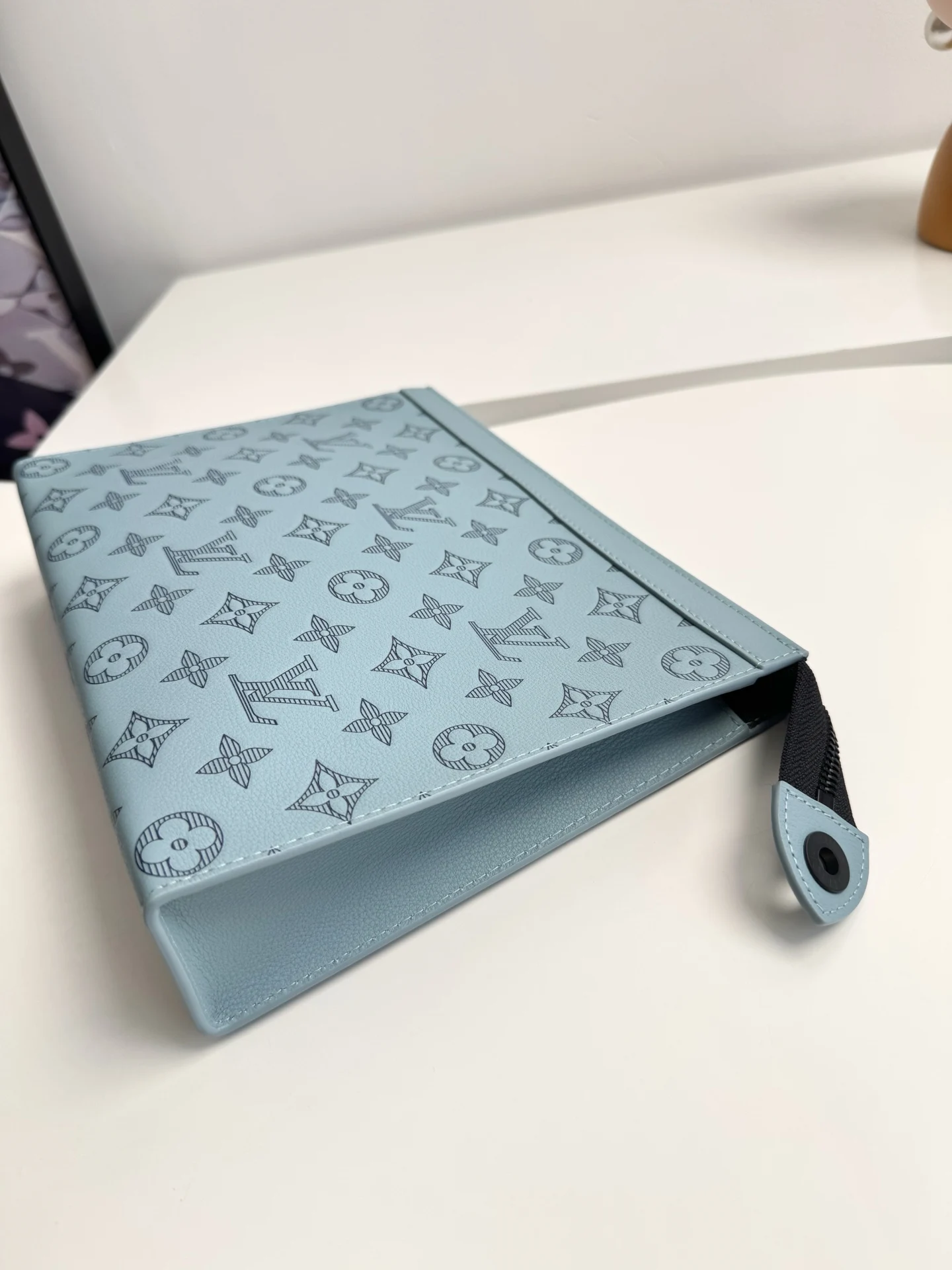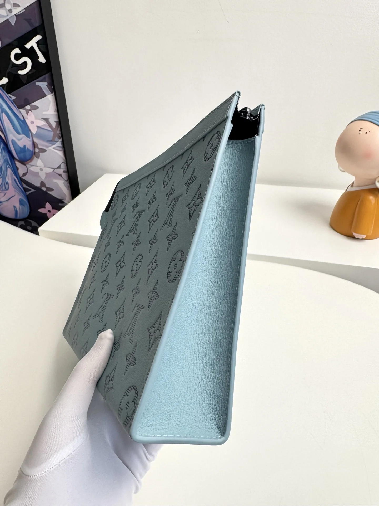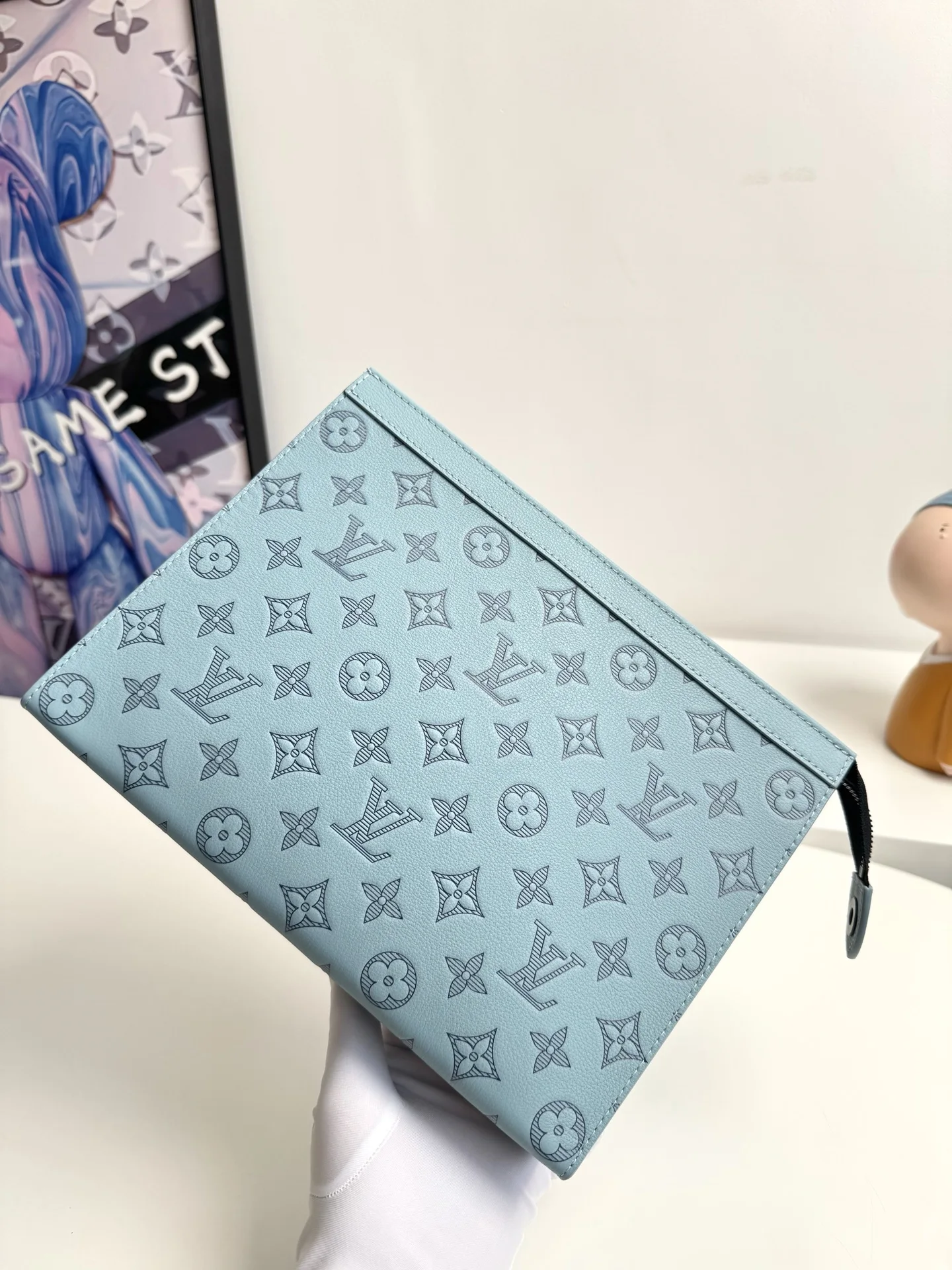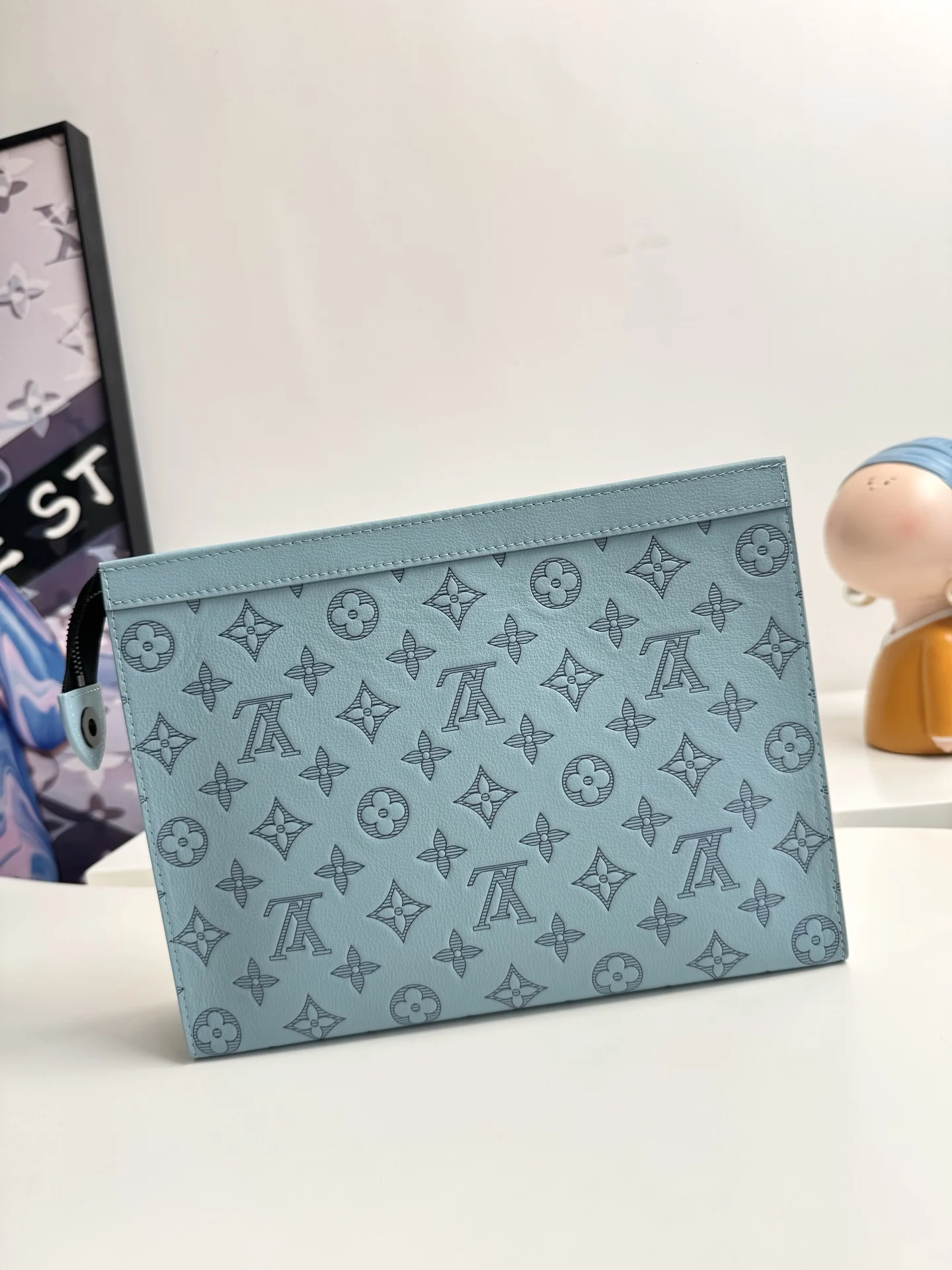 Overseas original M61692 ice blue exclusive real shot! This compact and stylish Pochette Voyage medium handbag is made of Taiga荔枝纹牛皮 leather and is versatile. It can be used as a travel bag in a bag or carried in hand to show a fashionable style. The spacious interior and gusset design make it easy to access personal essentials. Size: 26×20×5cm
