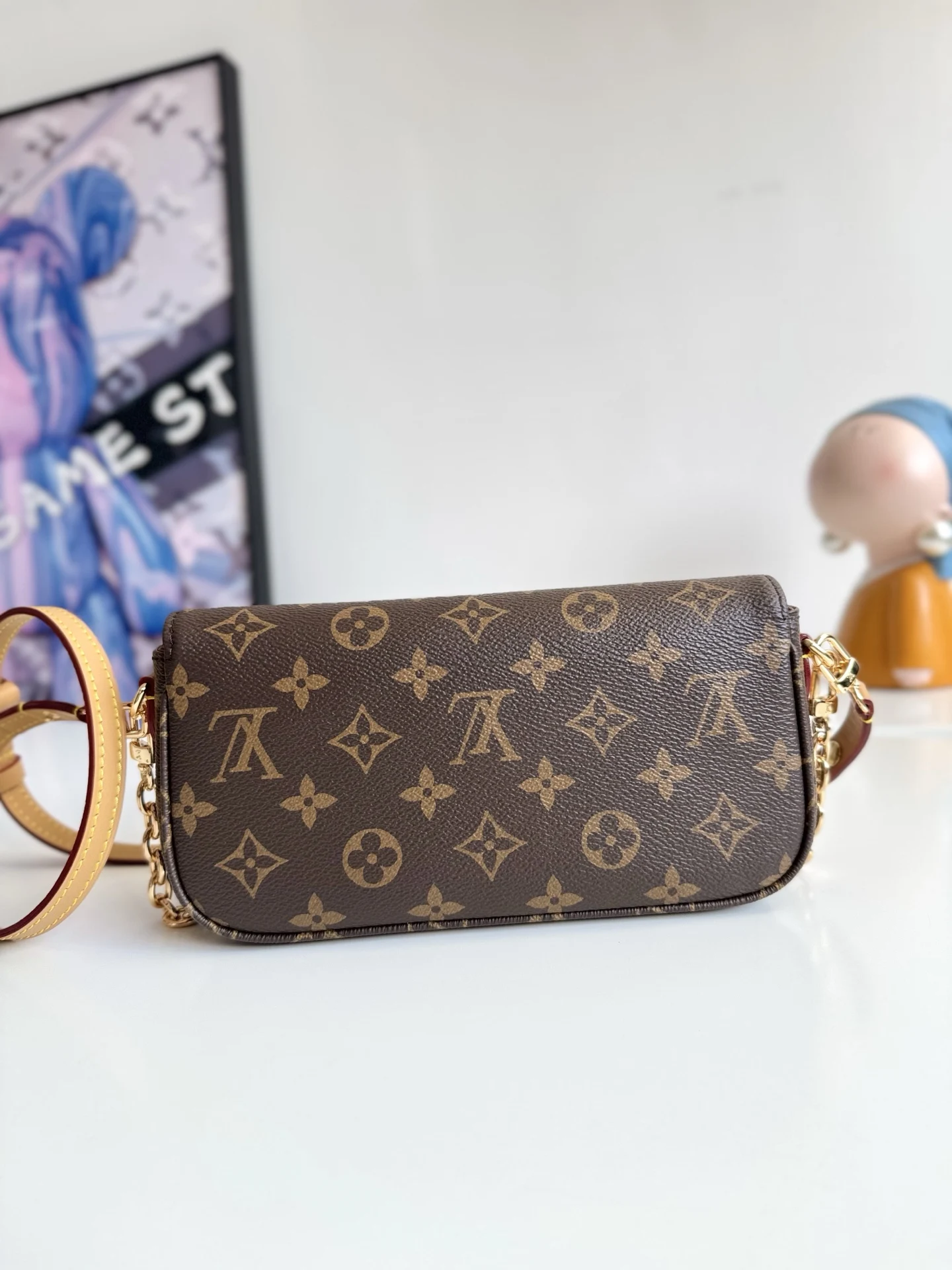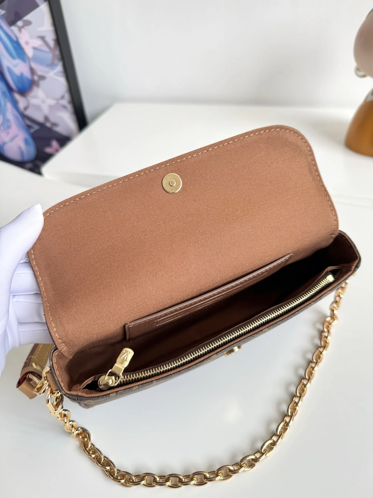 Overseas original single product M81911 exclusive real shot! The Wallet On Chain Ivy handbag is crafted from Monogram canvas and inspired by the Sac Recoleta handbag from the 2000s. Card slots and a zipped inner pocket accommodate daily essentials, while the chain and adjustable leather shoulder strap are both detachable for long or short shoulder carry and cross-body options. Dimensions: 23.5 × 12 × 4 cm