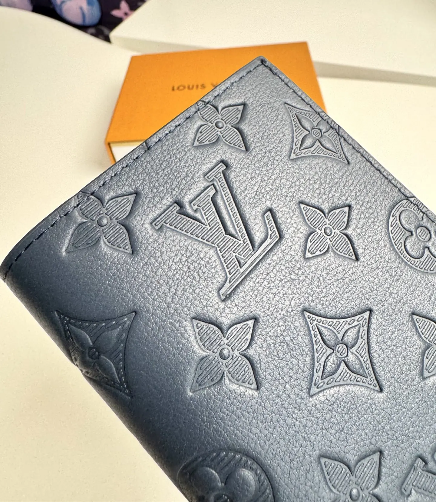 Original overseas order M14798 deep blue exclusive real shot! This passport cover is made of soft Monogram Shadow calf leather, with Monogram embossing to upgrade the simple design. Card slots and patch pockets can store receipts, tickets or other items, injecting a trendy style into the long journey. Size: 14×10×2.5cm