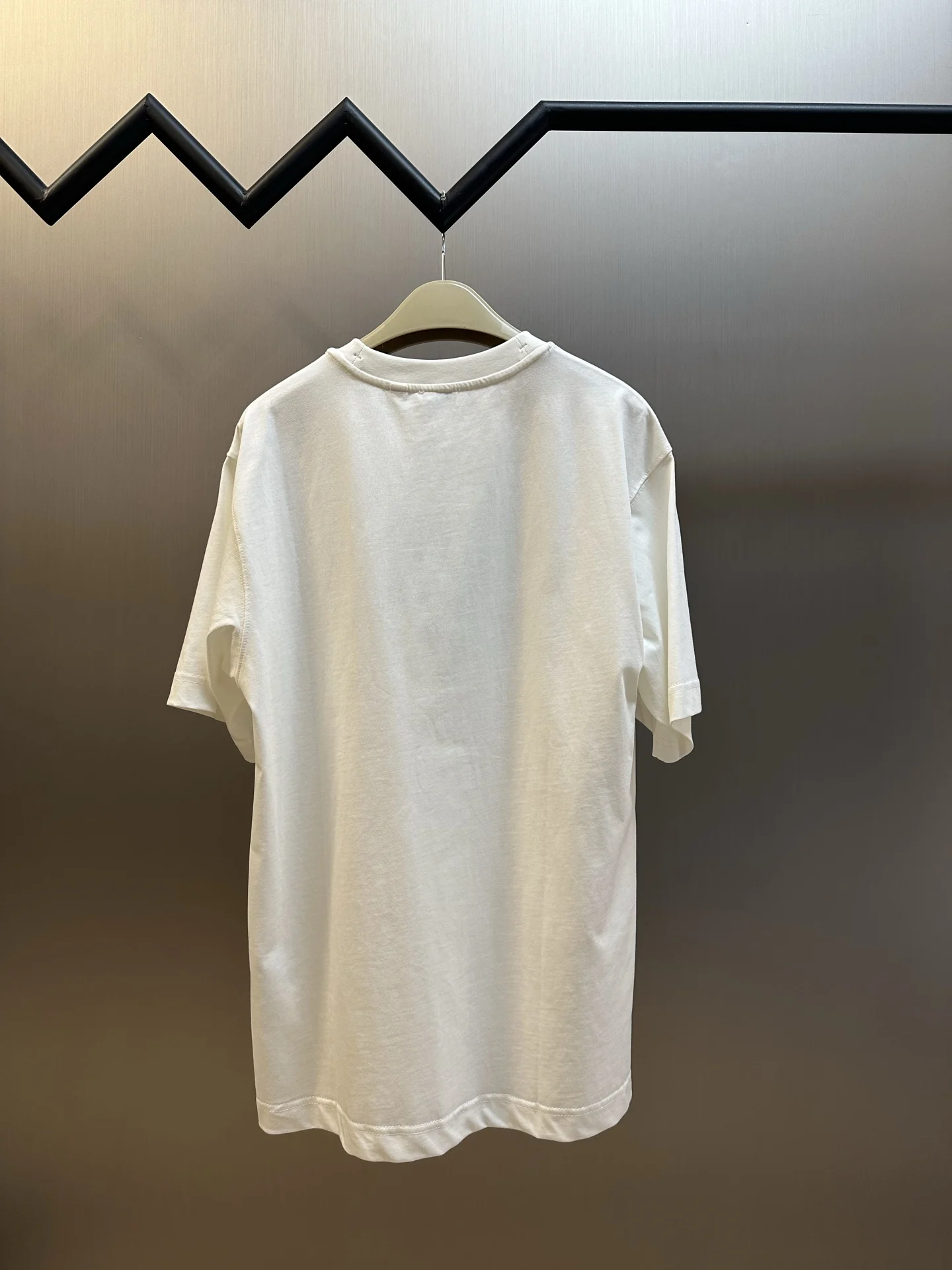 Made from plain weave pure cotton fabric using 15s special spun compact cotton, weighing 230g/ ; the collar is made with 32s high-weight 1x1 rib, weighing 349g/ . The special spun compact cotton utilizes compact spinning technology during the spinning process, effectively reducing yarn fluff, resulting in a denser fabric structure, a smoother surface, and better pilling resistance. The fabric weight is medium-heavy, ensuring the T-shirt has good stiffness and drape, preventing it from becoming soft and deformed. Its high-count and high-weight characteristics ensure excellent elastic recovery, a substantial feel, and deformation resistance for the collar, which is a hallmark of high-quality T-shirts.