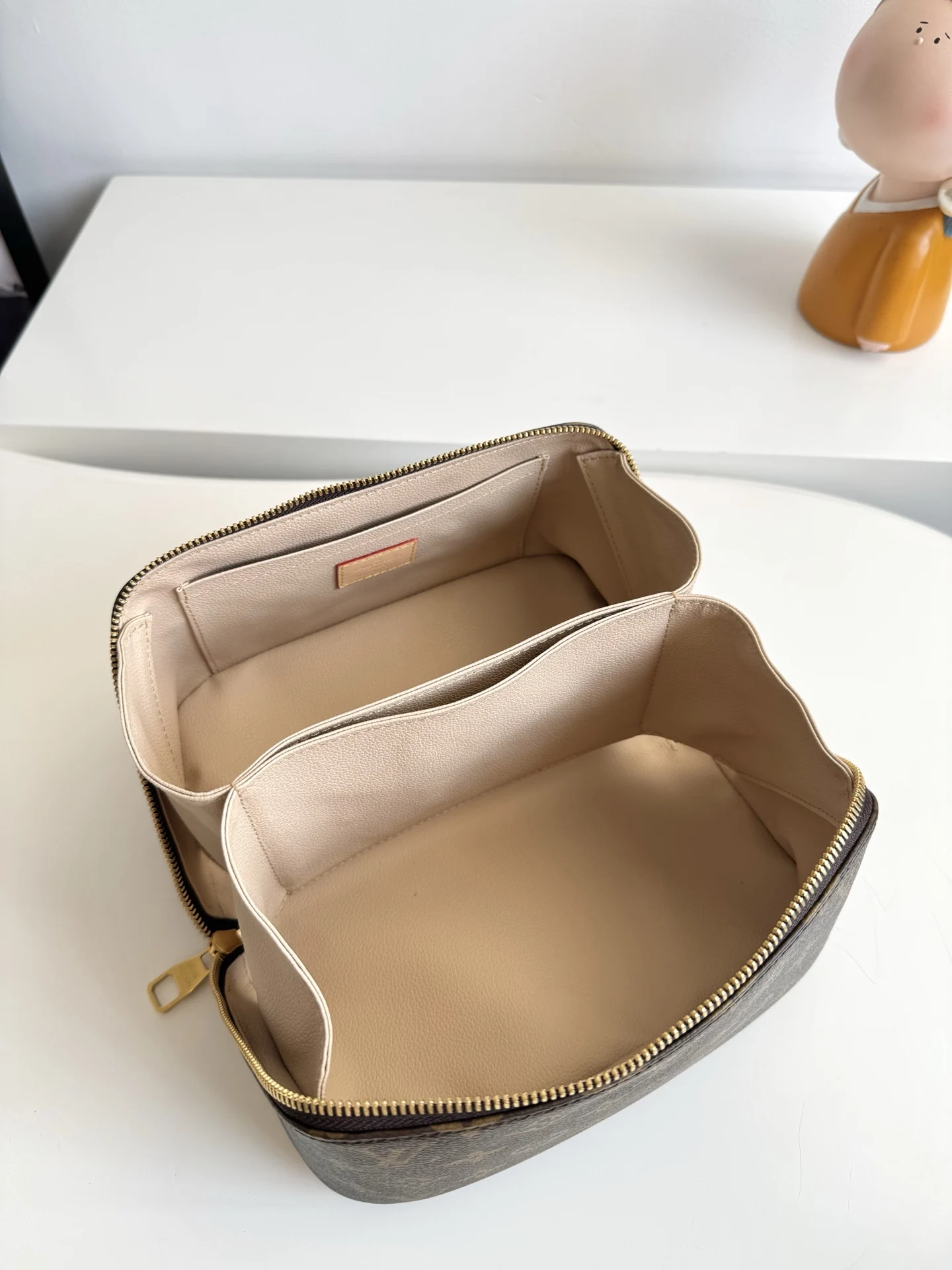Exclusive real shot of overseas original M11750! Toiletry Bag 2 Compartments made of Monogram coated canvas and washable fabric lining, featuring a double zipper wide opening design to access the accordion inner compartment, securely storing toiletries. The top handle allows for convenient carrying. Dimensions: 24×13×13cm