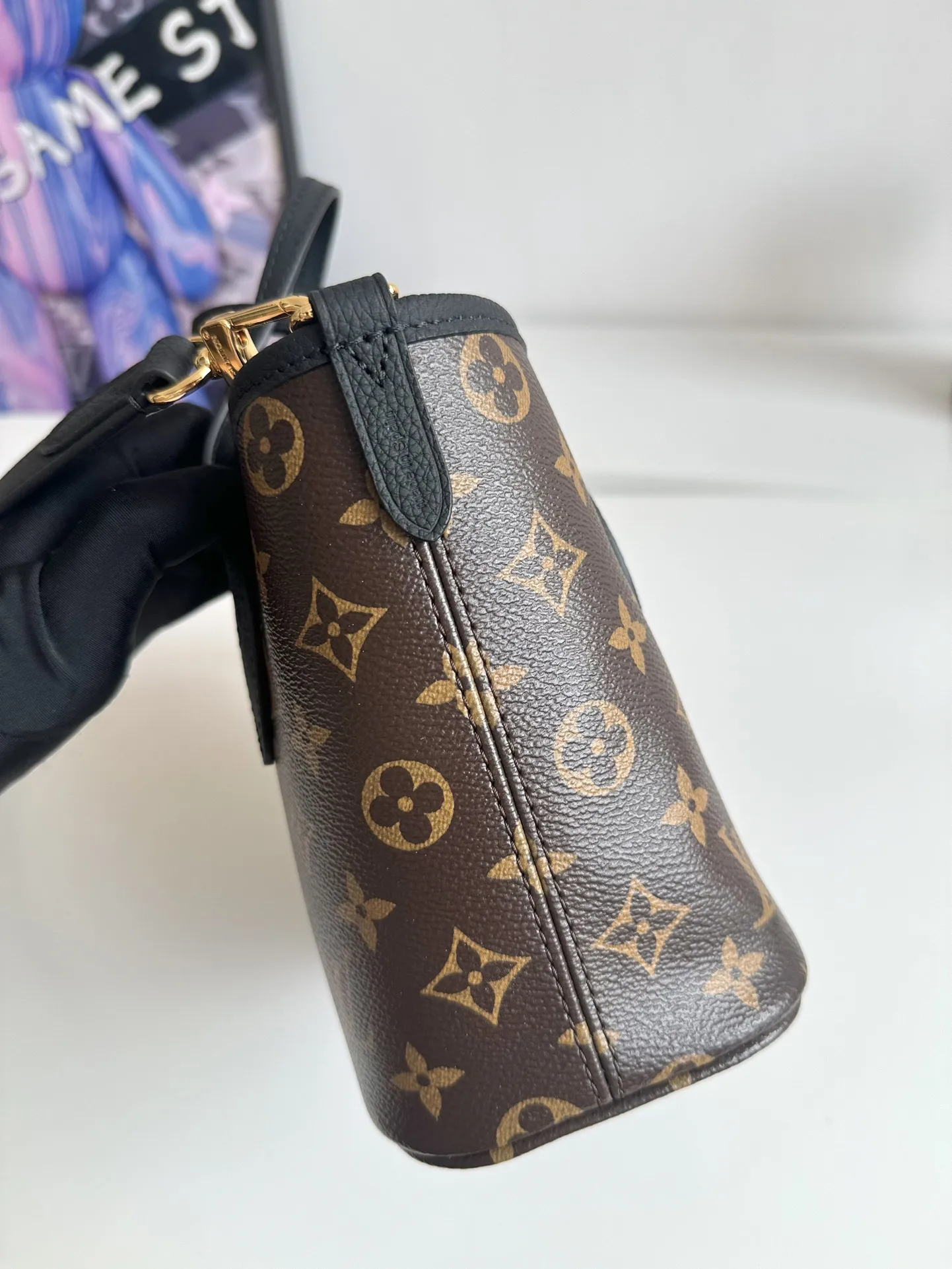 Exclusive real shot of overseas original M12099! The Neverfull Bandouliere Inside Out BB handbag this season interprets the classic design in a double-sided version, featuring..