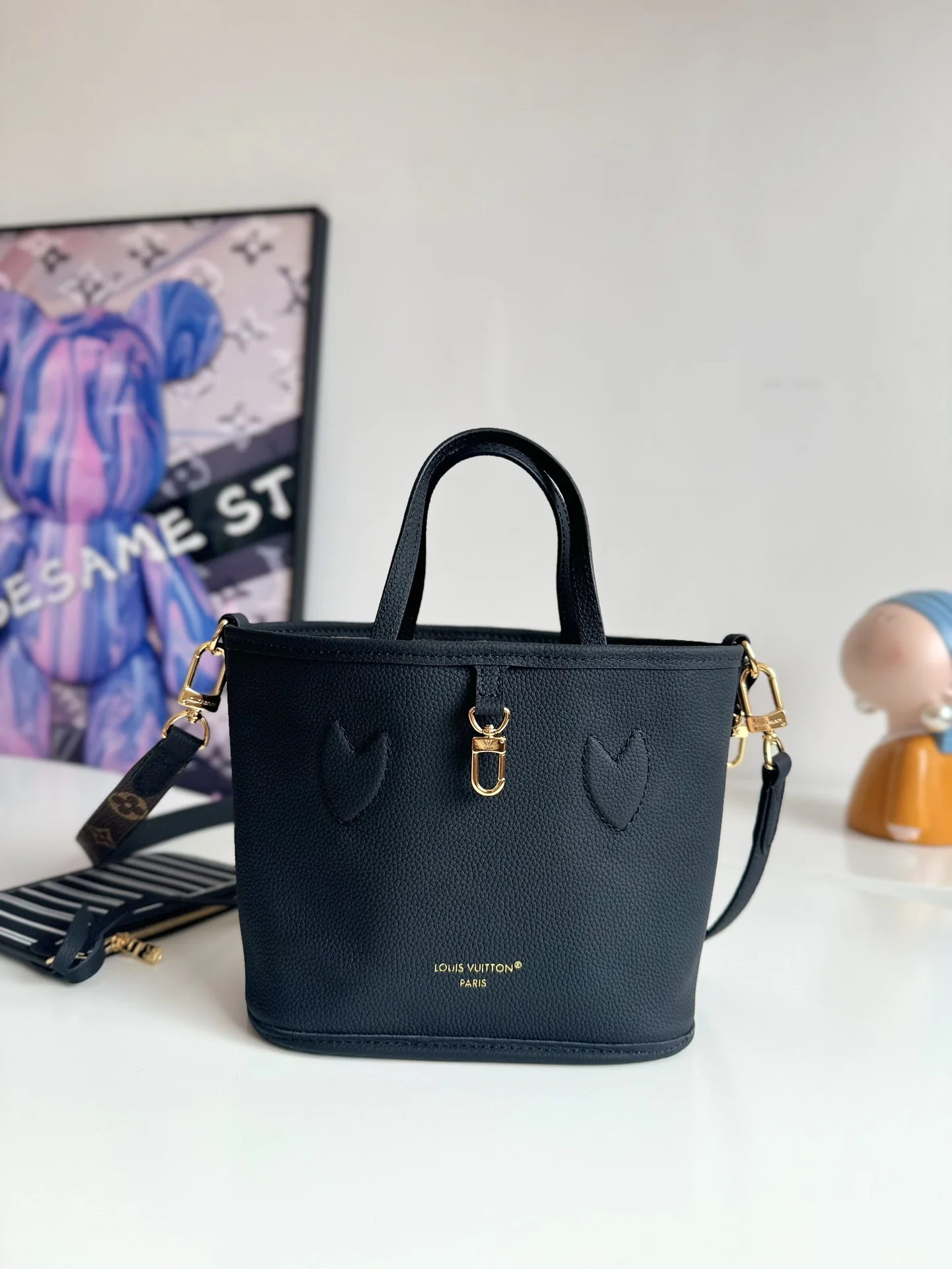 Exclusive real shot of overseas original M12099! The Neverfull Bandouliere Inside Out BB handbag this season interprets the classic design in a double-sided version, featuring iconic Monogram canvas and grained leather on each side. The detachable zip pouch can be used separately or hung on the outside. The detachable shoulder strap allows for crossbody wear, and the eye-catching metal details add a touch of sophistication. Dimensions: 26.5×16.5×11cm