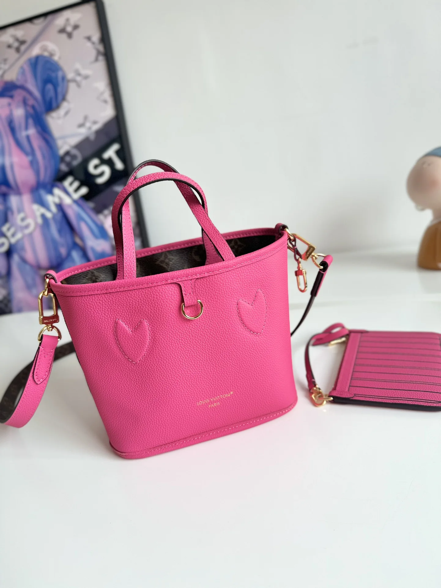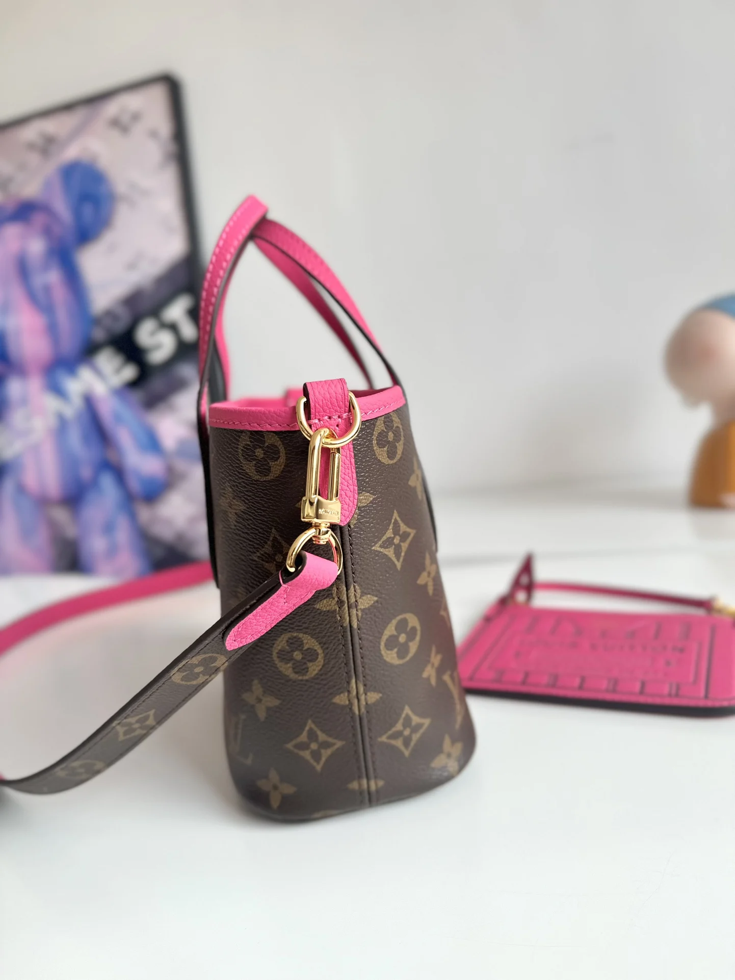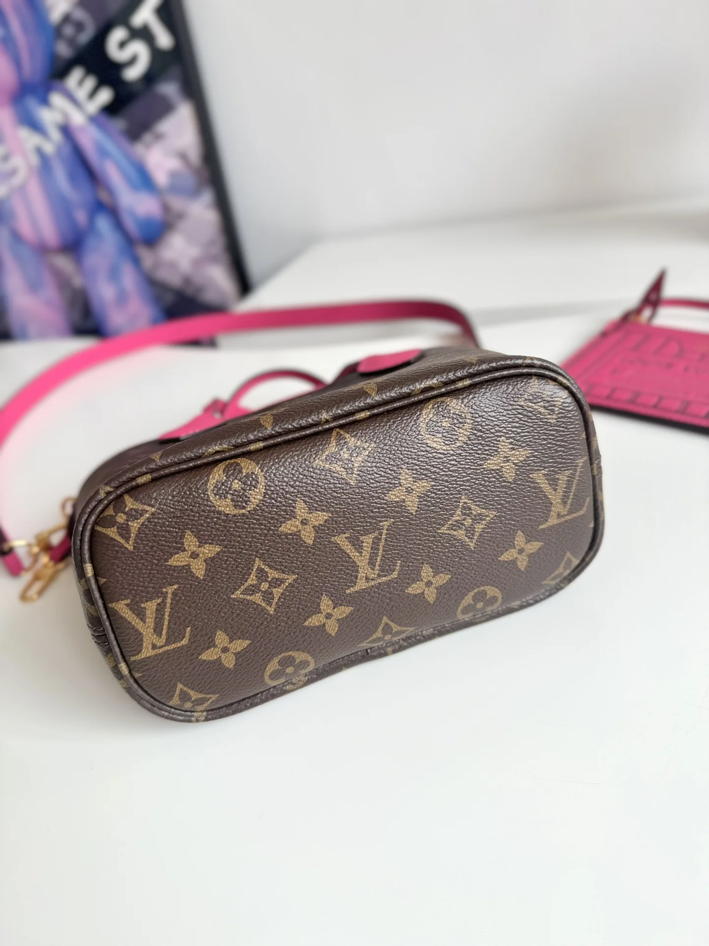 Exclusive real shot of overseas original M12106! The Neverfull Bandouliere Inside Out BB handbag presents a double-sided version of the classic design this season, featuring i..