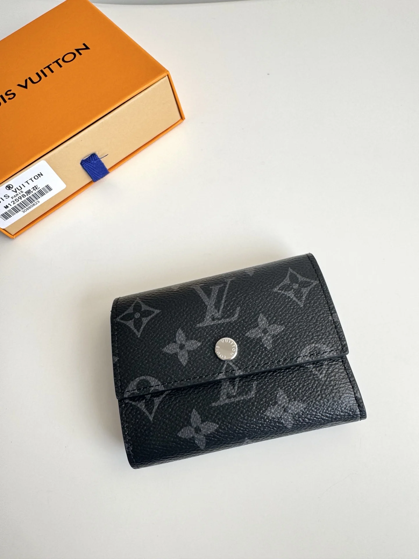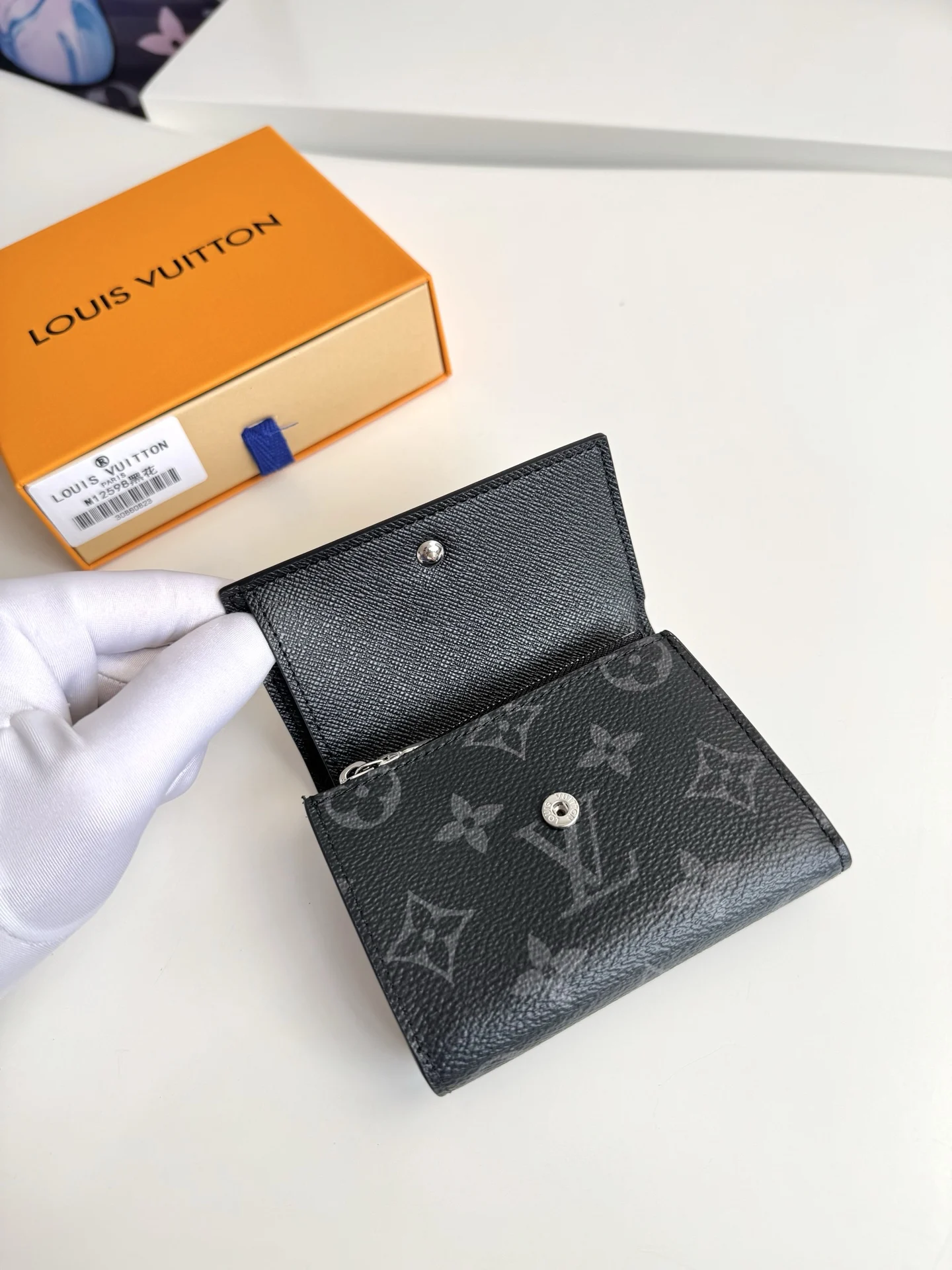 Exclusive original overseas M12598 black floral live shot! This elegant Victor wallet is made of Monogram Eclipse canvas and can hold coins, business cards, banknotes, and tickets, making it exceptionally practical. Size: 11.5×9×2.5cm