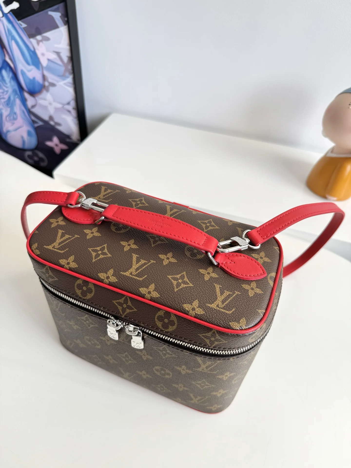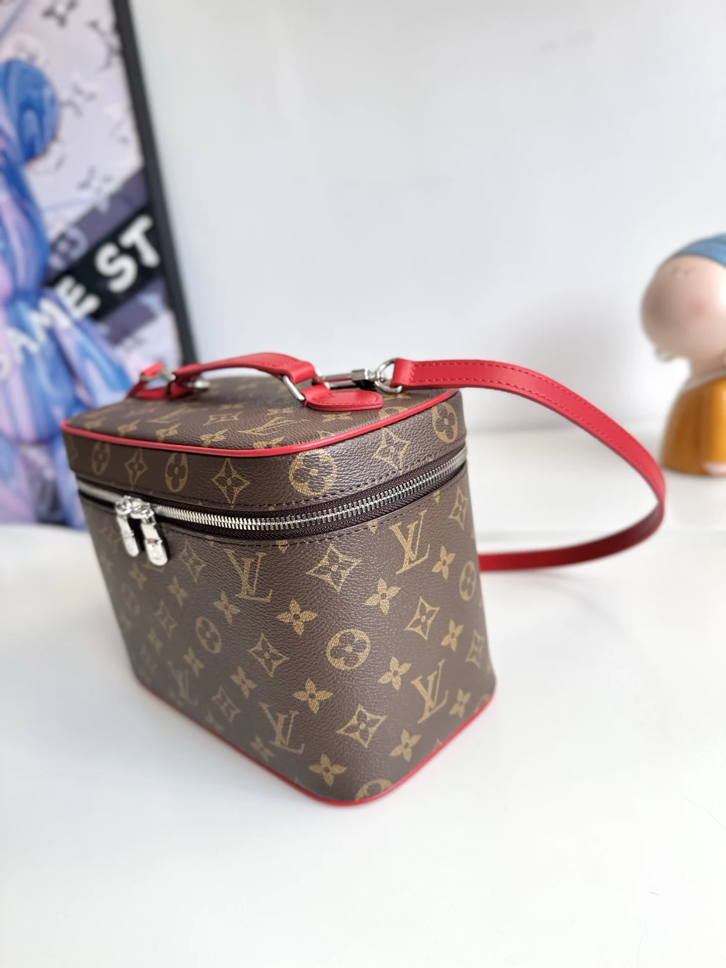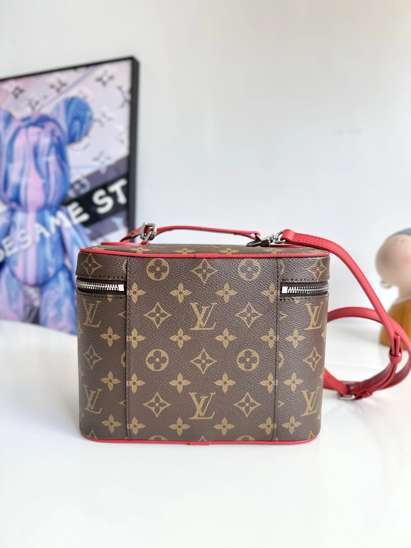 Exclusive real shot of overseas original M12671! This Nice BB cosmetic bag is made from classic Monogram canvas, featuring vibrant colors for the edging, top handle, and washa..