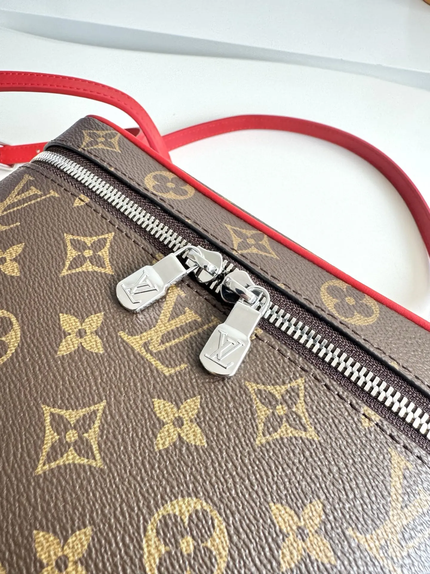 Exclusive real shot of overseas original M12671! This Nice BB cosmetic bag is made from classic Monogram canvas, featuring vibrant colors for the edging, top handle, and washable lining, inspired by the ribbon decoration of the brand s first hard case. The interior and top flap are equipped with a patch pocket and a hidden zip pocket, respectively. Dimensions: 24×18×14.5cm