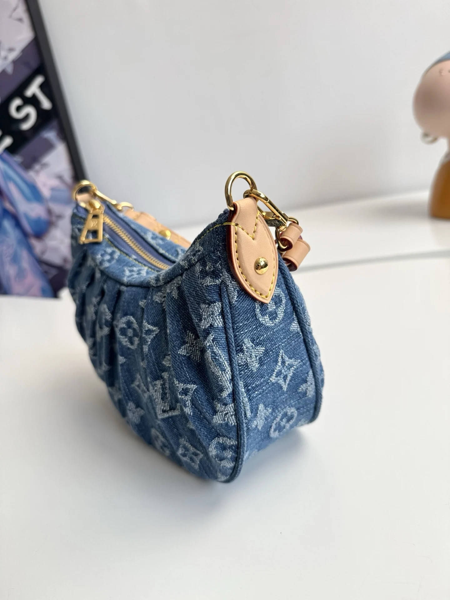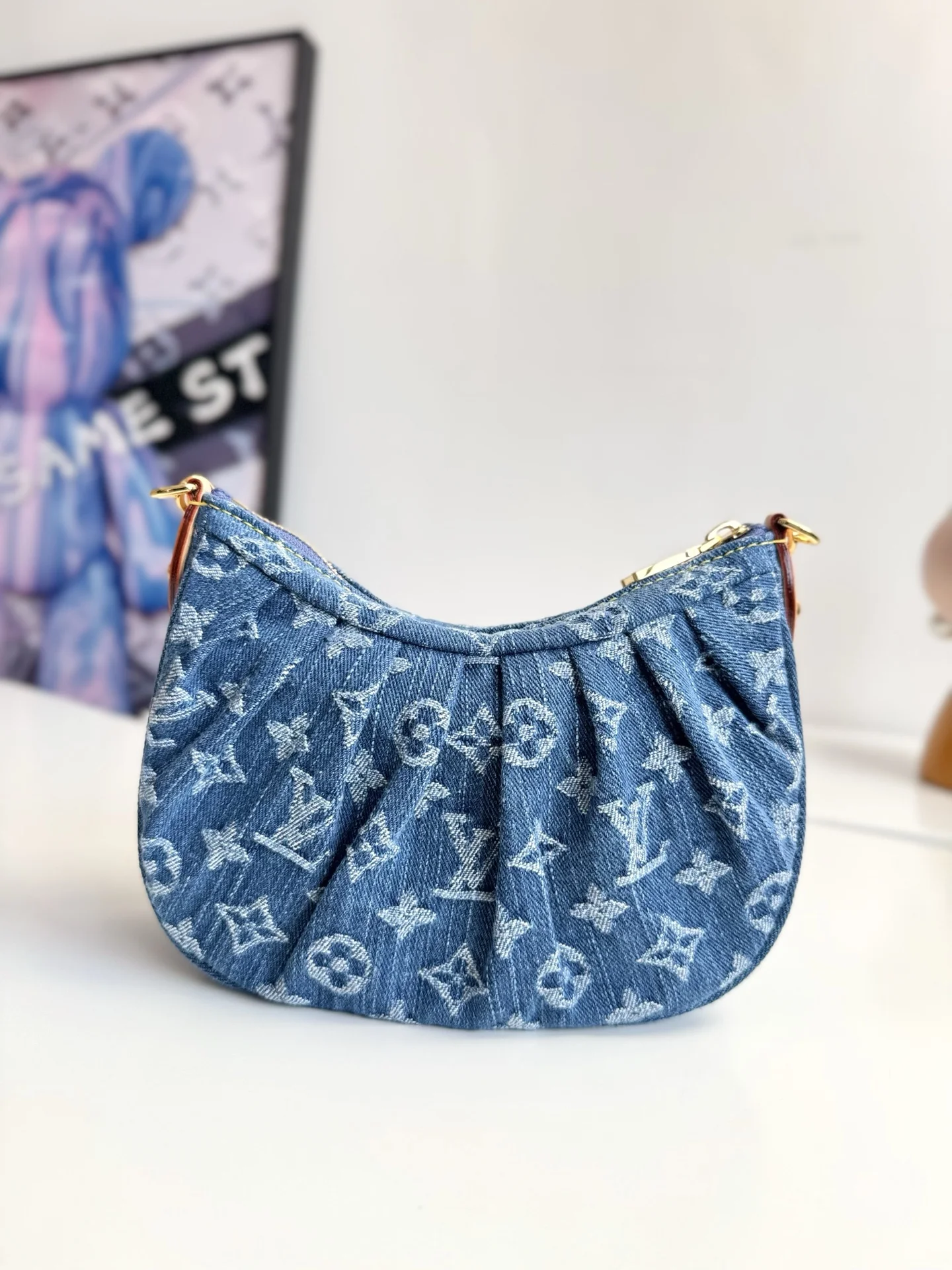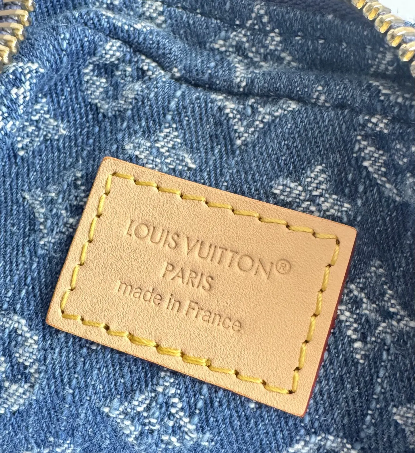 Exclusive real shot of the overseas original M13571! The Pochette Valley handbag is made from Monogram cotton denim, featuring contrasting leather trims and striking metal accents, giving the classic design a modern flair. The handle can be removed to transform it into a clutch. Dimensions: 21×15×7cm